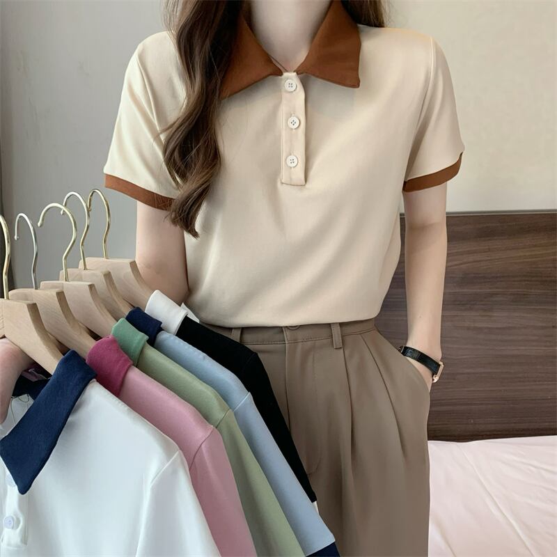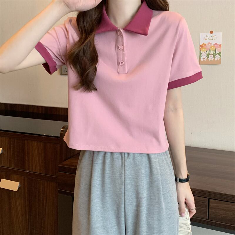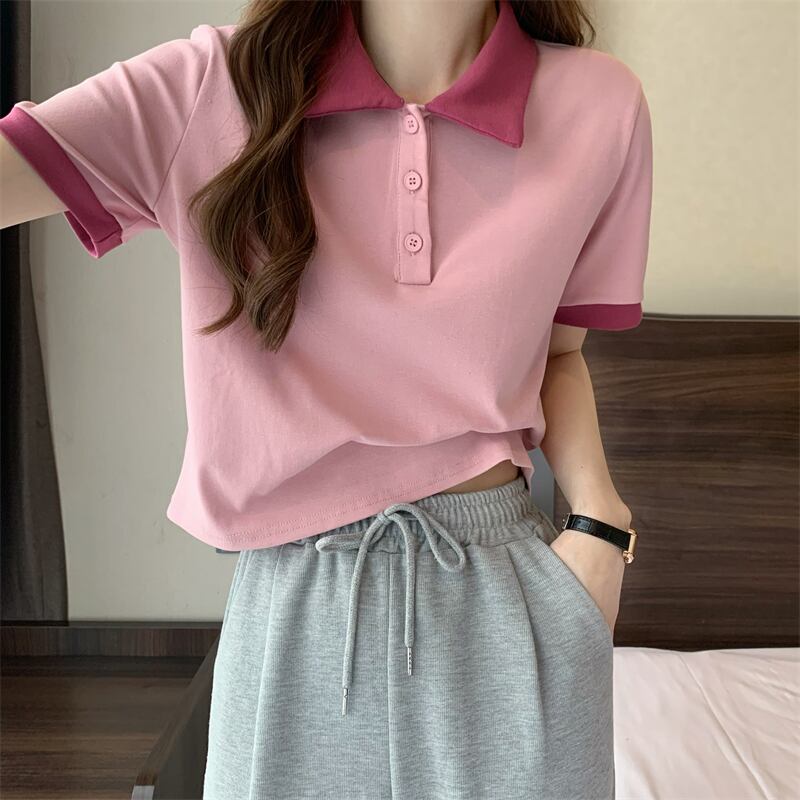 ポロカラーショートトップハイウエストパンツサマーバージョンルーズ2022新作半袖Tシャツレディースオールマッチトレンド ハイウェスト 夏物 7460068526989415 | framboise21