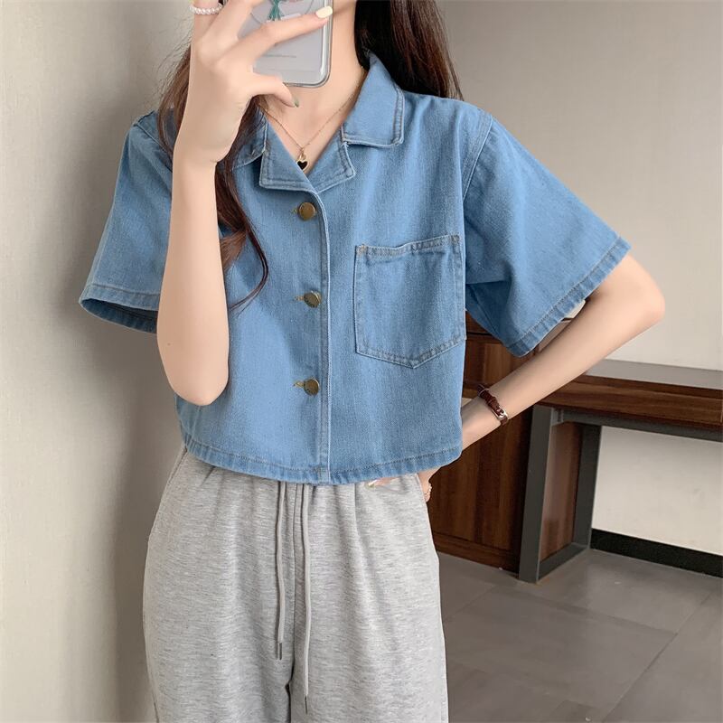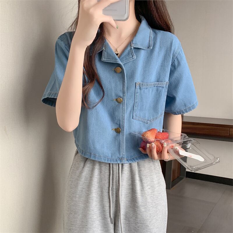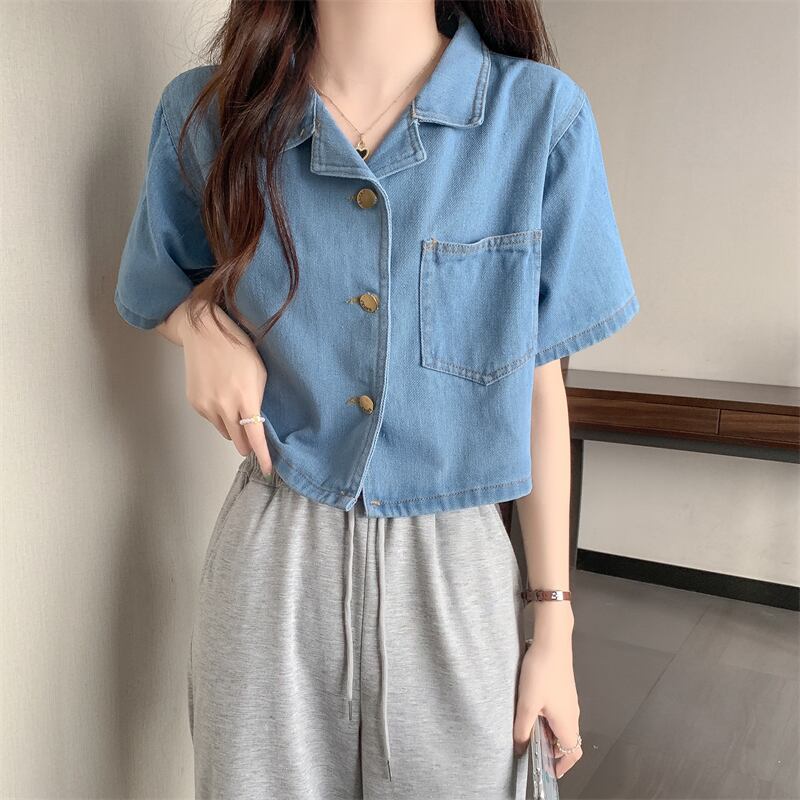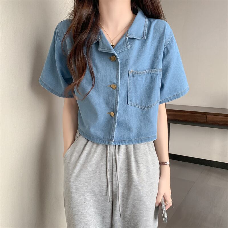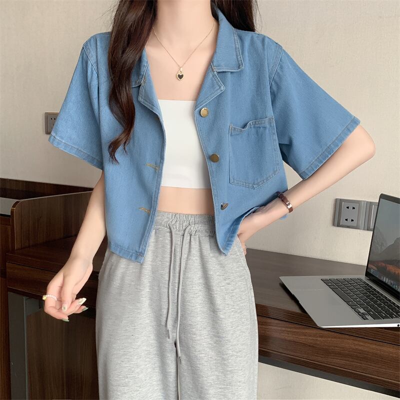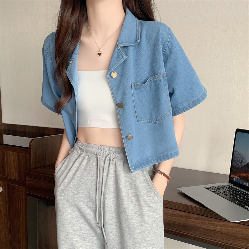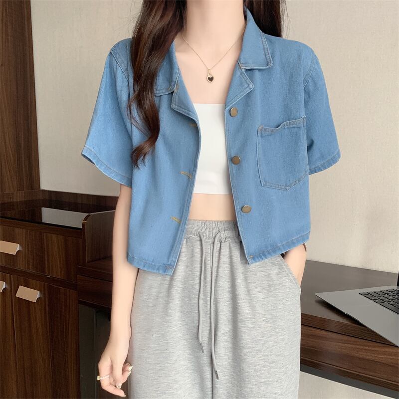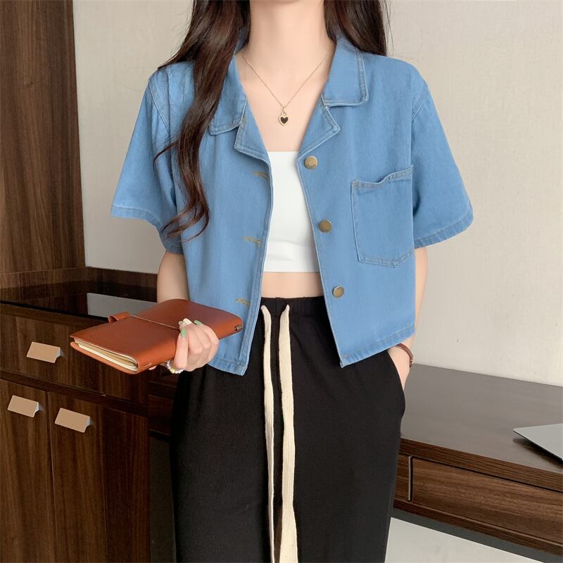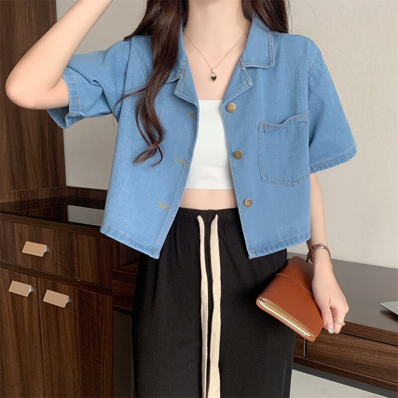 ショートデニムジャケットレディースサマー薄切片ルーズレトロフライドストリートハーフスリーブスモールスーツハイウエストスモール半袖トップス ハイウェスト 夏物 7460076513497944 | framboise21