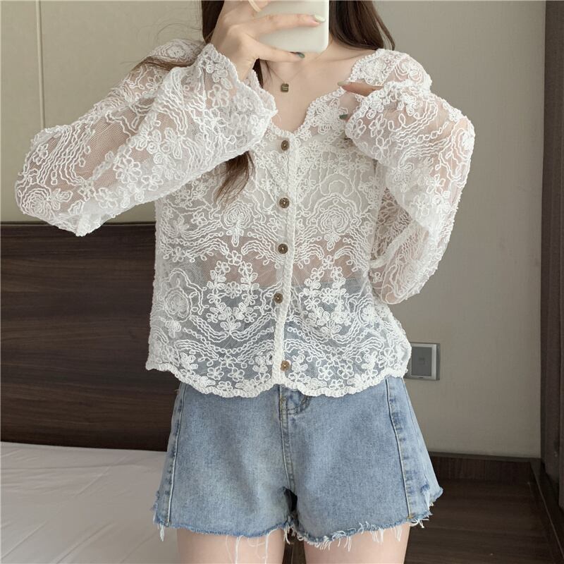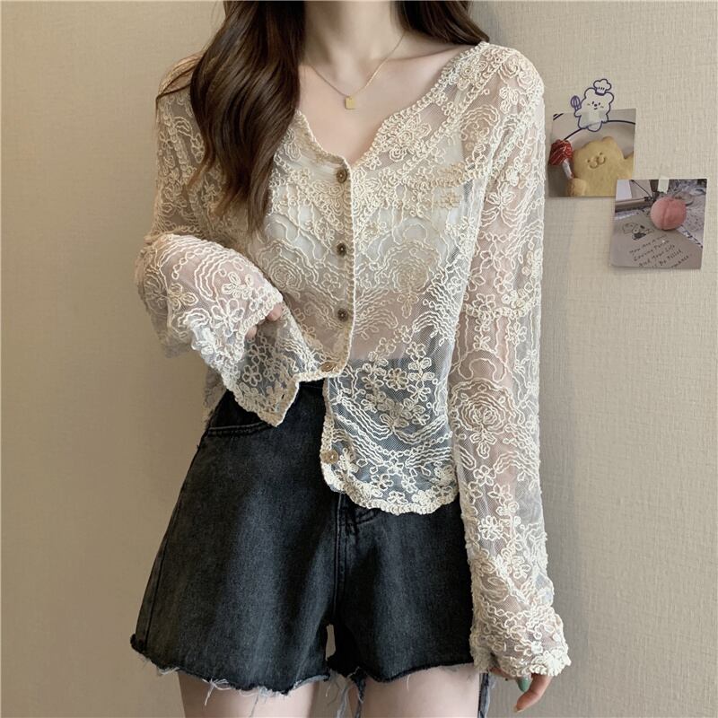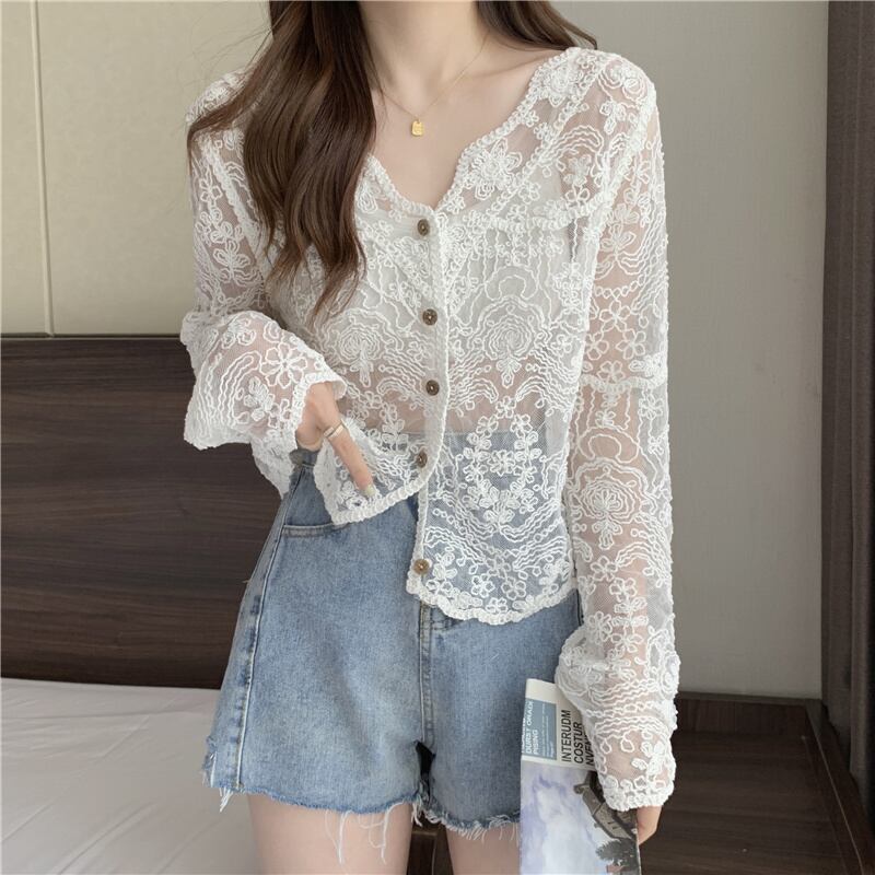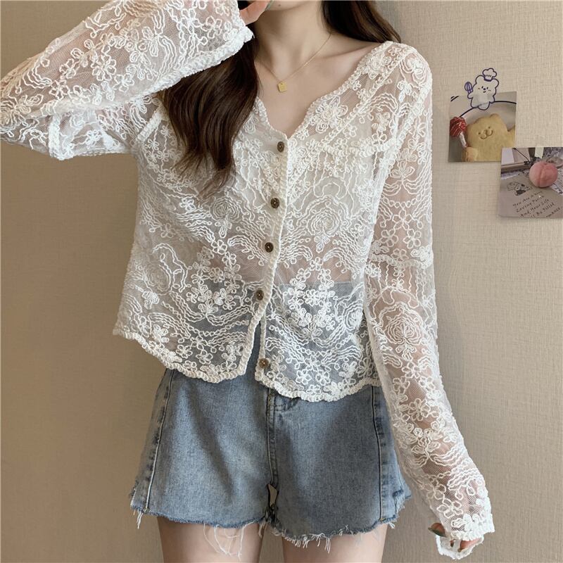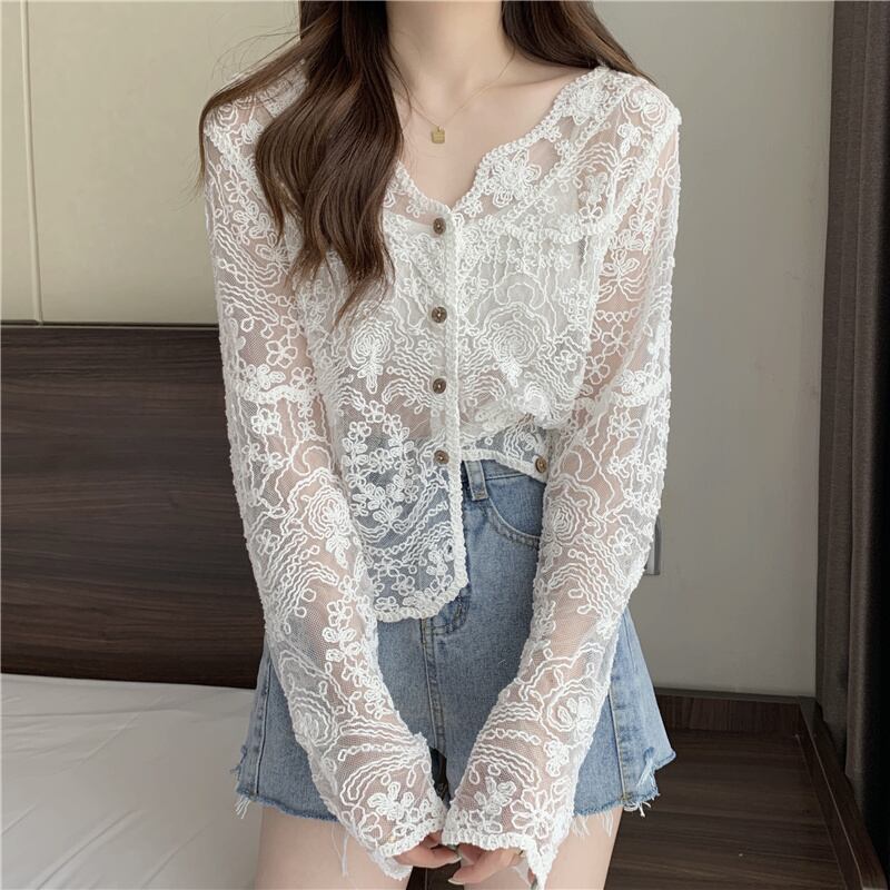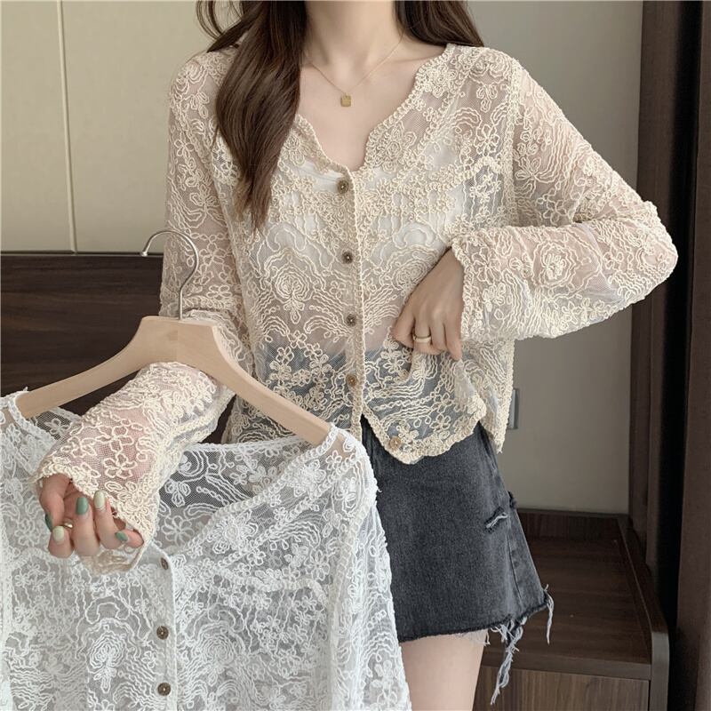 レースシフォンサンプロテクション服レディースサマーシンアウターカーディガンホロースーパーフェアリーメッシュブラウスショールジャケットトップ 夏物 7460023419971085 | framboise21