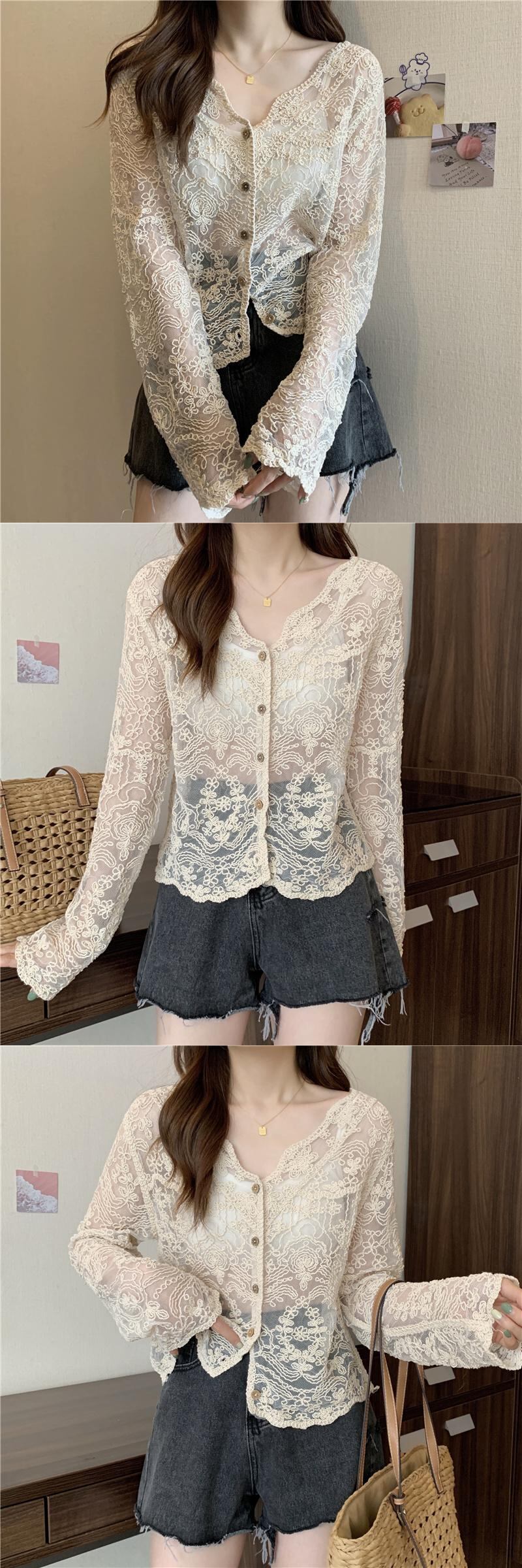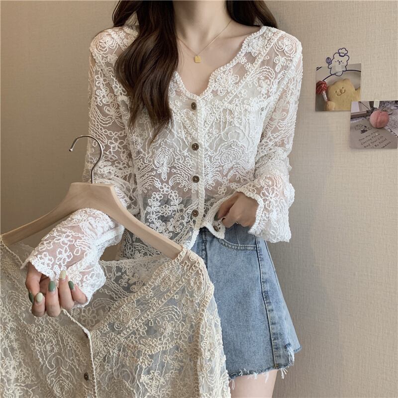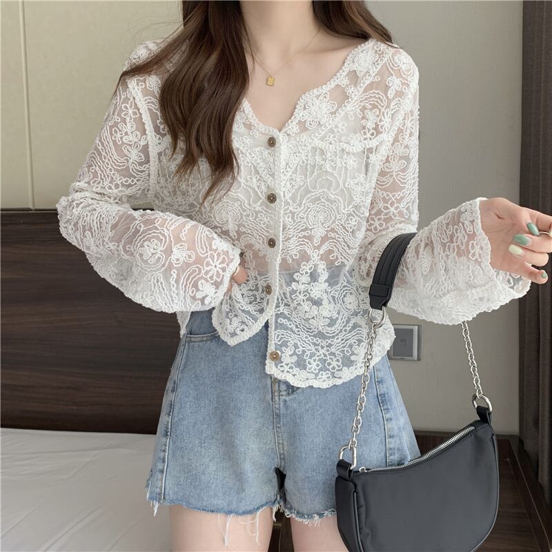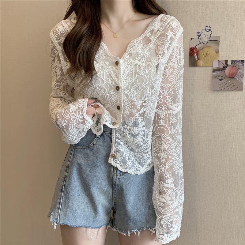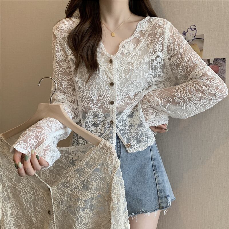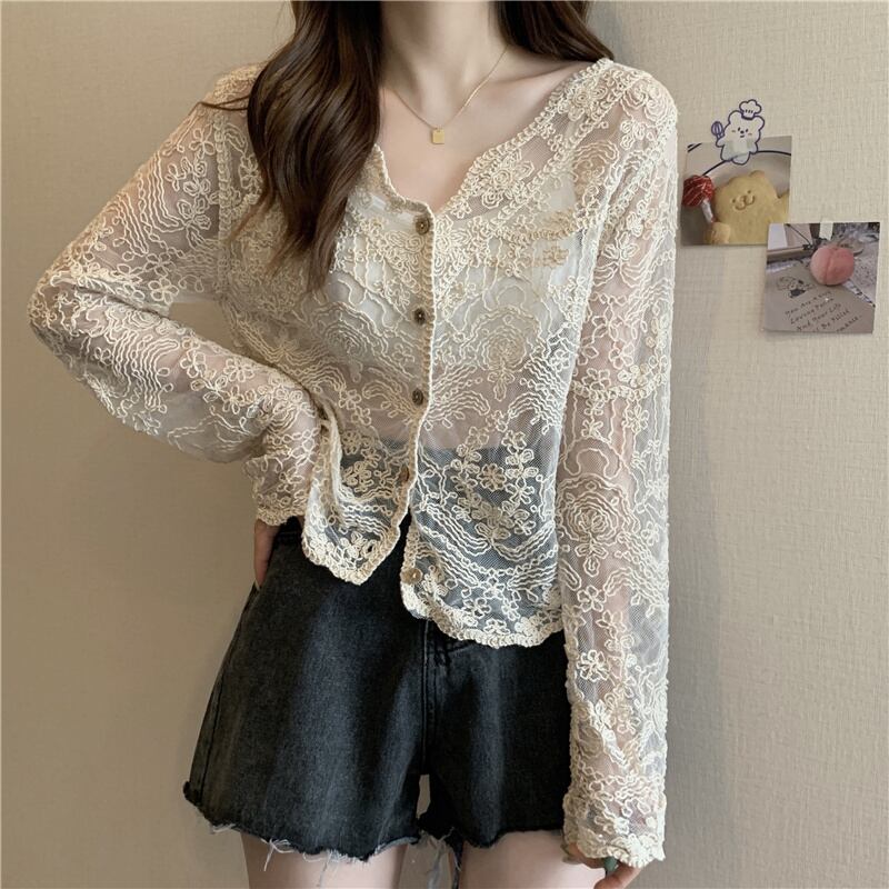 レースシフォンサンプロテクション服レディースサマーシンアウターカーディガンホロースーパーフェアリーメッシュブラウスショールジャケットトップ 夏物 7460023419971085 | framboise21