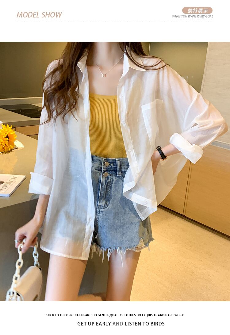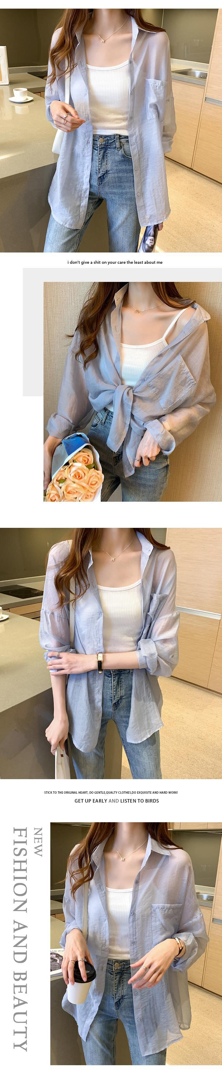 アイスシルクシフォンシャツ、女性の日焼け止め服、デザインセンス、ニッチなサスペンダースカート、ブラウス、カーディガン、薄いサマーコート 夏物 7460037635514213 | framboise21