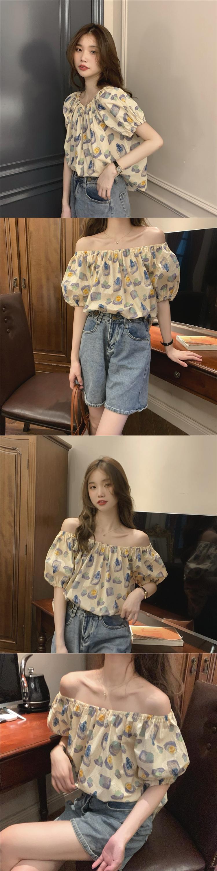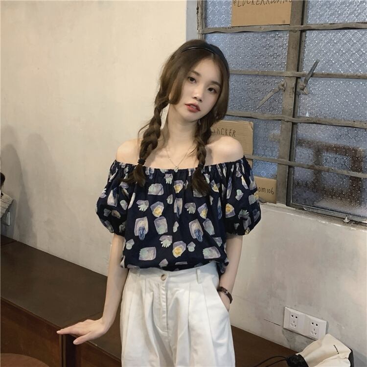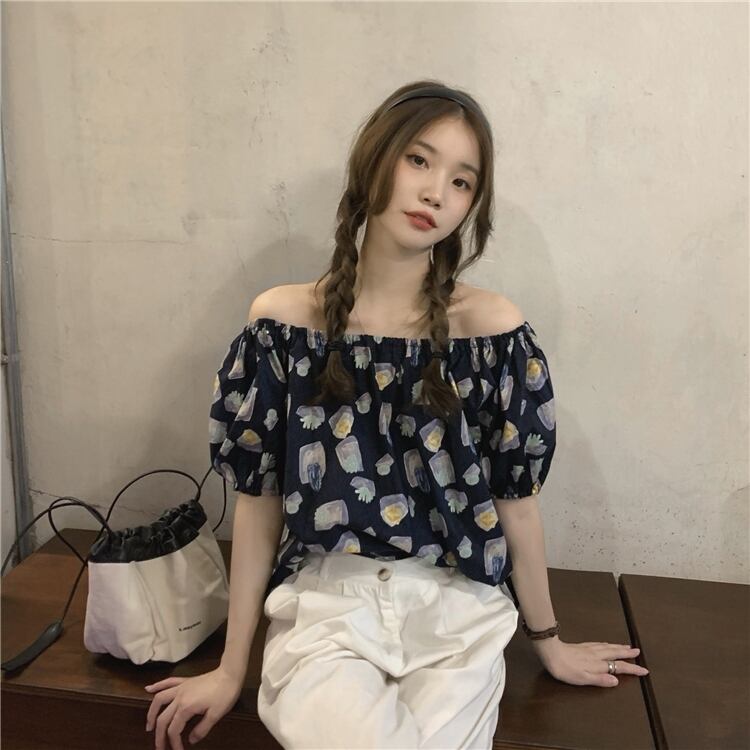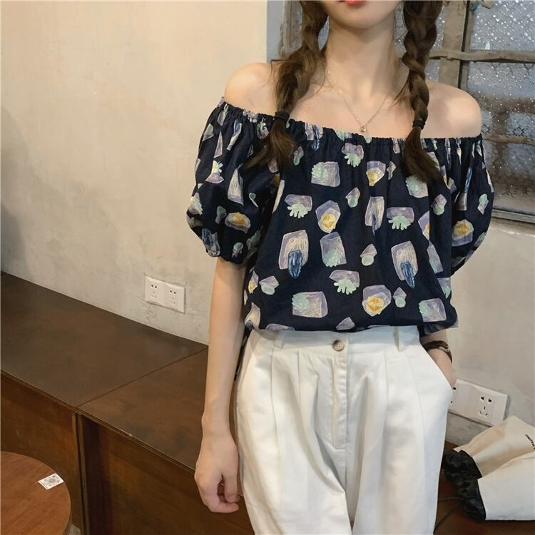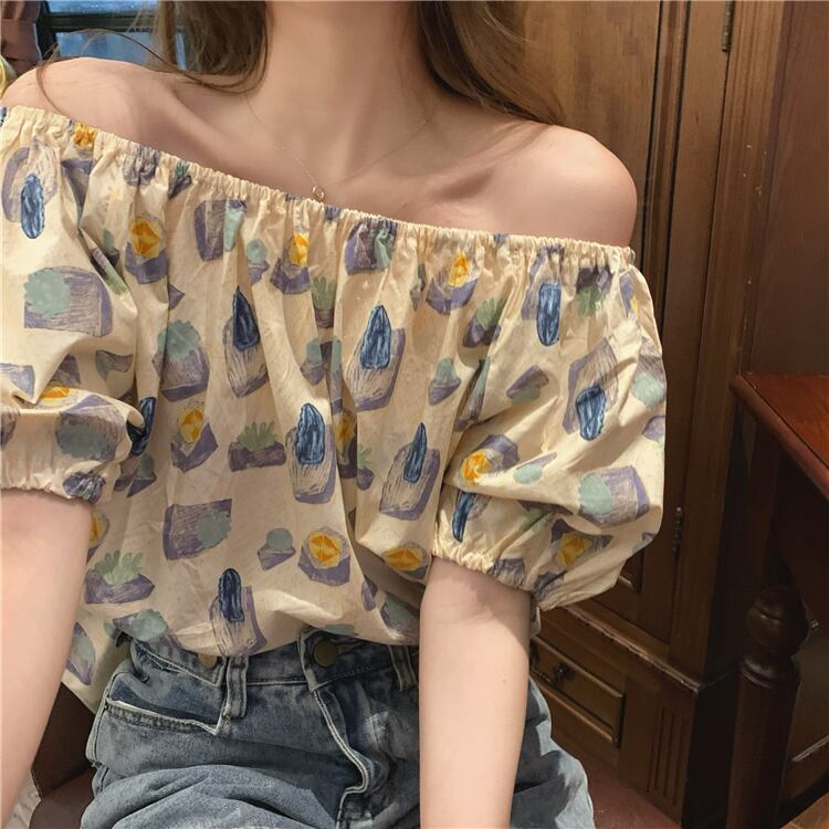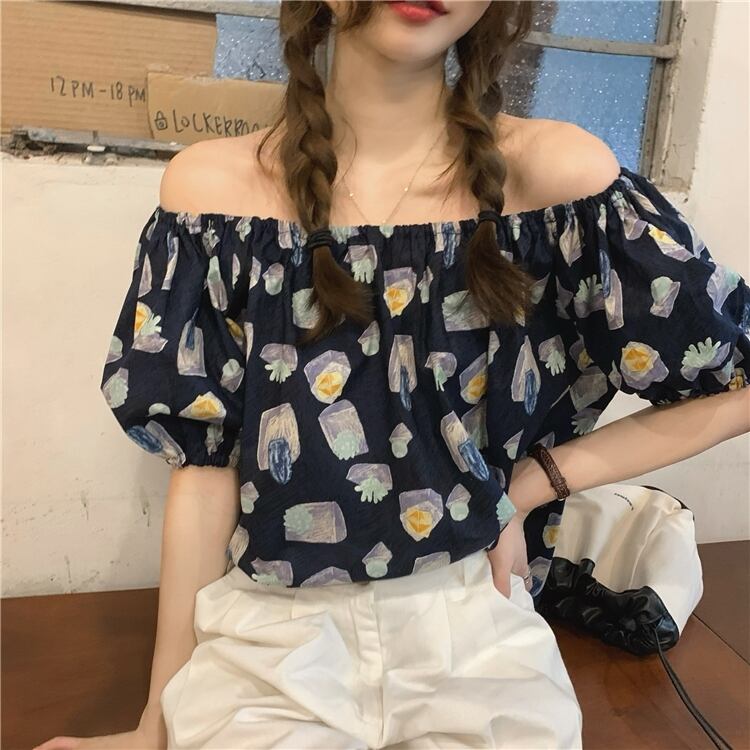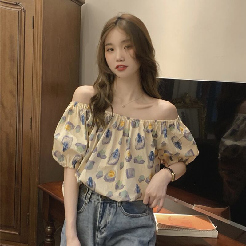 一言オフショルダーパフスリーブフローラルシャツレディースサマースウィートベイビーシャツルーズショートシックトップデザインセンス 大人ガーリー キュート カジュアル 夏物 花柄 7460034208164244 | framboise21