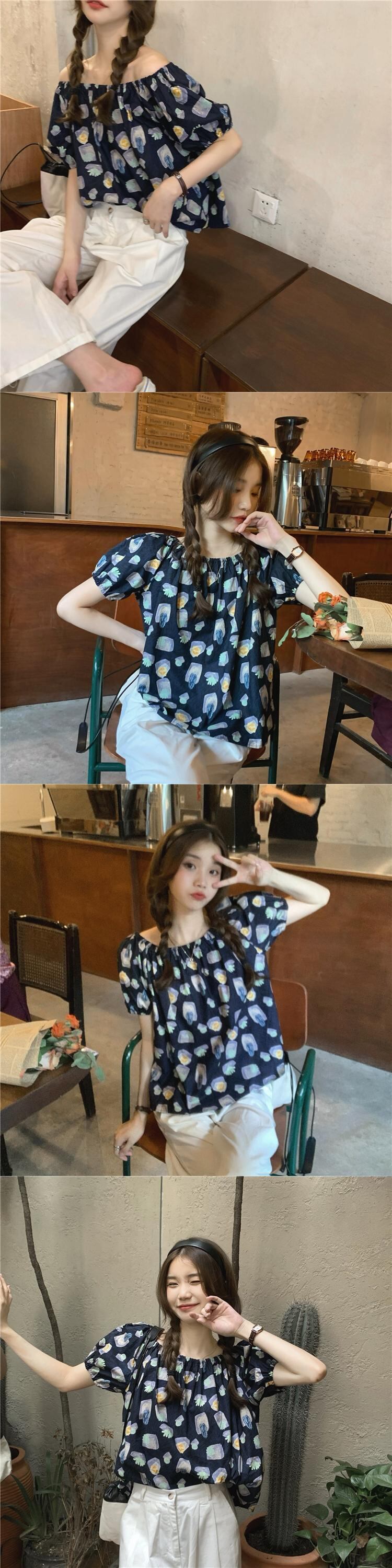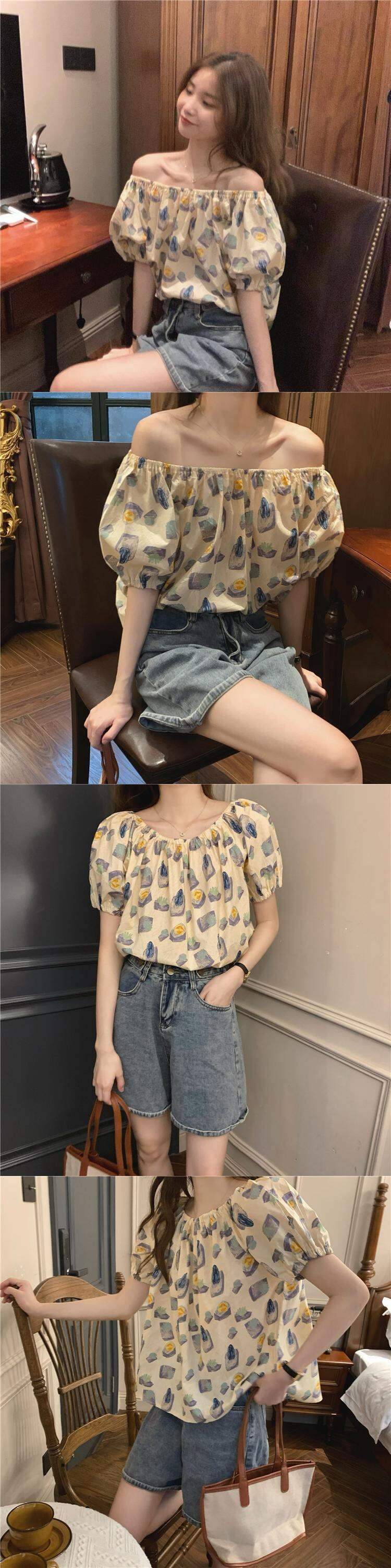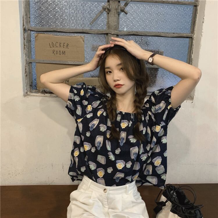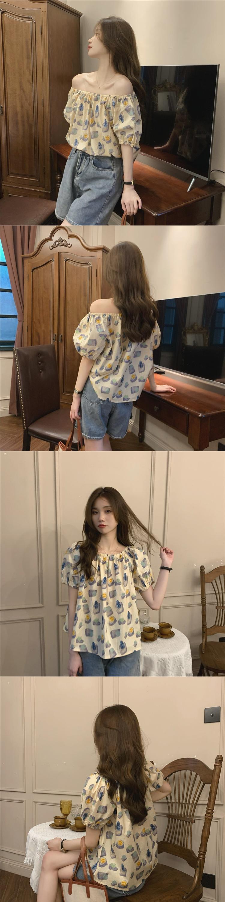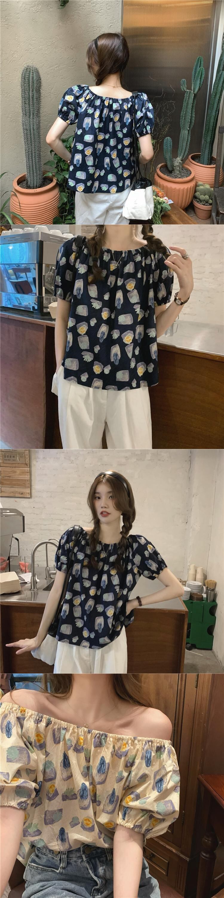 一言オフショルダーパフスリーブフローラルシャツレディースサマースウィートベイビーシャツルーズショートシックトップデザインセンス 大人ガーリー キュート カジュアル 夏物 花柄 7460034208164244 | framboise21
