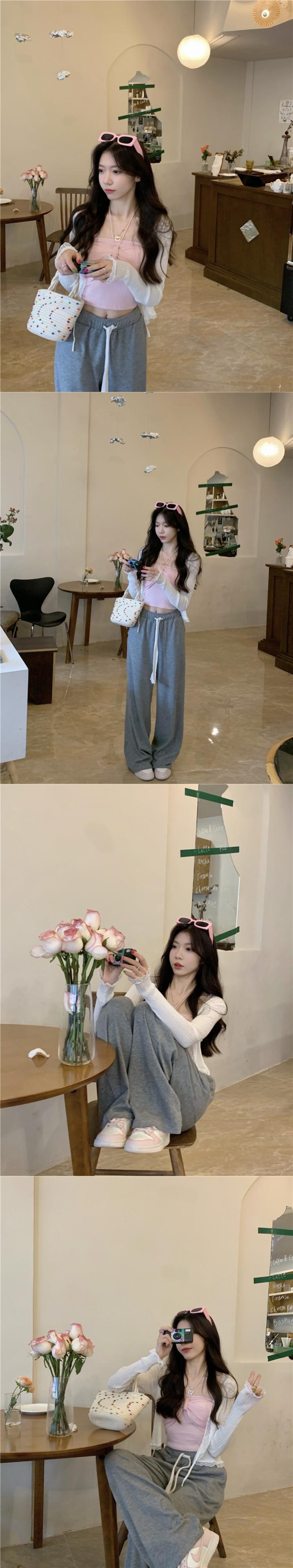 アイスシルクサンスクリーンカーディガンレディースサマー薄手ニットブラウススモールコートサスペンダー、ショートホワイトレース 夏物 7460068072389359