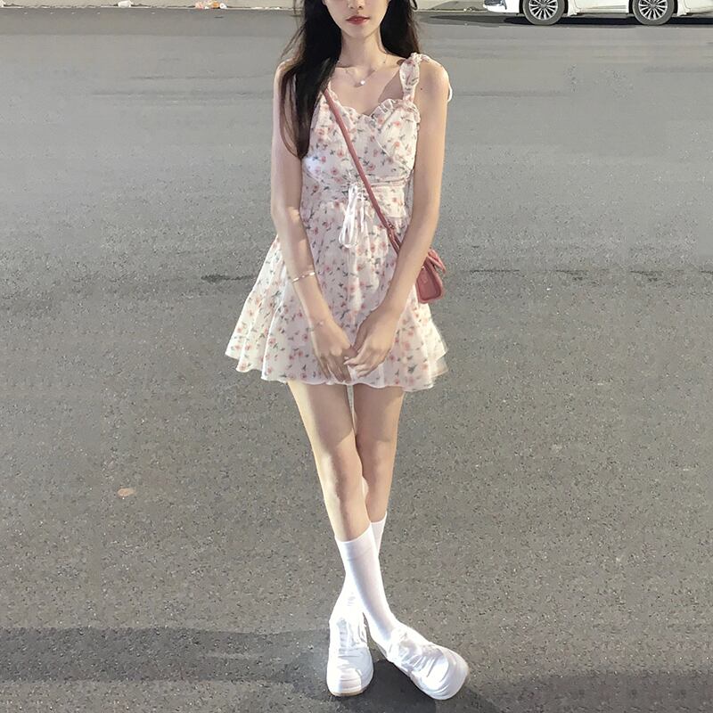 甘くてスパイシーなスタイルのスリングフローラルドレス2022年夏の女性の新しいシックなウエスト初恋ティーブレイクミルク甘くて美しい 大人ガーリー スウィート キュート カジュアル サマー 夏物 花柄 7460011716168976 | framboise21