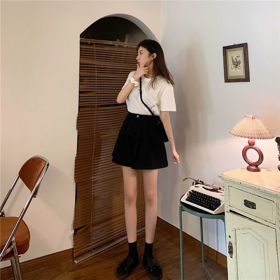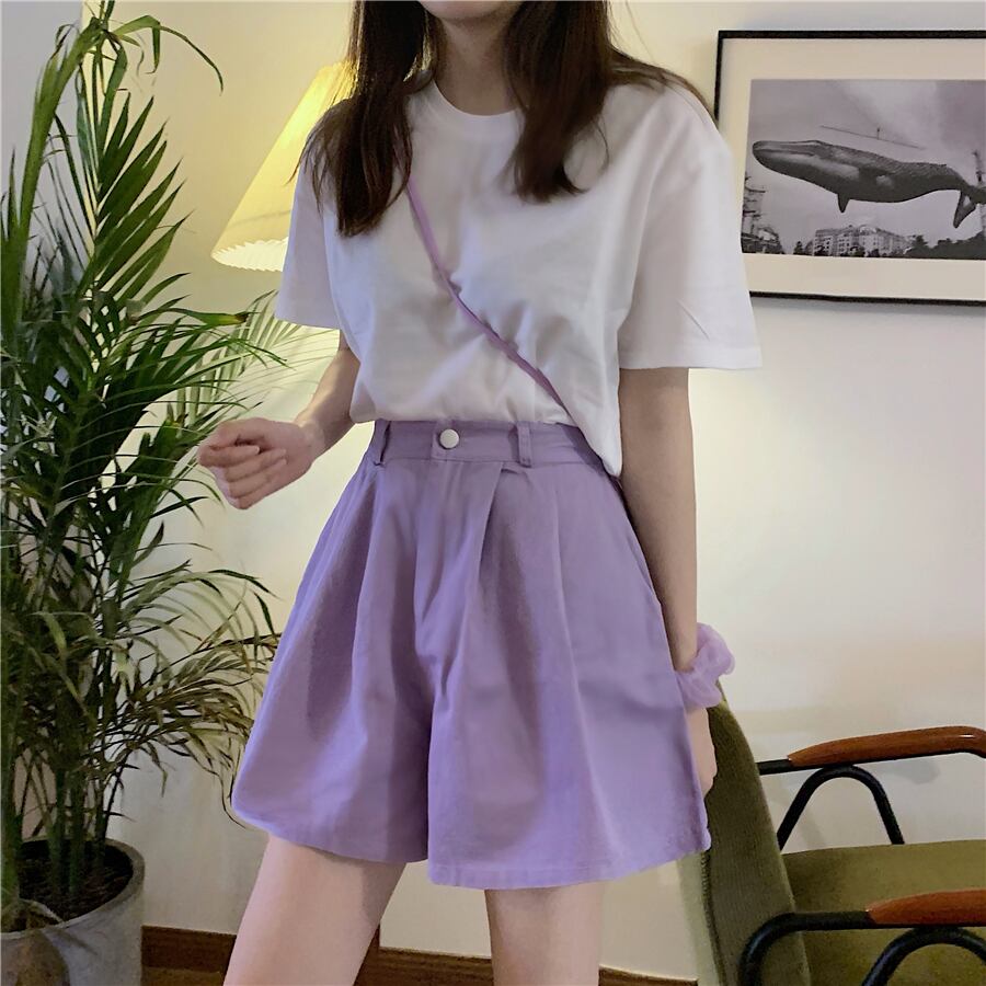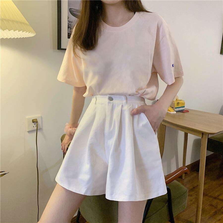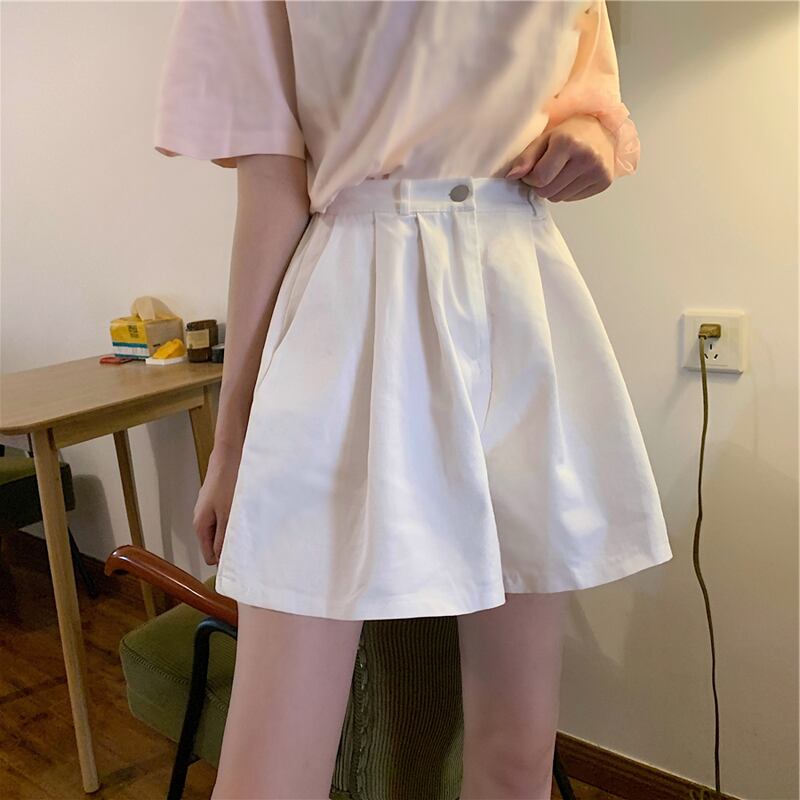 ホワイトワイドレッグショートウィメンズ2022夏新作ハイウエストシンアウタースチューデントカジュアルパンツオーバーオール5点パンツ サマー 夏物 7460053465858431 | framboise21