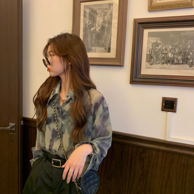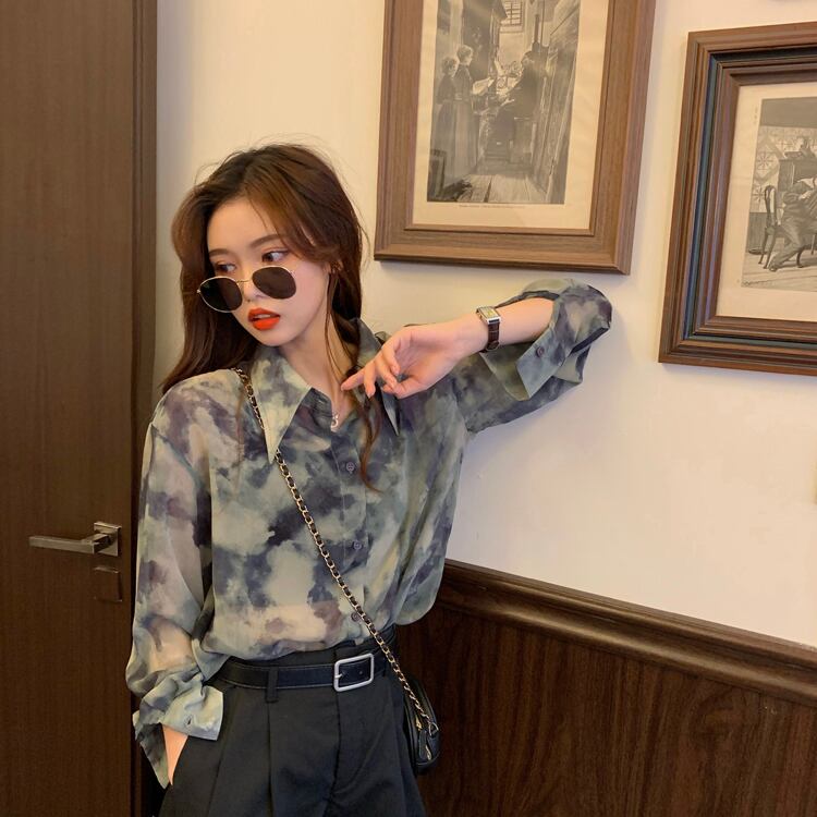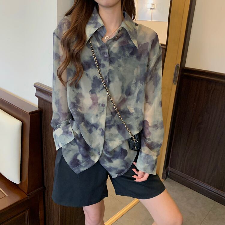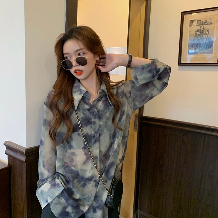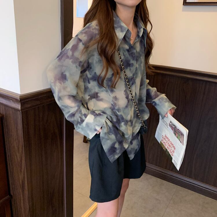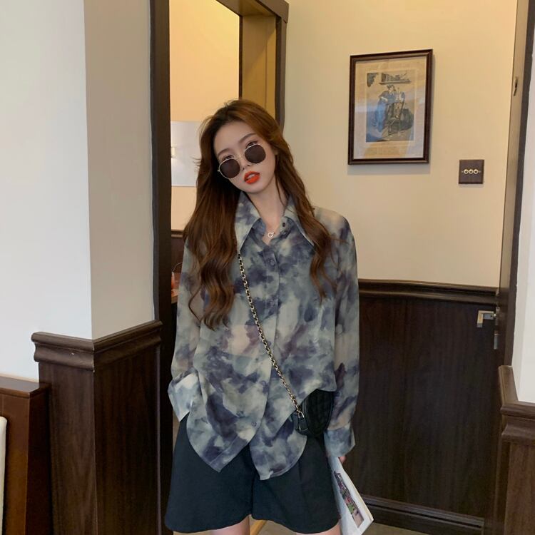 絞り染めシフォンシャツ女性の夏の薄いセクション長い日焼け止めシャツのデザインニッチカーディガンシャツジャケットシースルートップ ロング サマー 夏物 7460079336738884 | framboise21
