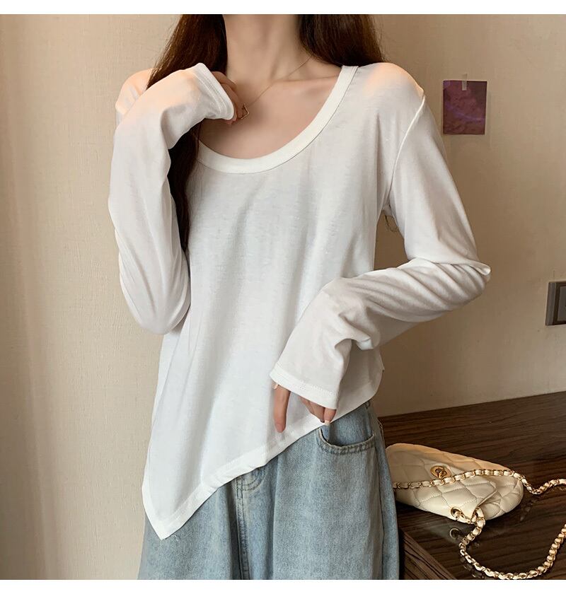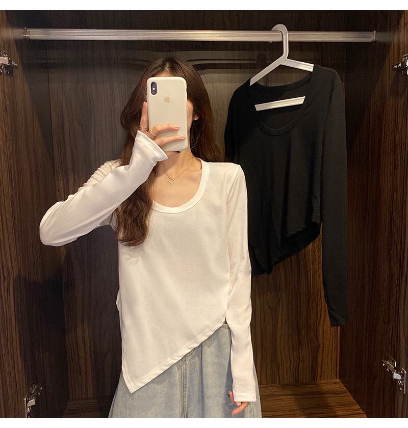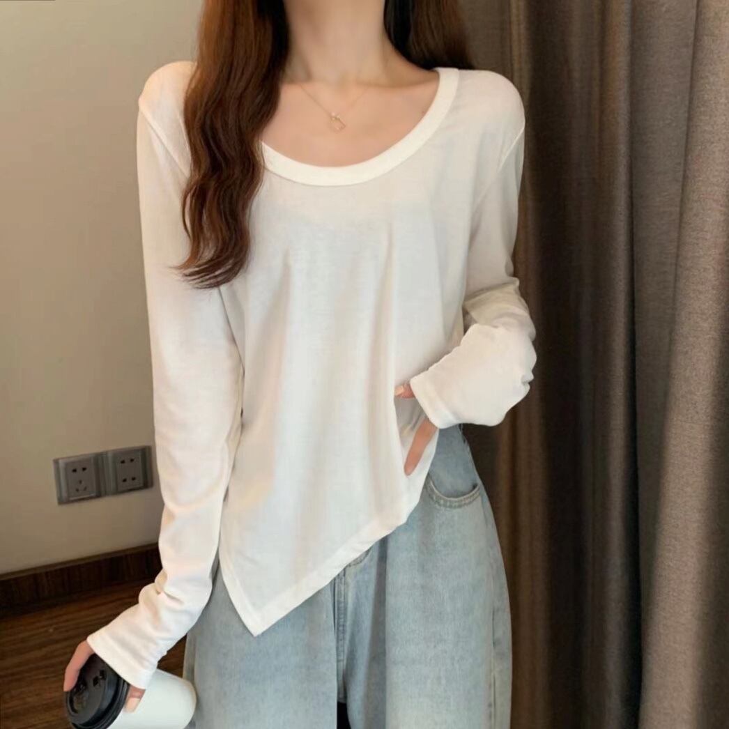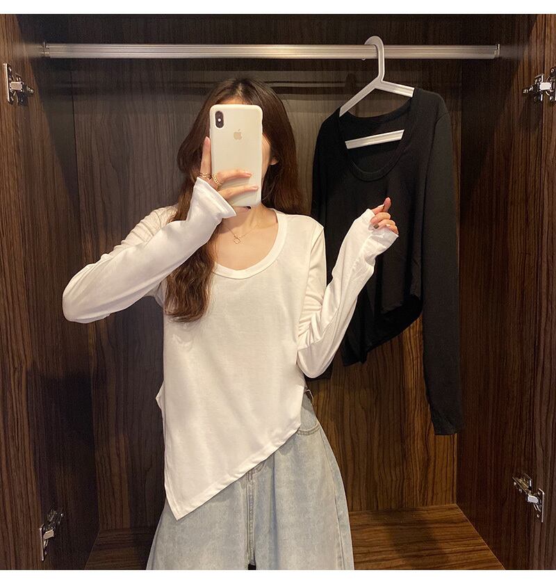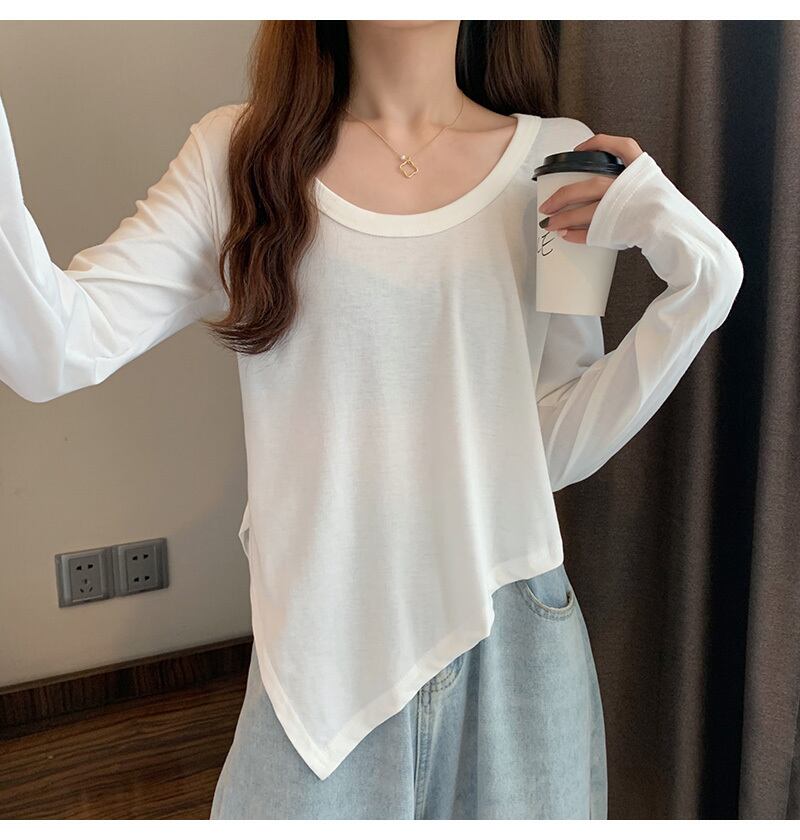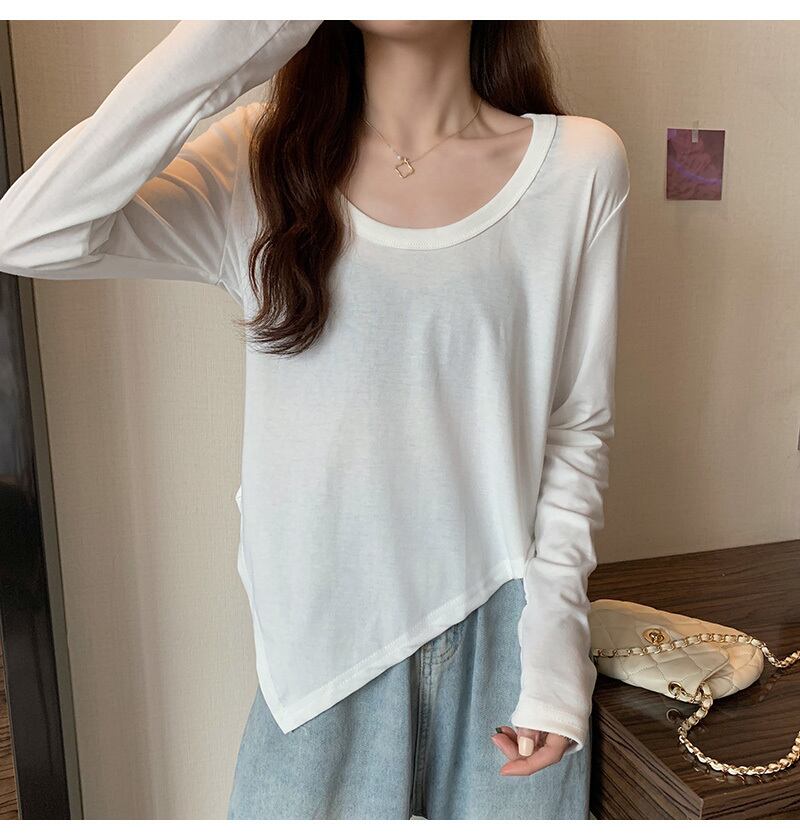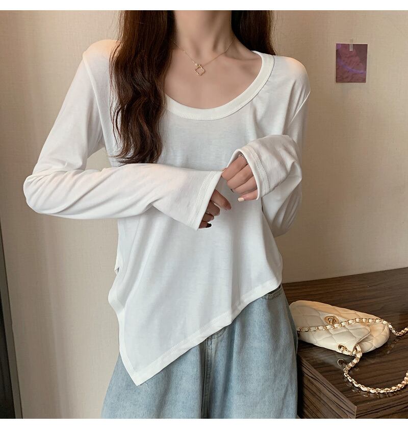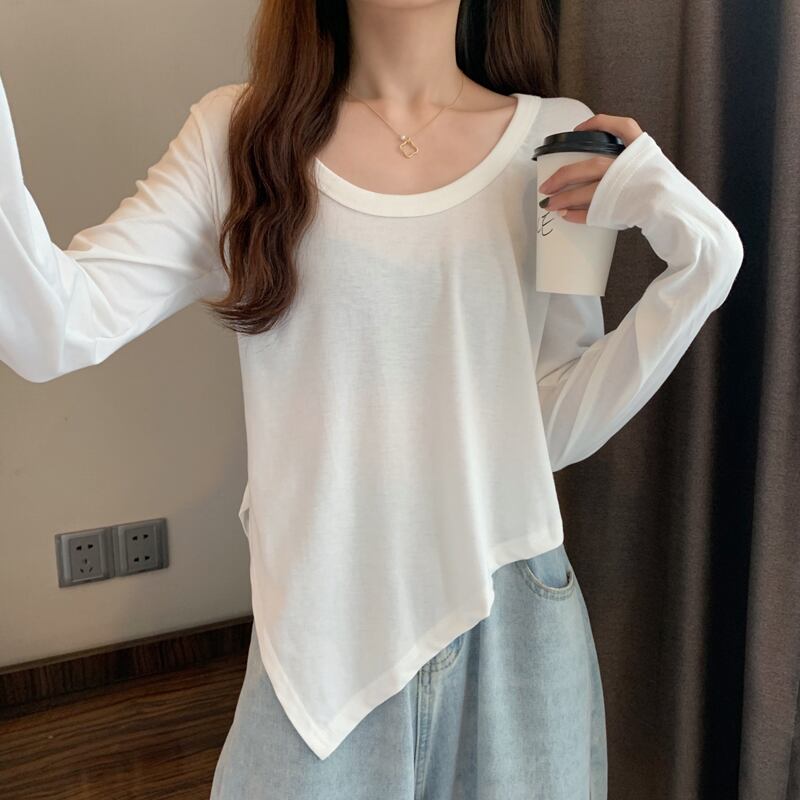 薄手の白い長袖Tシャツバージョンスリムフィット日焼け止めブラウス不規則なトップ女性のデザインセンスニッチな夏 ロング ホワイト サマー 夏物 7460039139589800 | framboise21