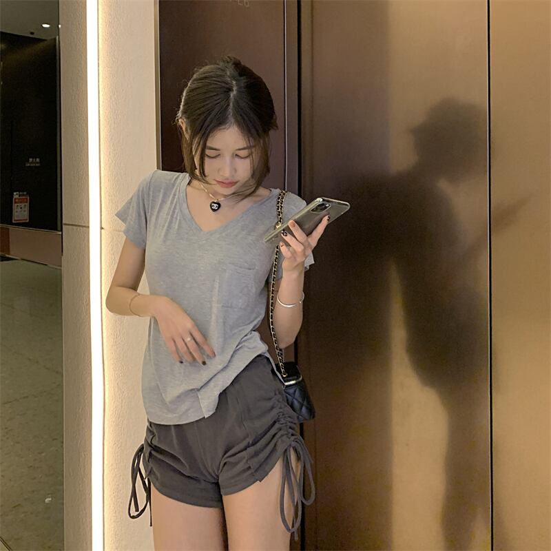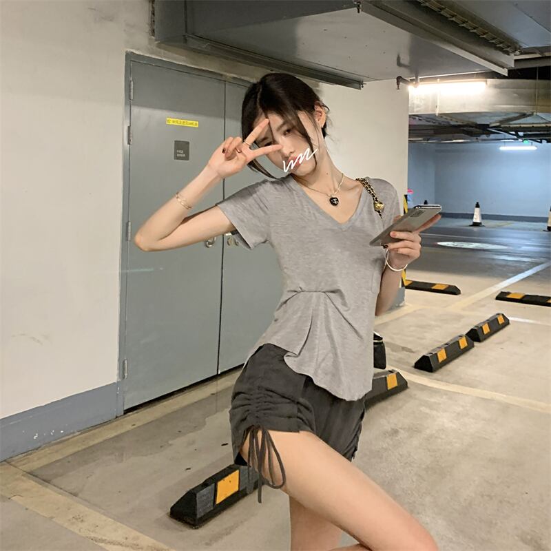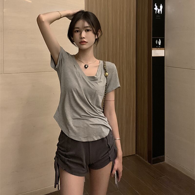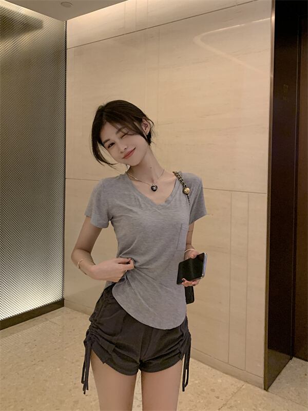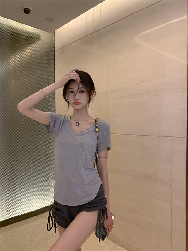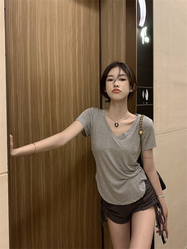 ピュアディレッショントップレディースサマーデザインセンスカジュアルTシャツ薄手2022年新作トレンディ薄白Vネック半袖ボディ桖 ホワイト 夏物 74600552036251 | framboise21