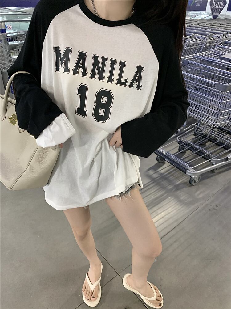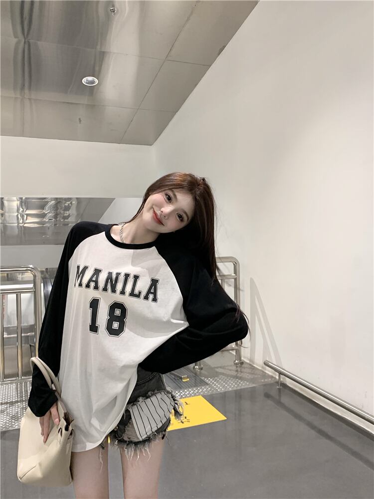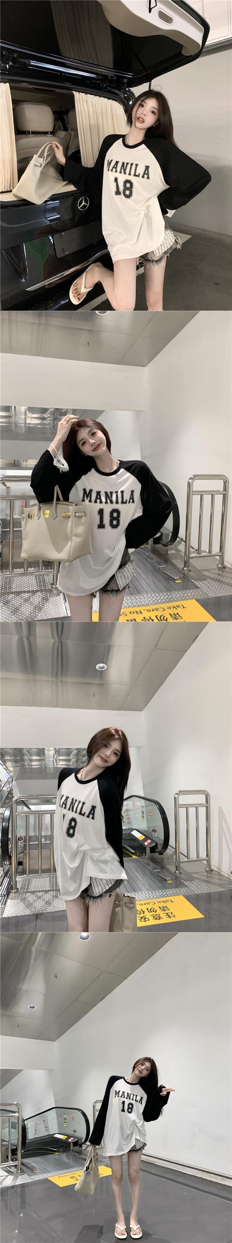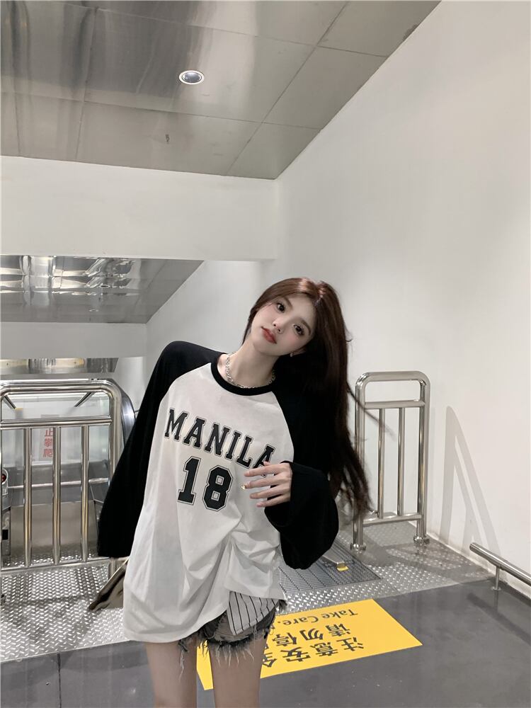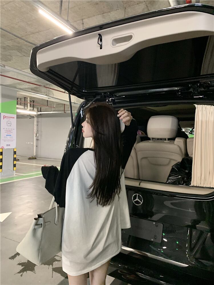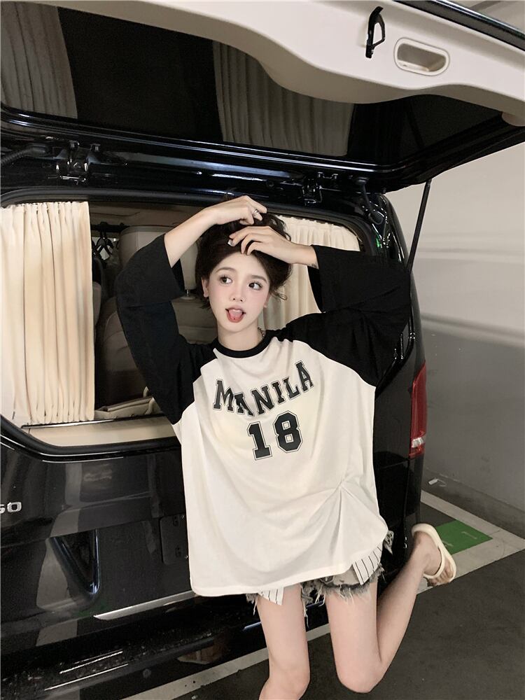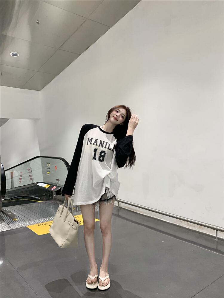 黒と白のカラーマッチングルーズミドル丈ラグランスリーブ日焼け止めシャツバージョン怠惰なカジュアルスポーツTシャツ女性の夏のトップ ホワイト ブラック サマー 夏物 7460064677456455 | framboise21