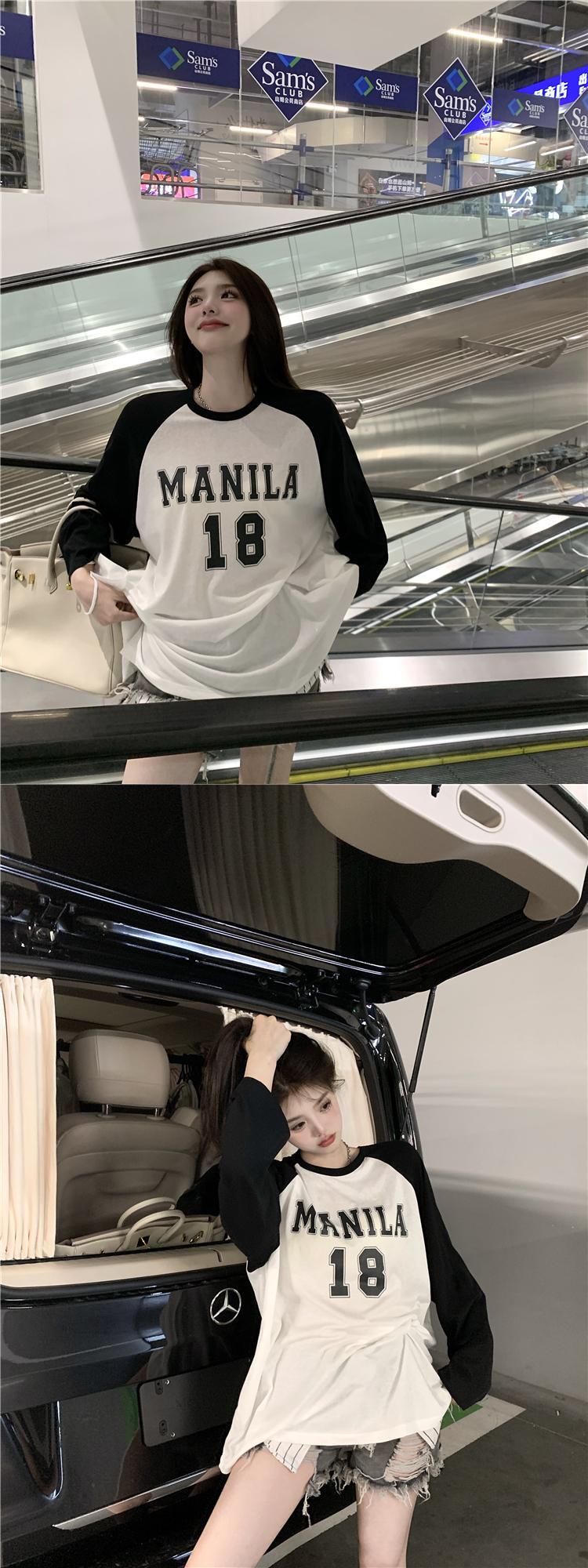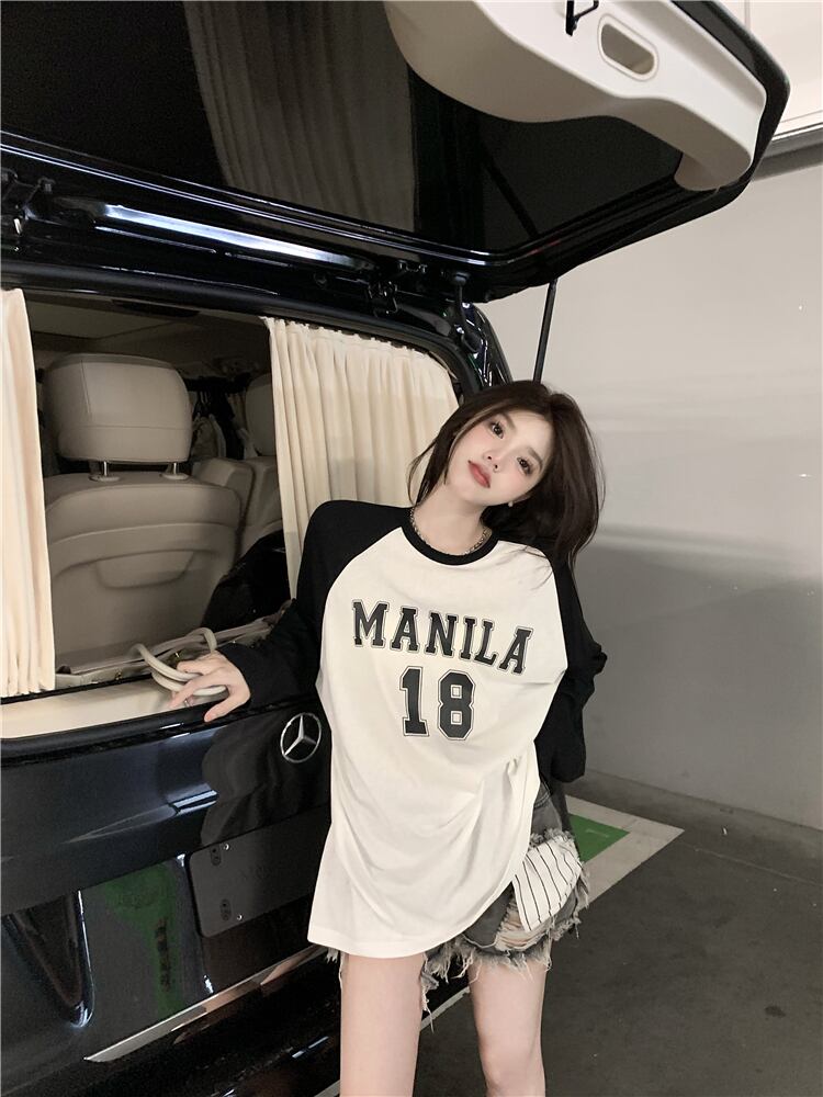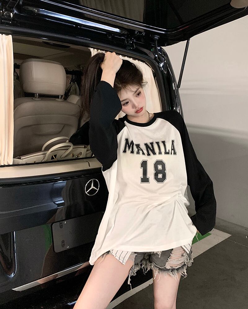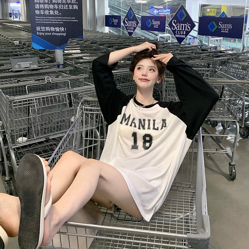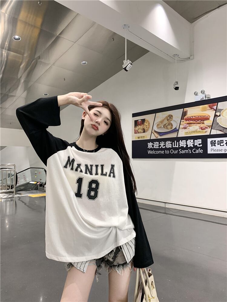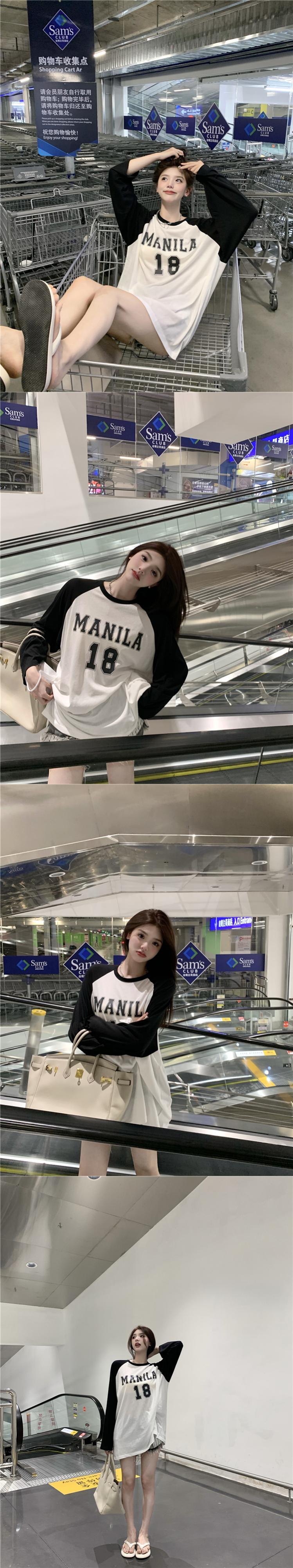 黒と白のカラーマッチングルーズミドル丈ラグランスリーブ日焼け止めシャツバージョン怠惰なカジュアルスポーツTシャツ女性の夏のトップ ホワイト ブラック サマー 夏物 7460064677456455 | framboise21