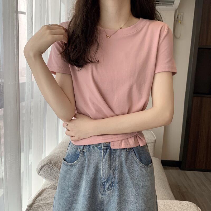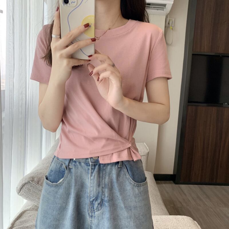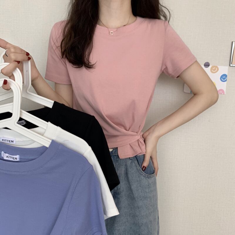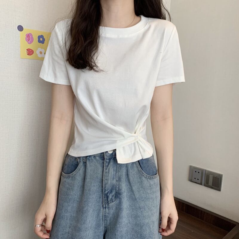 不規則な半袖Tシャツの女性の2022年の新しい夏の白い綿とハイウエストパンツのショートトップはニッチなデザインの感覚があります ホワイト コットン サマー 夏物 7460081368825582 | framboise21