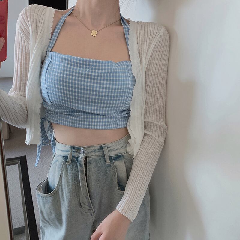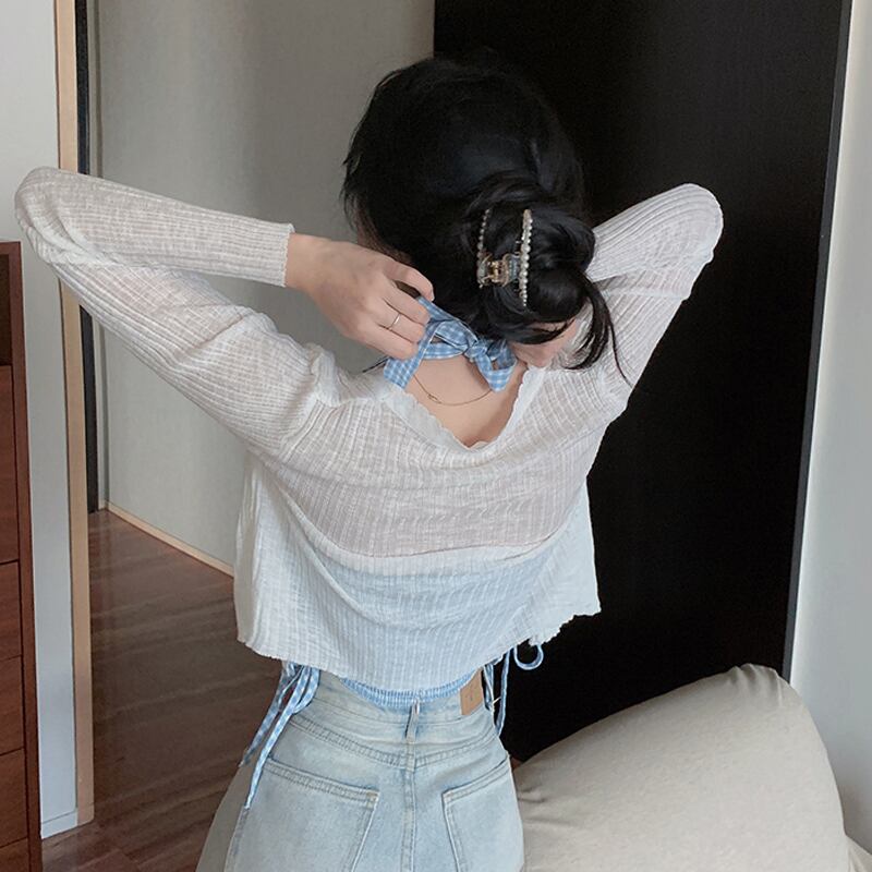 Vネックアイスシルクサンスクリーンカーディガンスモールフレグランスコート薄手サスペンダーアウターブラウスサマーショールショートトップ婦人服 夏物 74600869883204 | framboise21