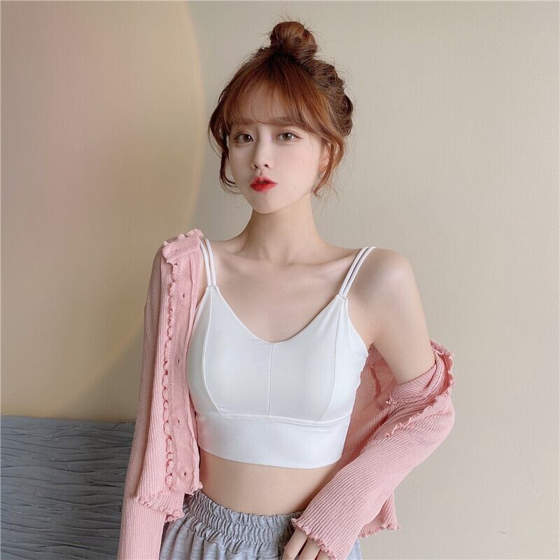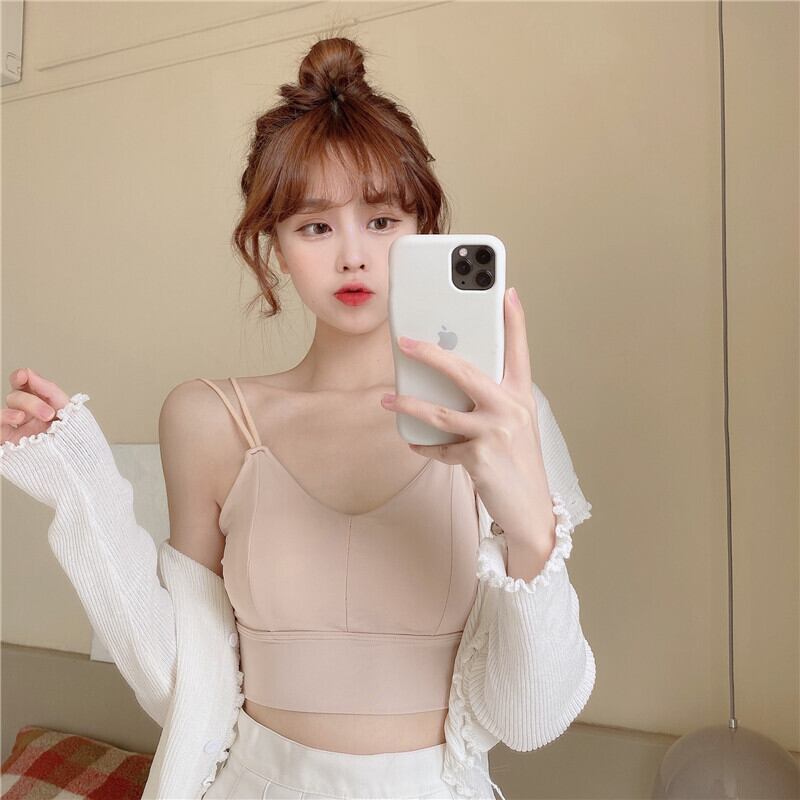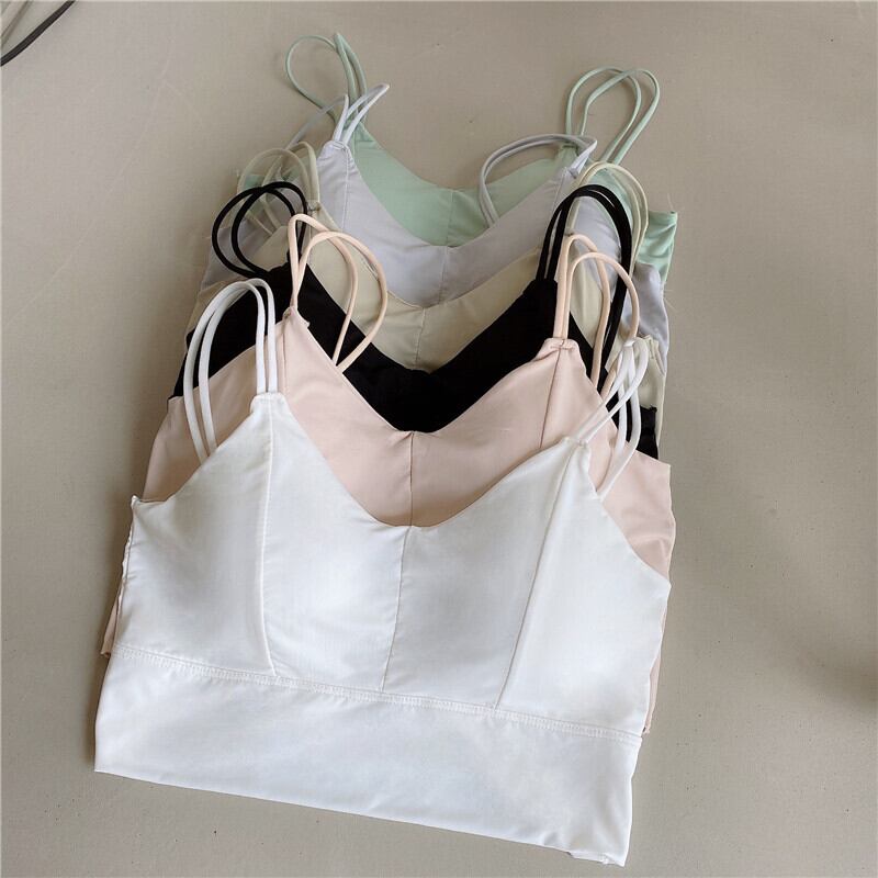 アイスシルクの小さなスリングの女性は、夏に短いへそラップチェストトップホワイトビューティーバック下着ワンピースベストを着用します ショート サマー 夏物 7460062347934985 | framboise21