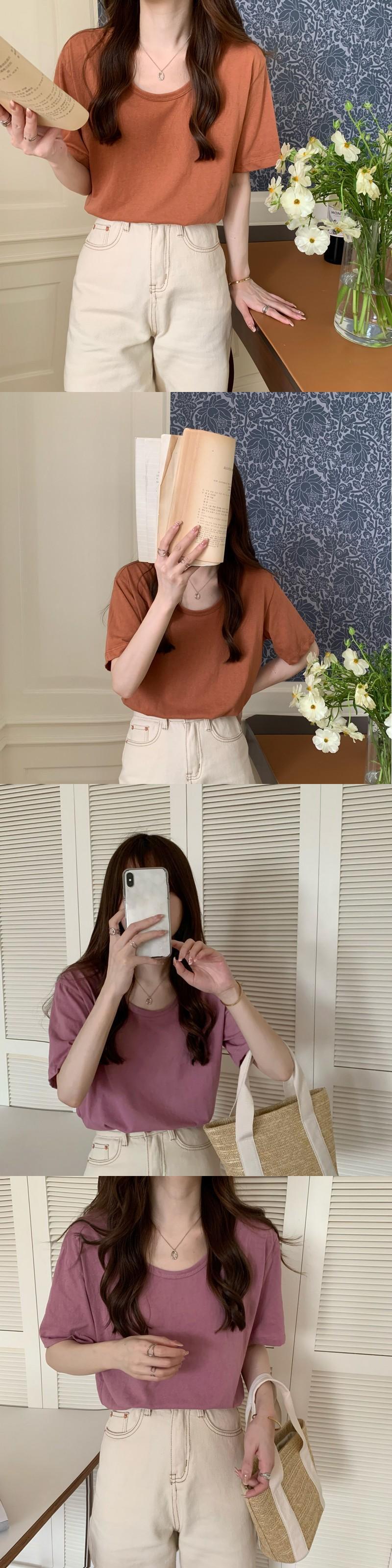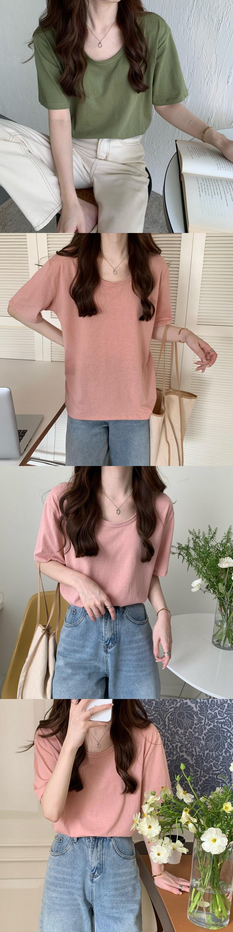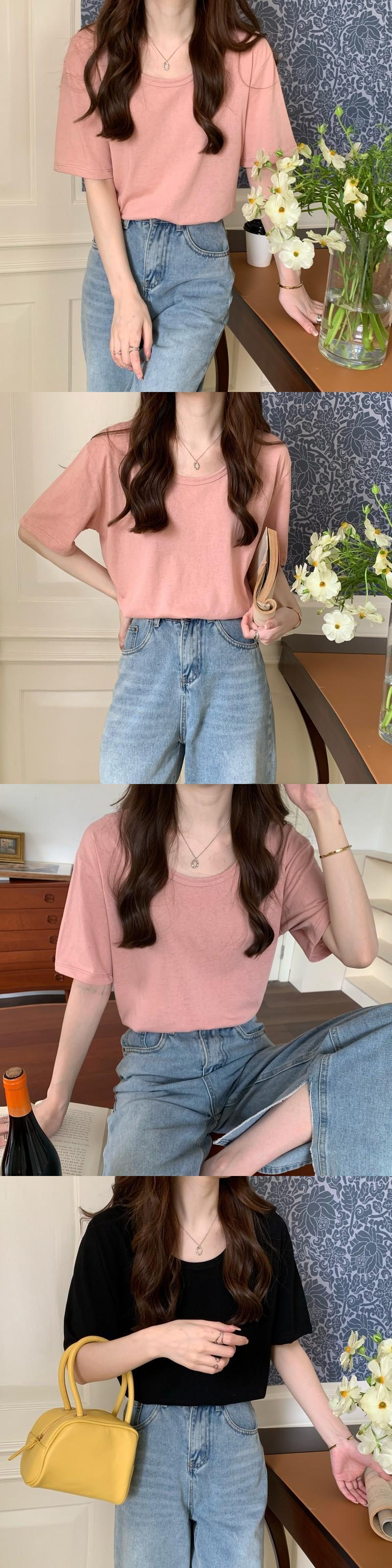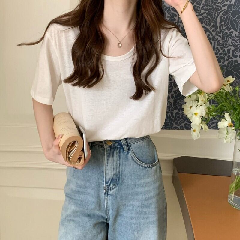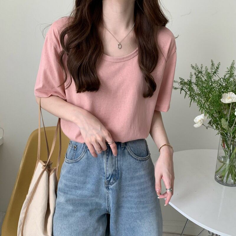 2022年新作ピンクコットンショルダー半袖Tシャツレディースサマー薄手ラウンドネックルーズカジュアル無地オールマッチトップ 夏物 Oネック ソリッドカラー 7460092450573882 | framboise21