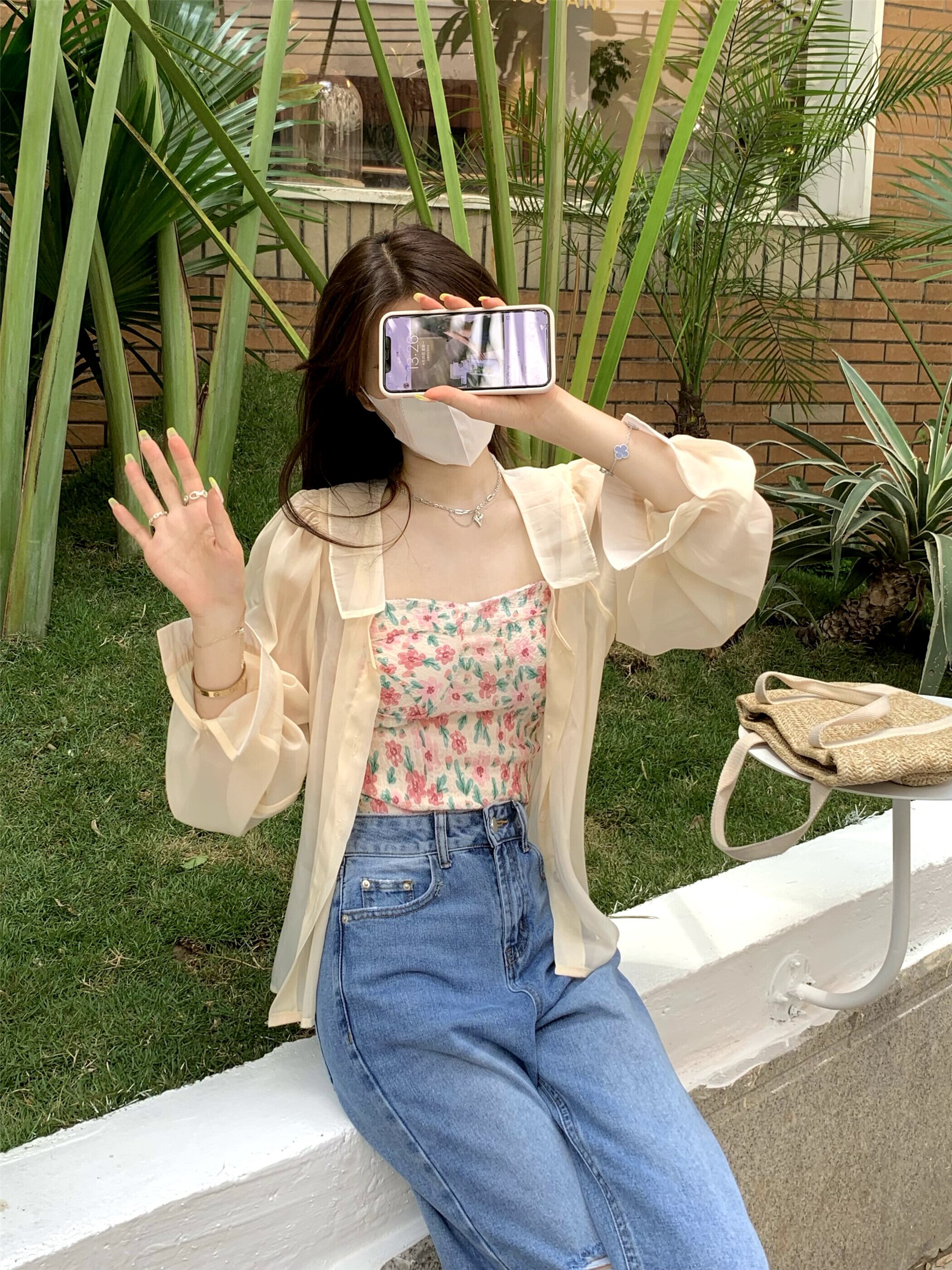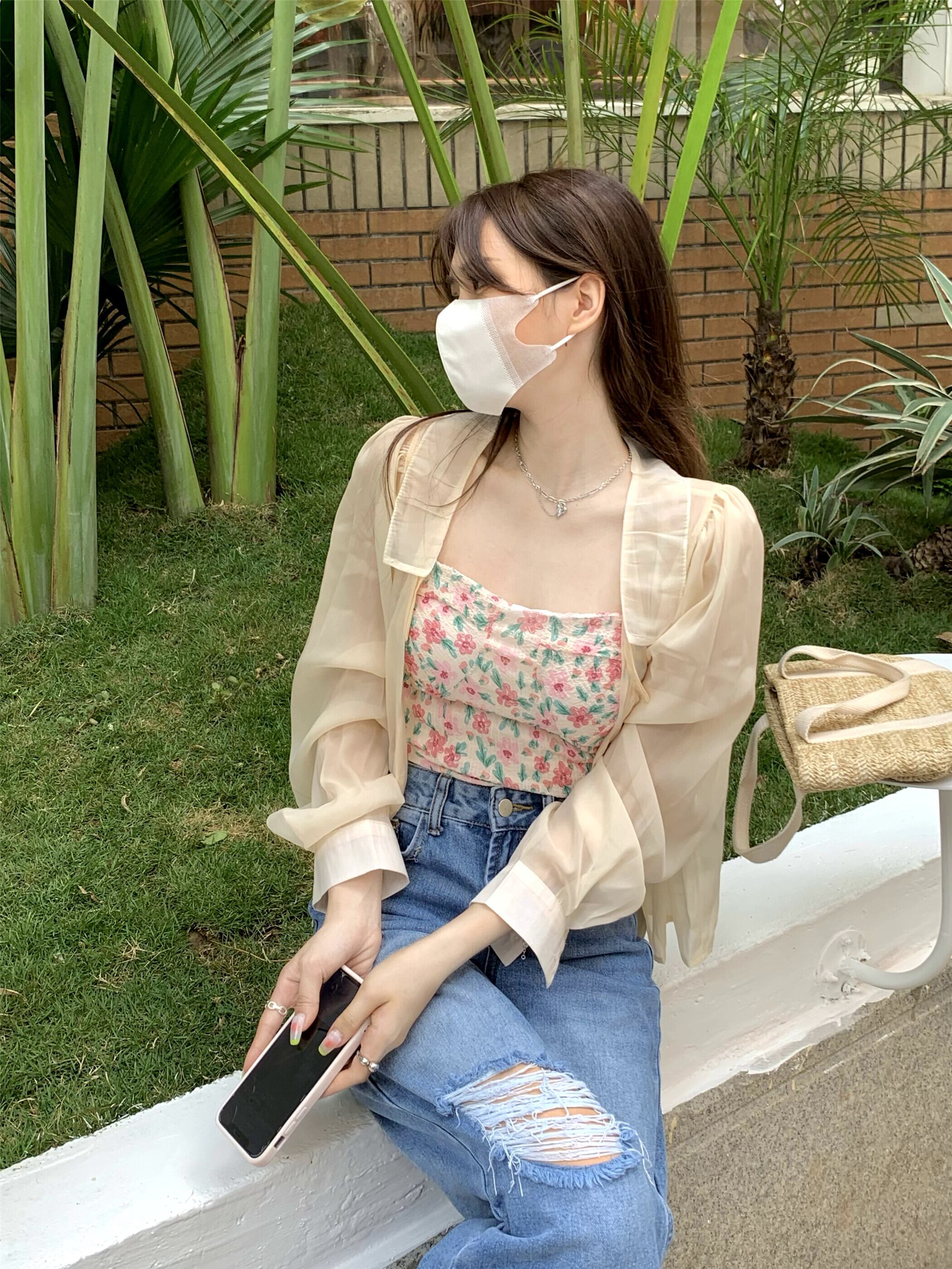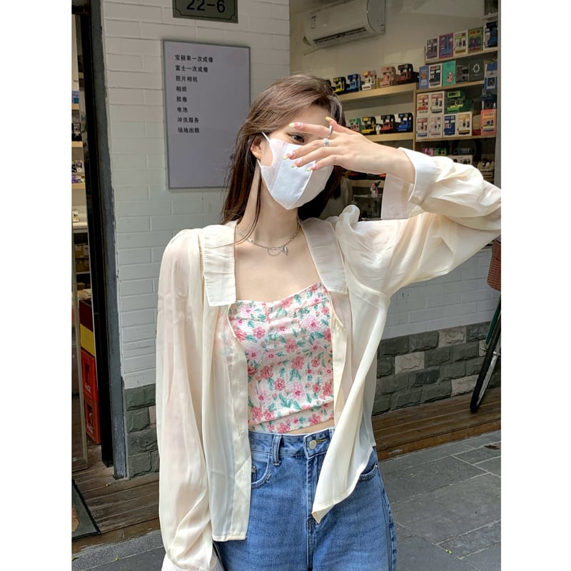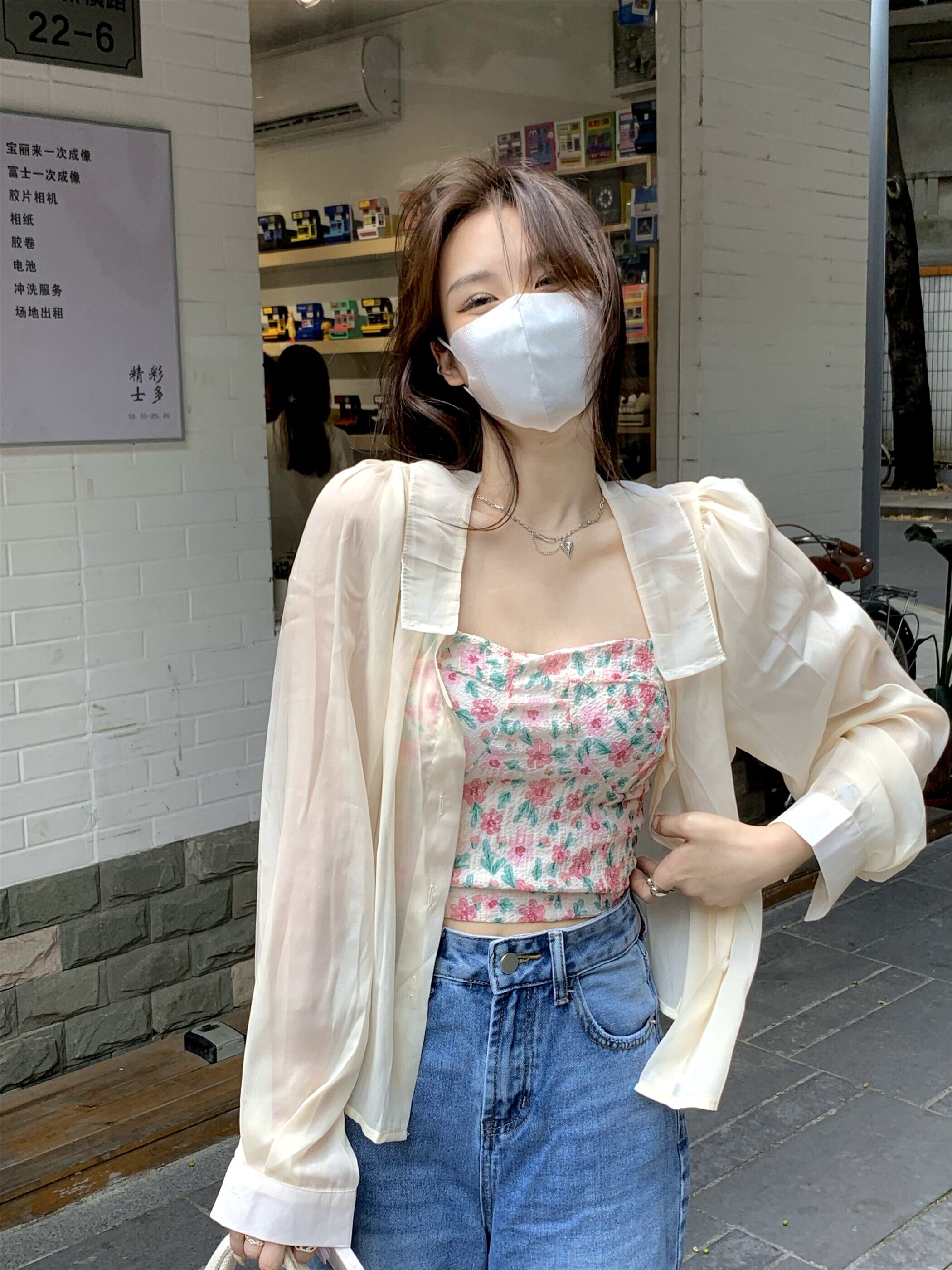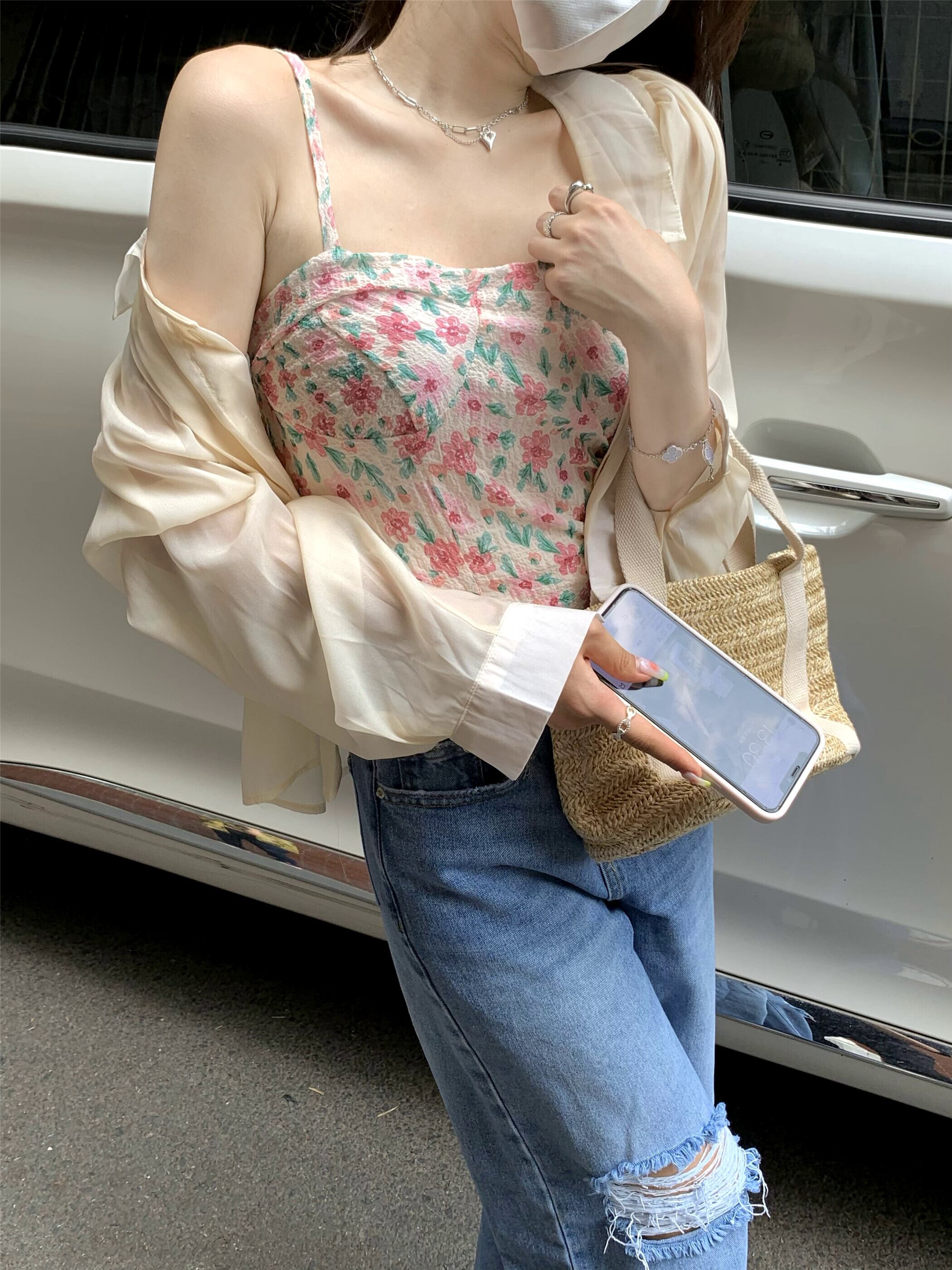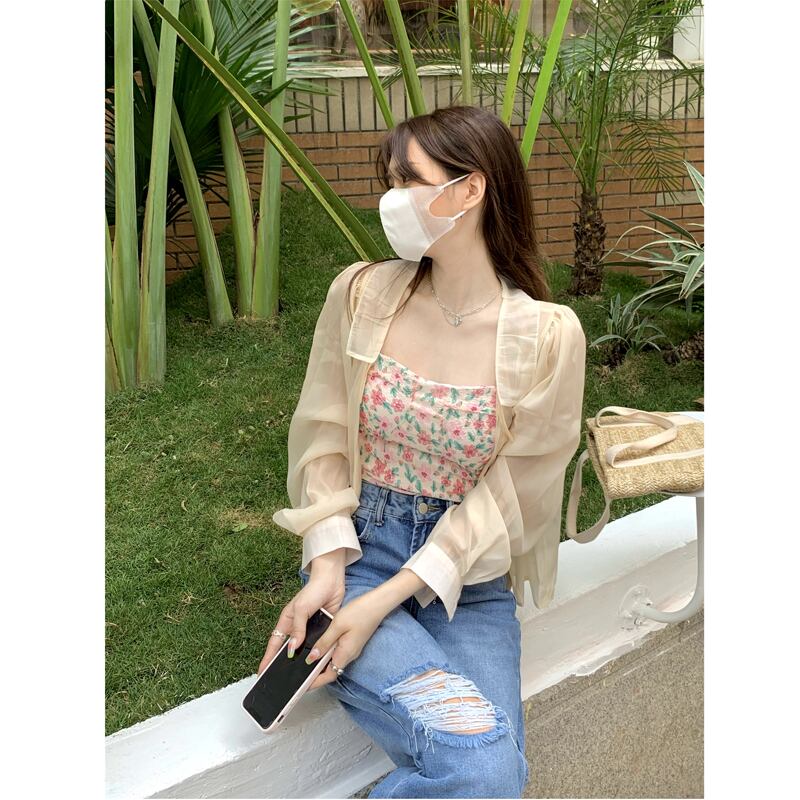 アプリコットテンセル日焼け止めシャツサマーウィメンズショート2022ドレープシャツトップシンフローラルスリングツーピースセット 夏物 花柄 7460057588381299 | framboise21