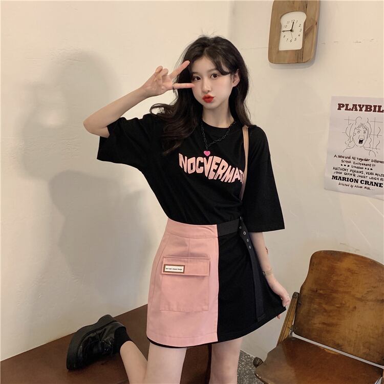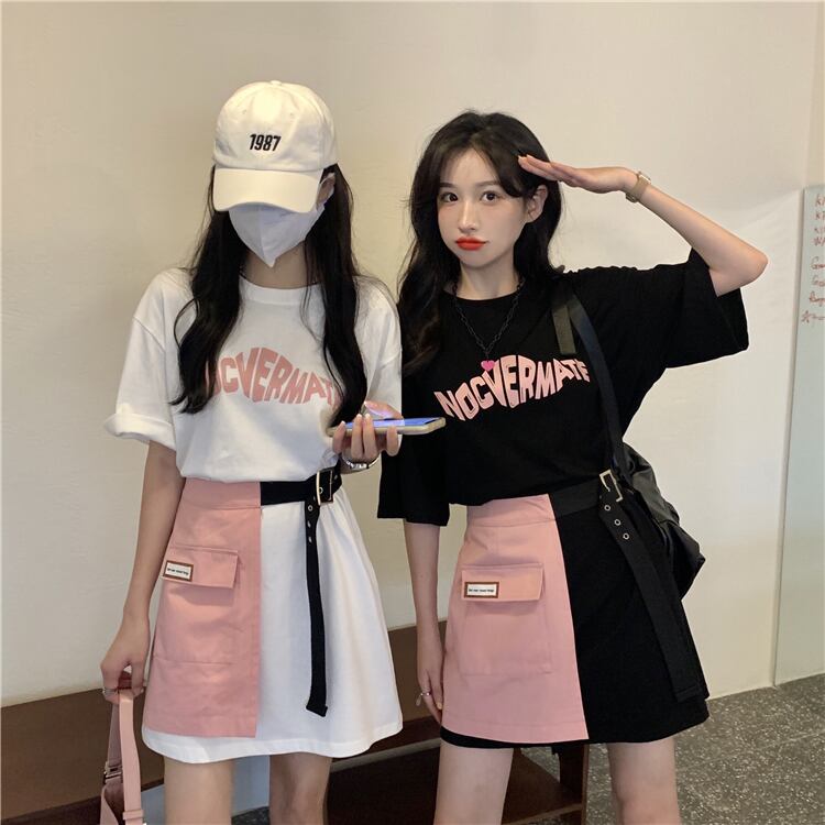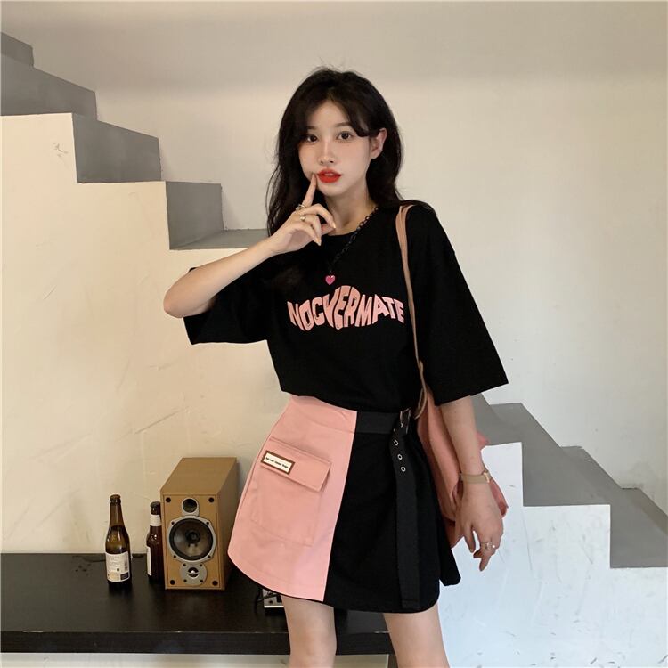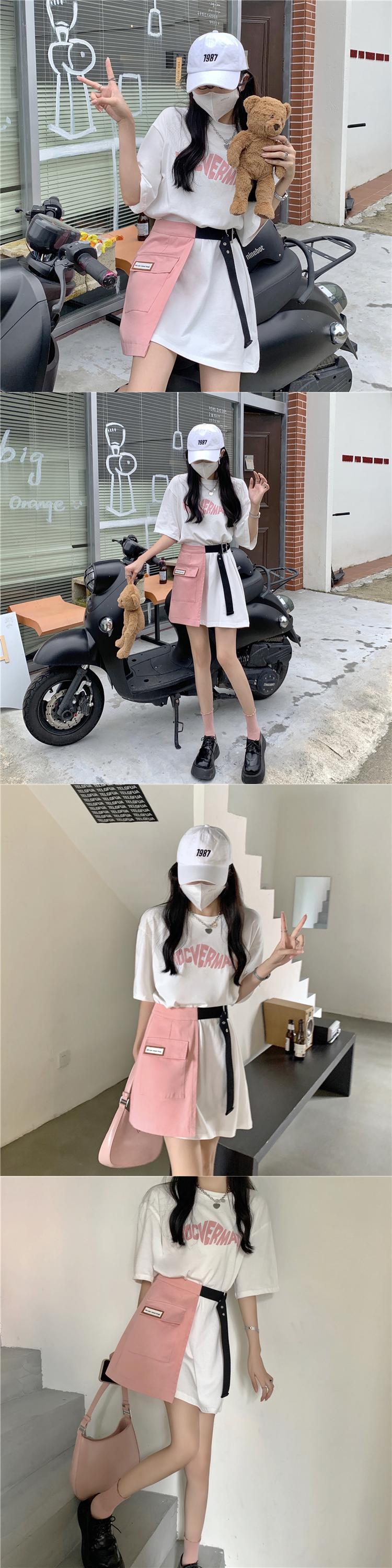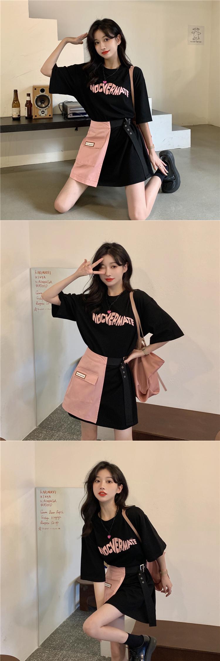 色:ブラックTピンクスカート,白いTシャツのスカート,ピンクのスカート