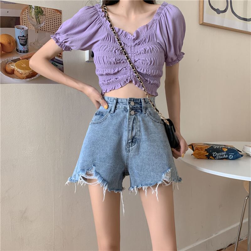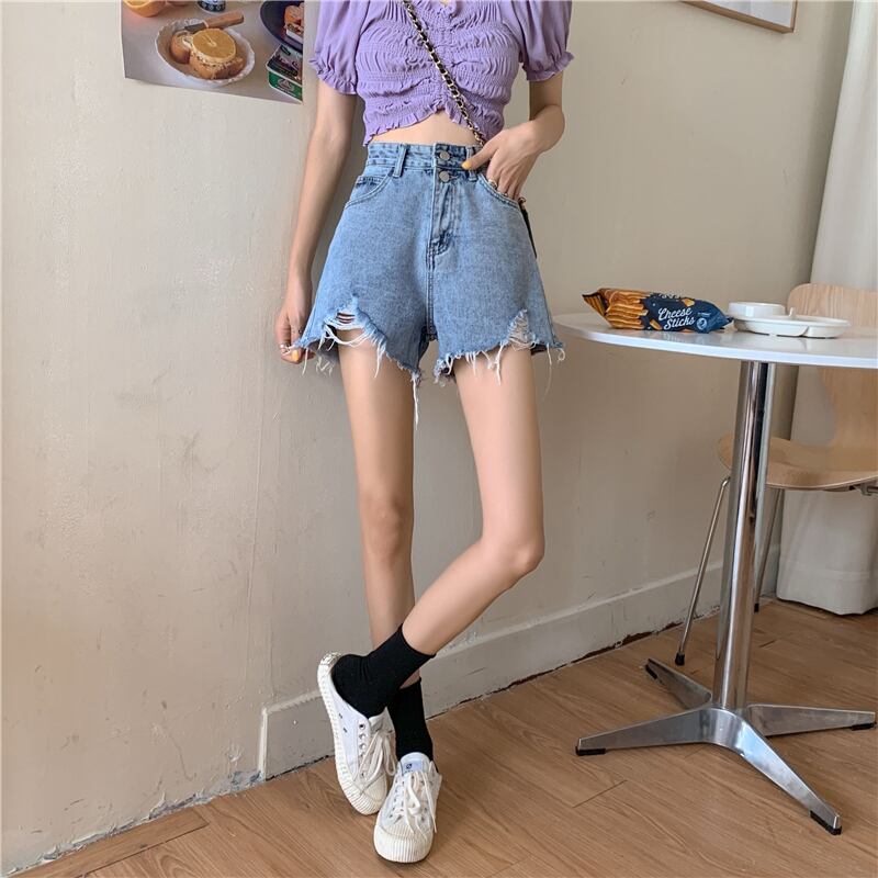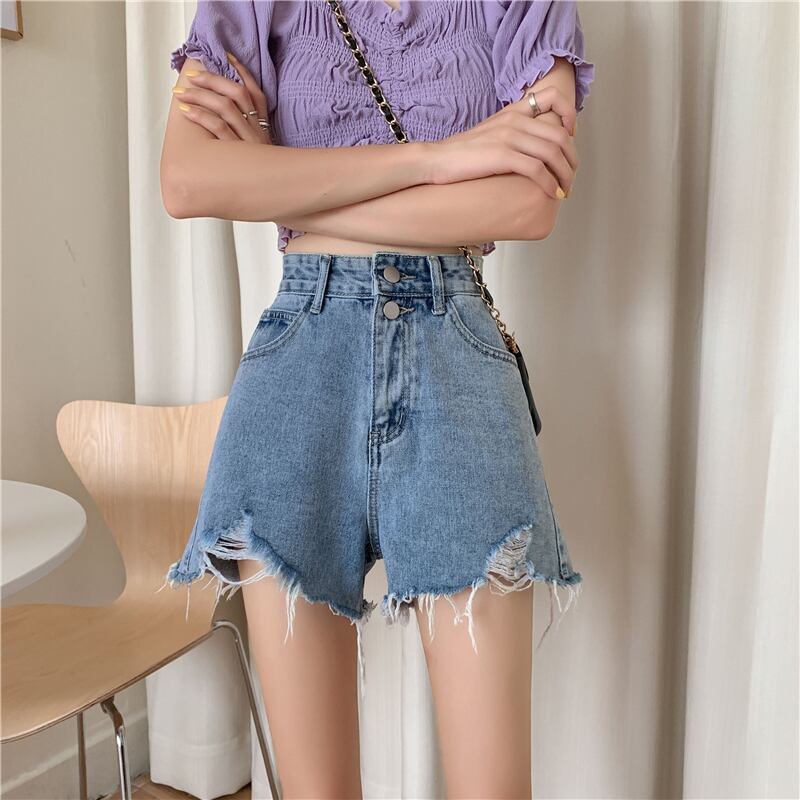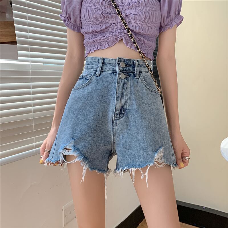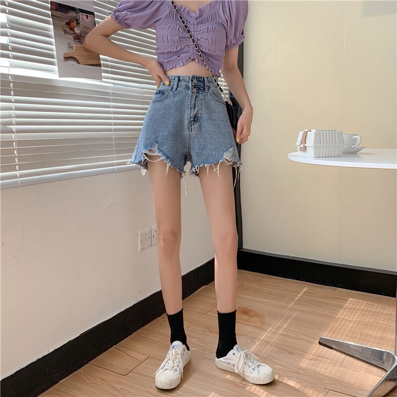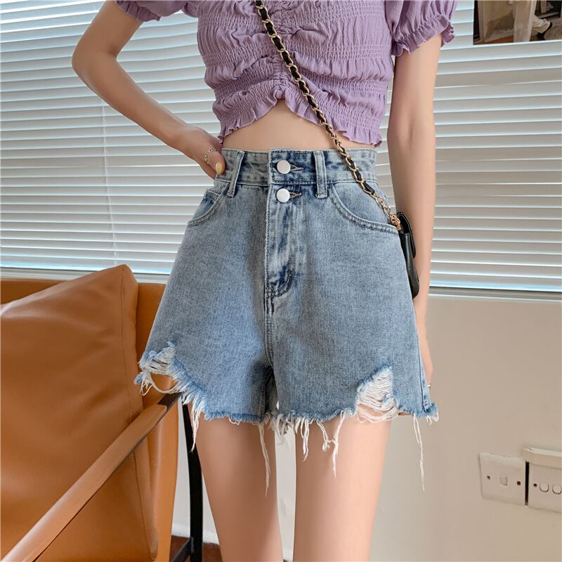 小さな150ワイドレッグデニムショーツ女性の夏2022年新しい夏の薄いセクションハイウエストネットレッドaライン薄いパンツ サマー 夏物 ブルマー 7460064649449795 | framboise21