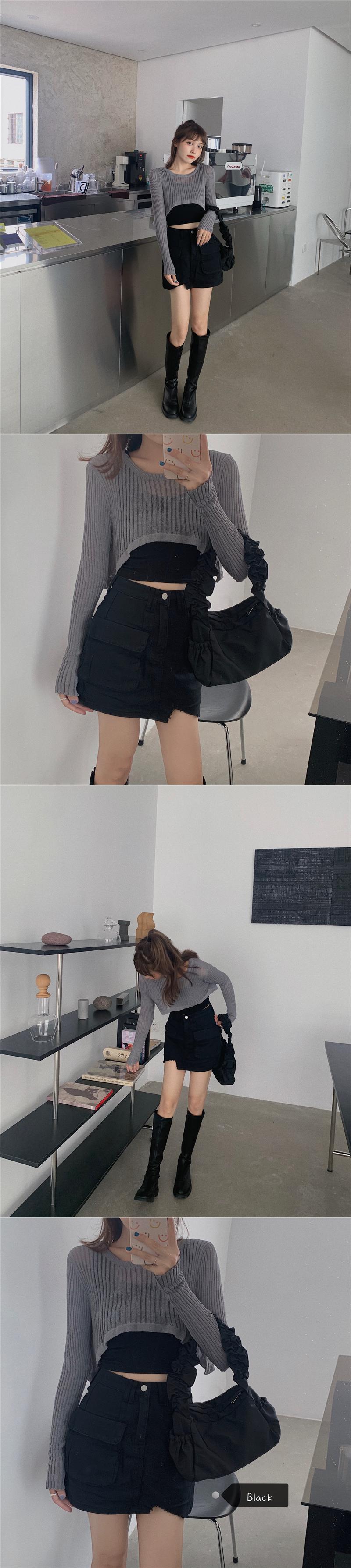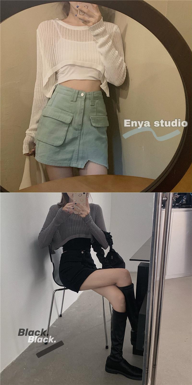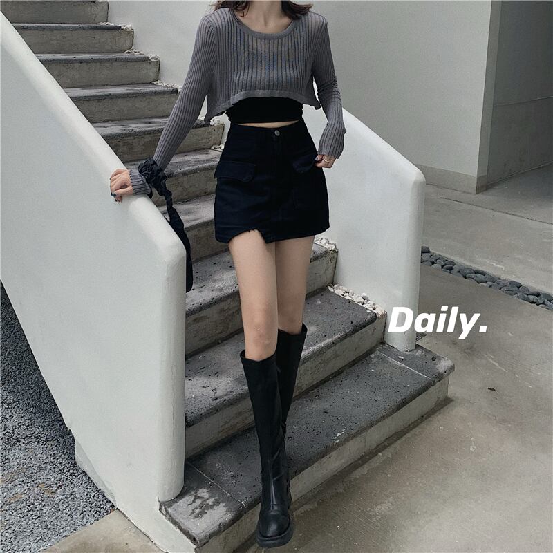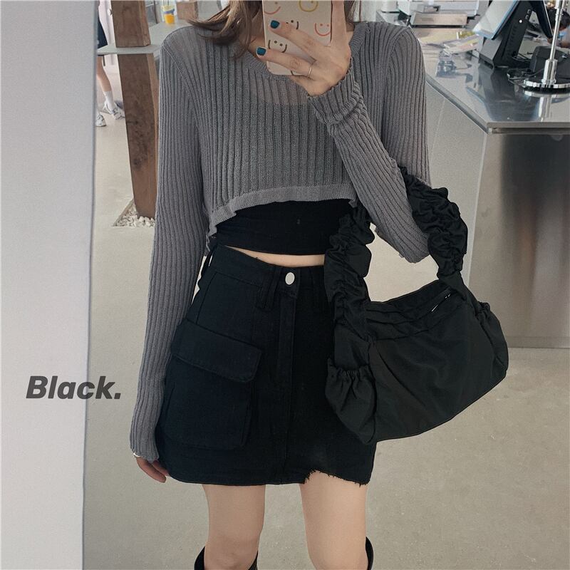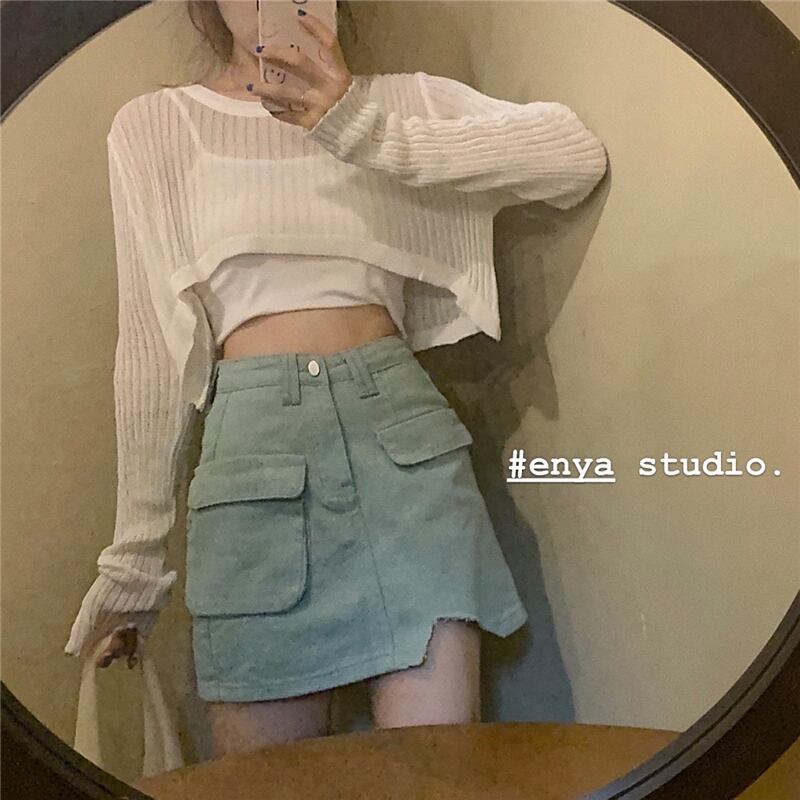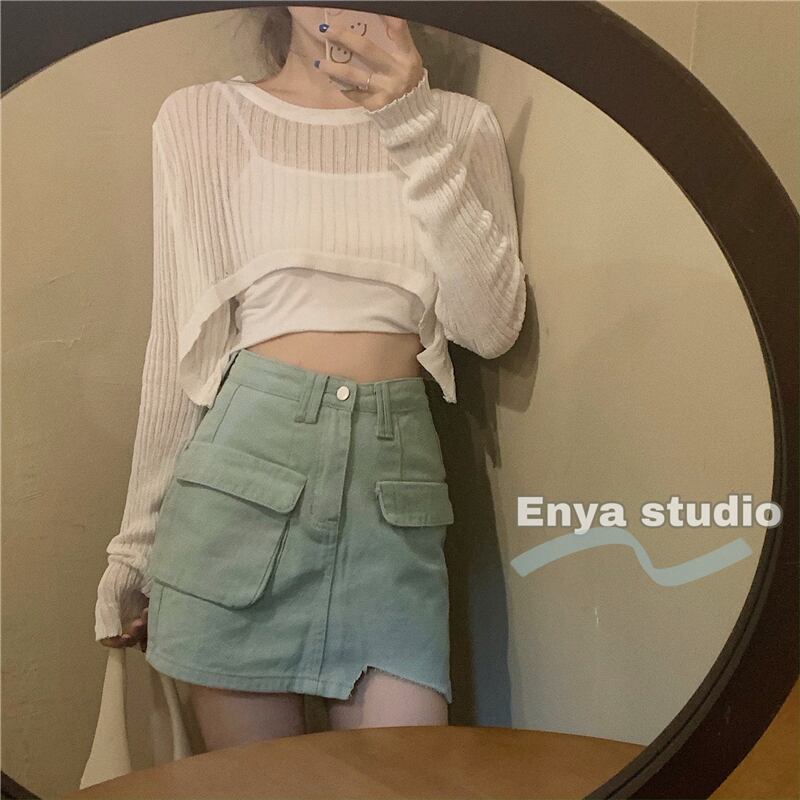 サスペンダー付きの日焼け防止ハーフカットブラウス、女性の春と夏の薄いアイスシルクエアコンシャツ、短い中空ニットトップを重ねた ショート レッド スプリング 春物 サマー 夏物 7460070741528166 | framboise21