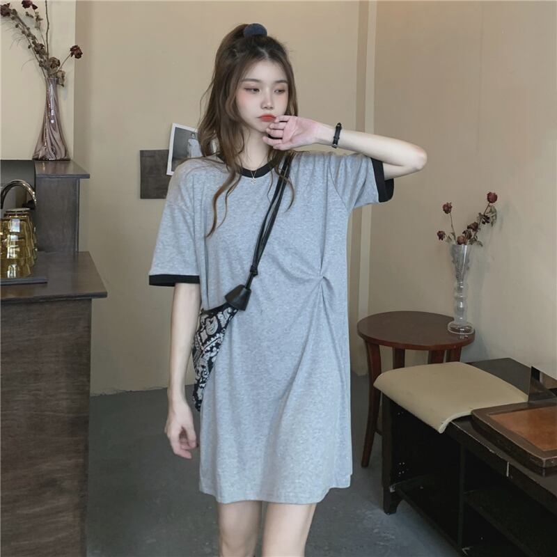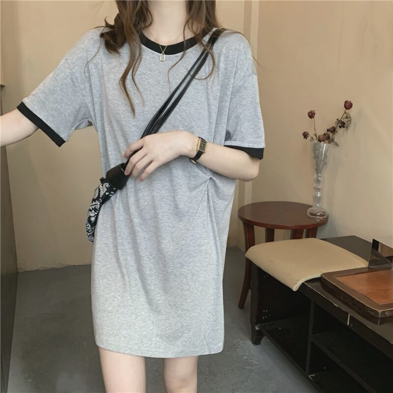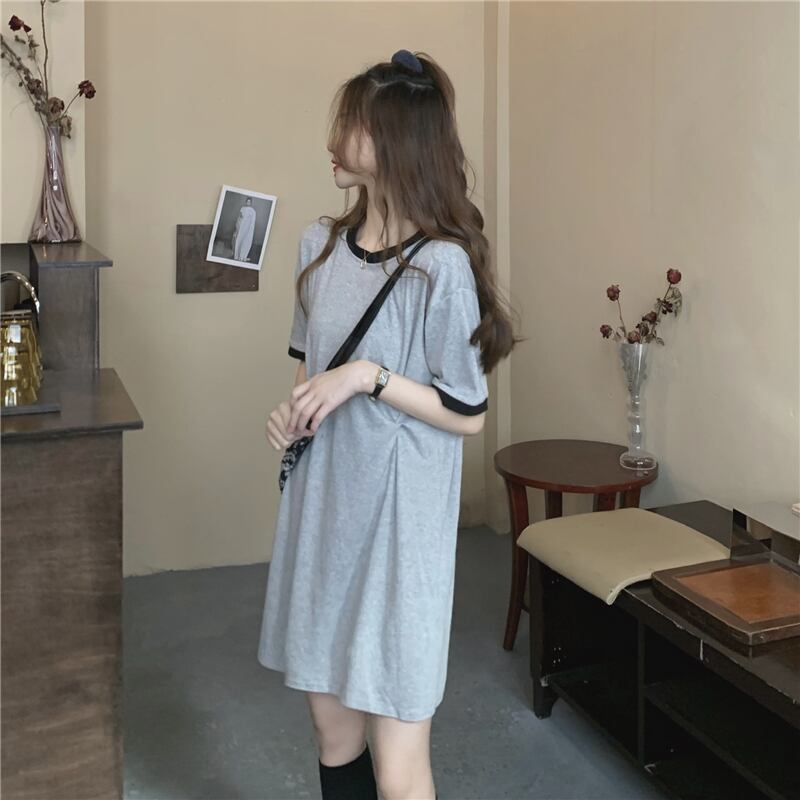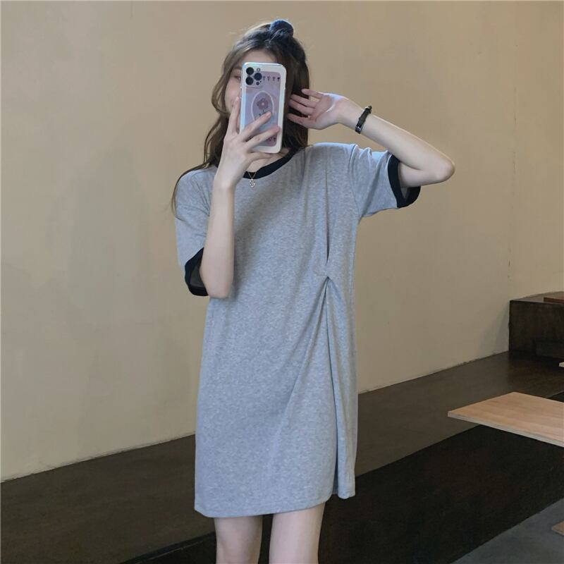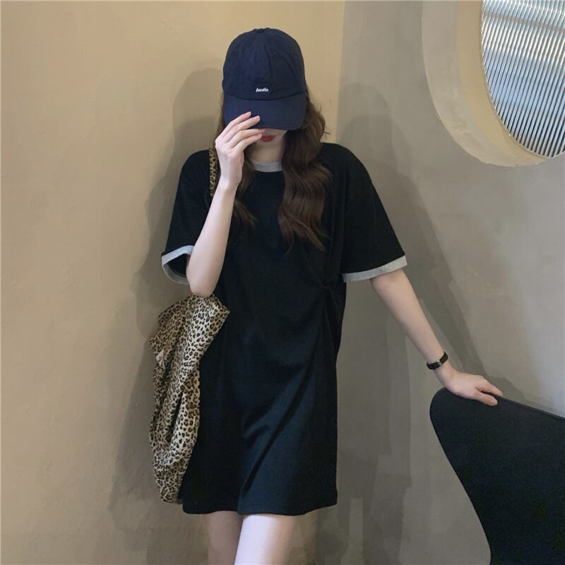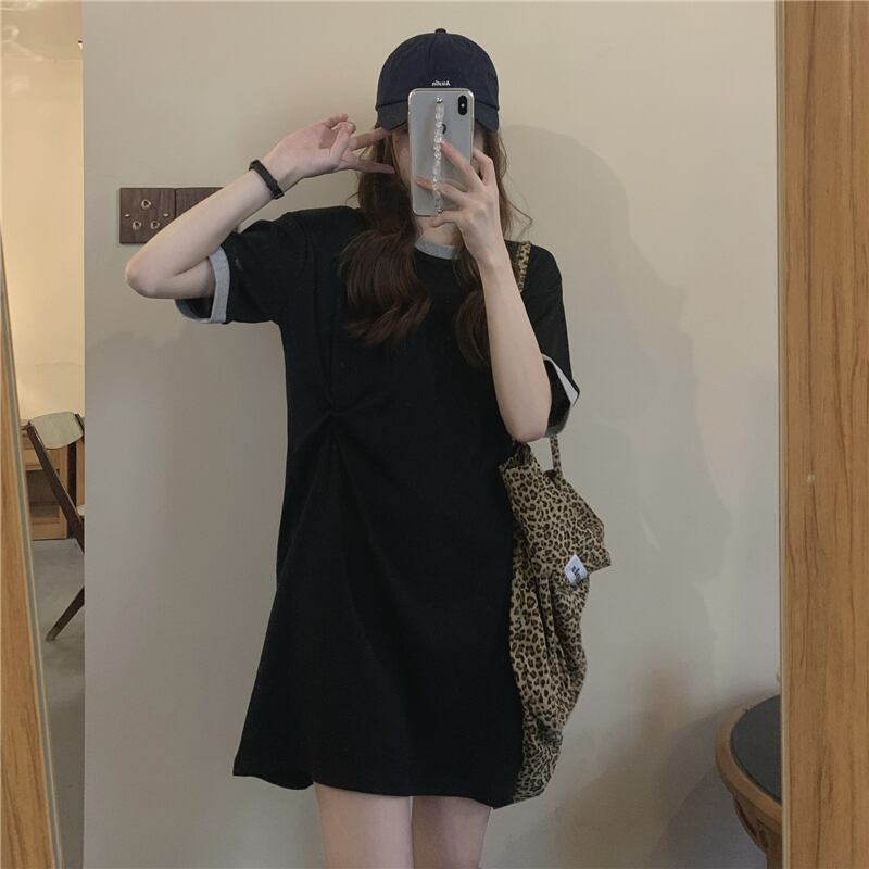 スモールコントラストカラー半袖TシャツスカートレディーススリムAラインスカートラウンドネックワンピースレディース多用途サマーバージョンセンス ショート ハーフスリーブ 夏物 Oネック 7460050448998543 | framboise21