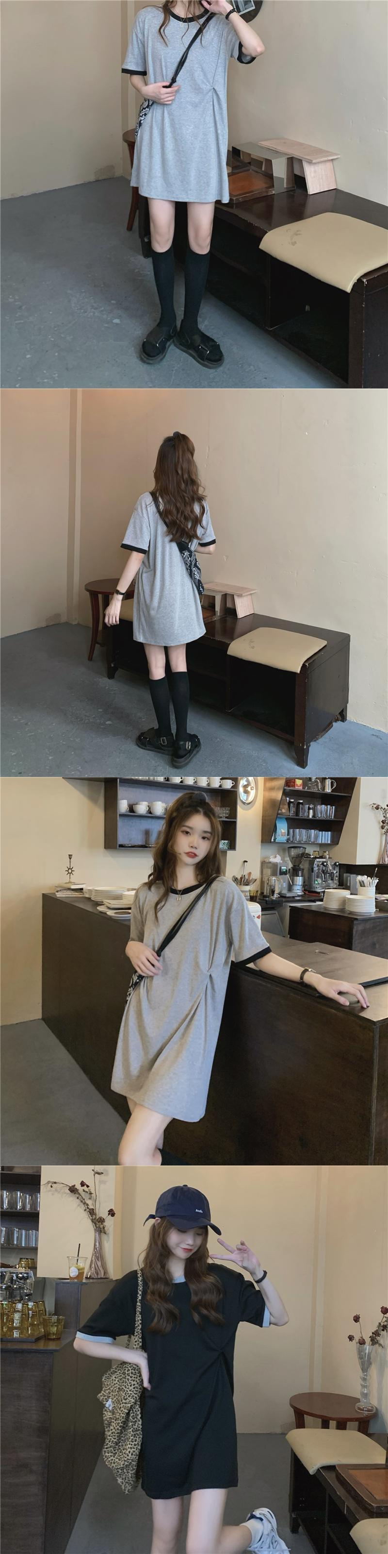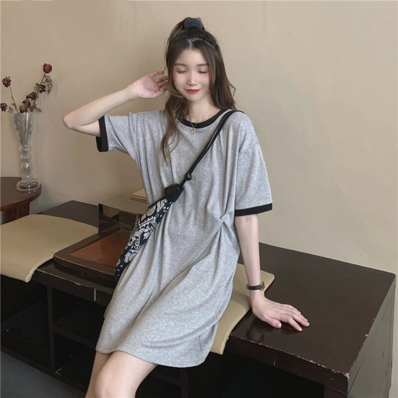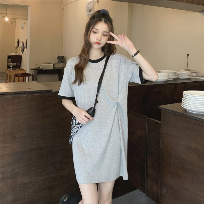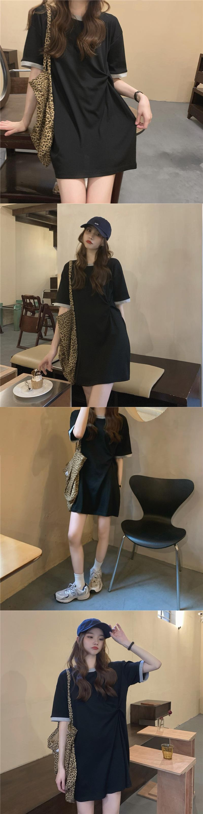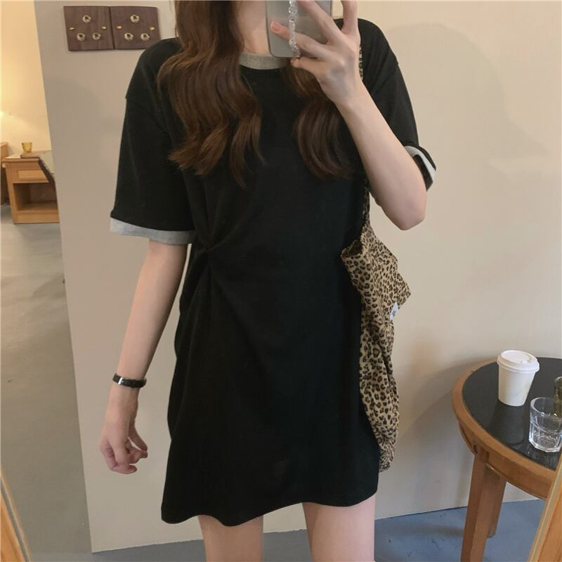 スモールコントラストカラー半袖TシャツスカートレディーススリムAラインスカートラウンドネックワンピースレディース多用途サマーバージョンセンス ショート ハーフスリーブ 夏物 Oネック 7460050448998543 | framboise21