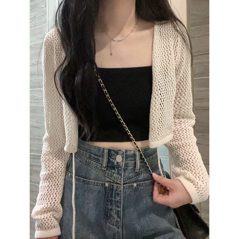 色:黒のショートスリング,白いカーディガン,ブラックカーディガン,アプリコットカーディガン