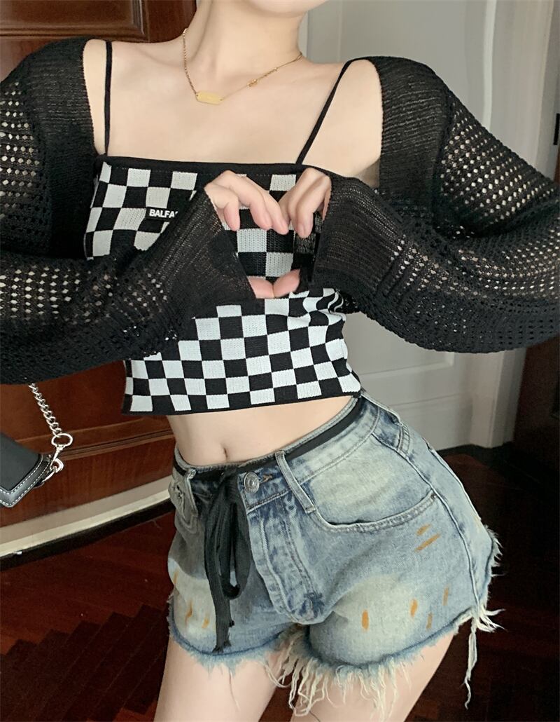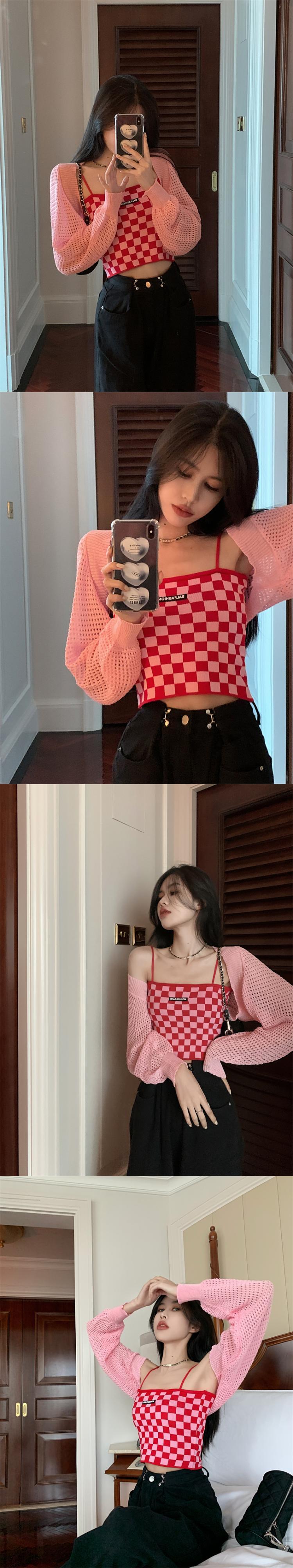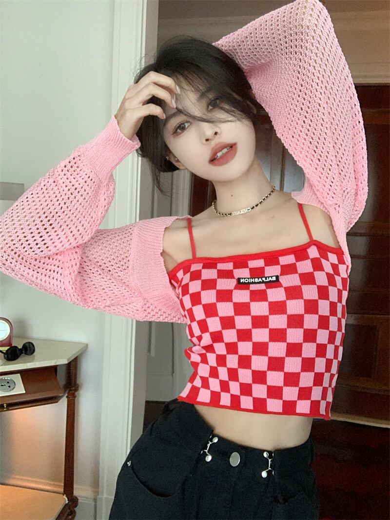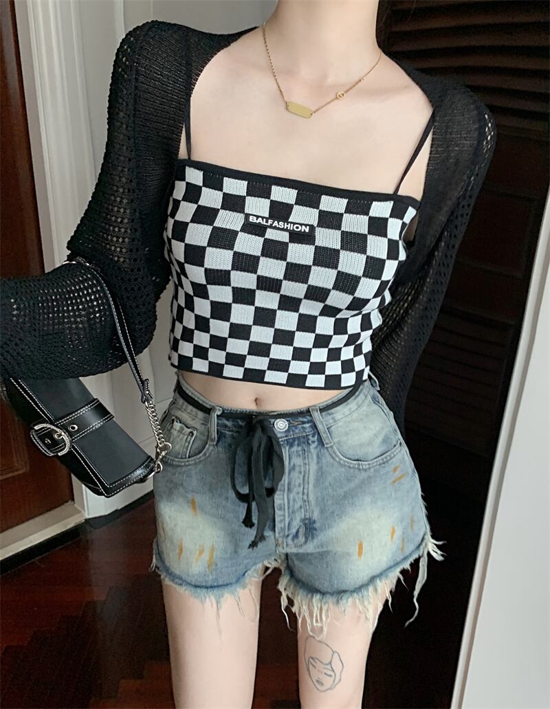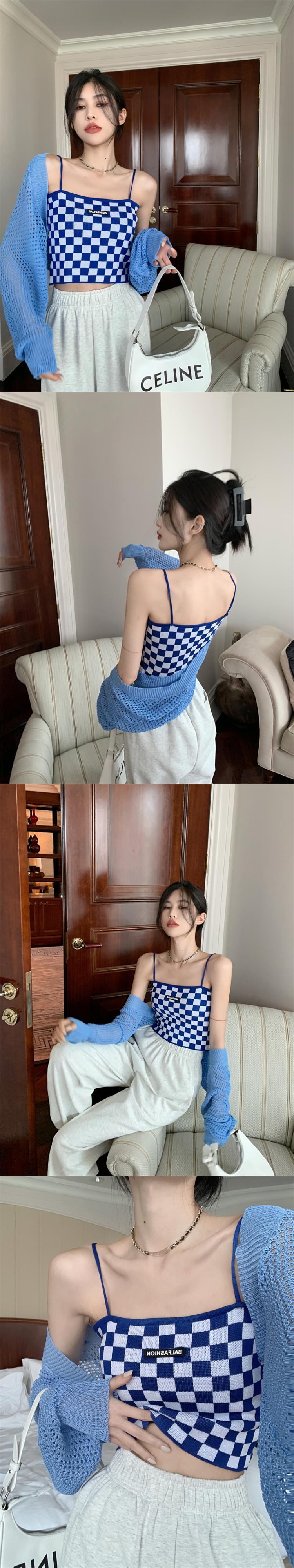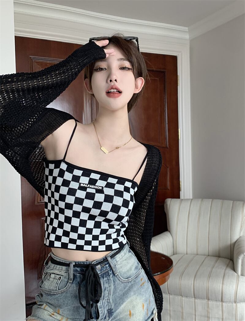 純粋な欲望アイスシルクニット小さなキャミソール女性の夏のアウターウェアチェッカーボード、チューブトップノースリーブトップトレンディ サマー 夏物 7460086394216928 | framboise21