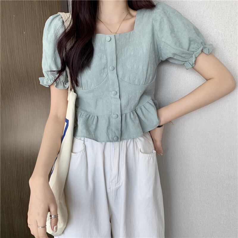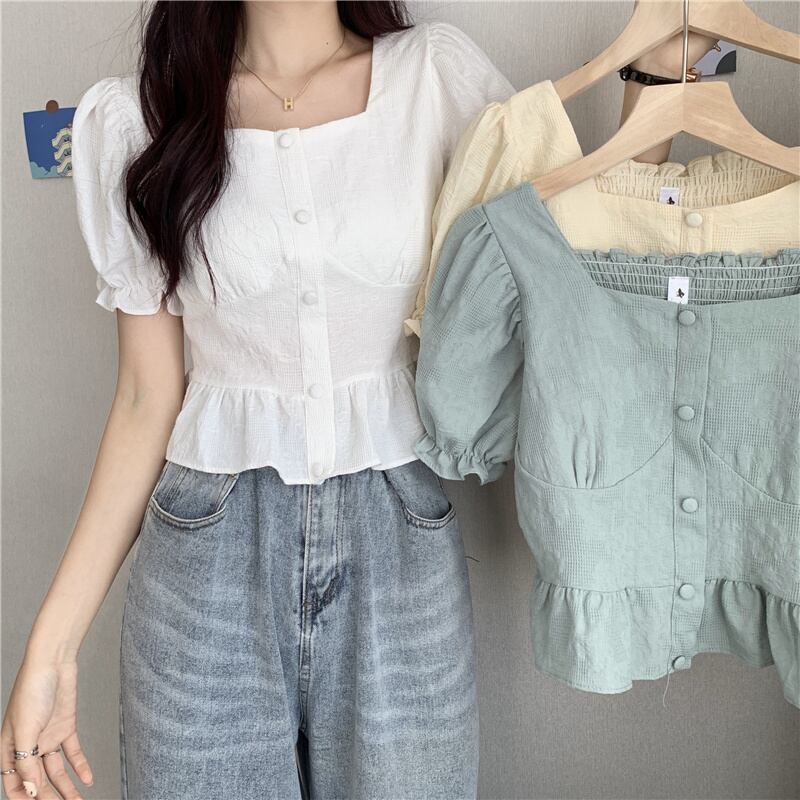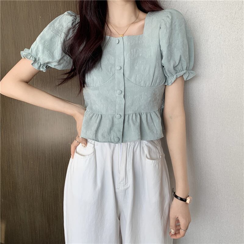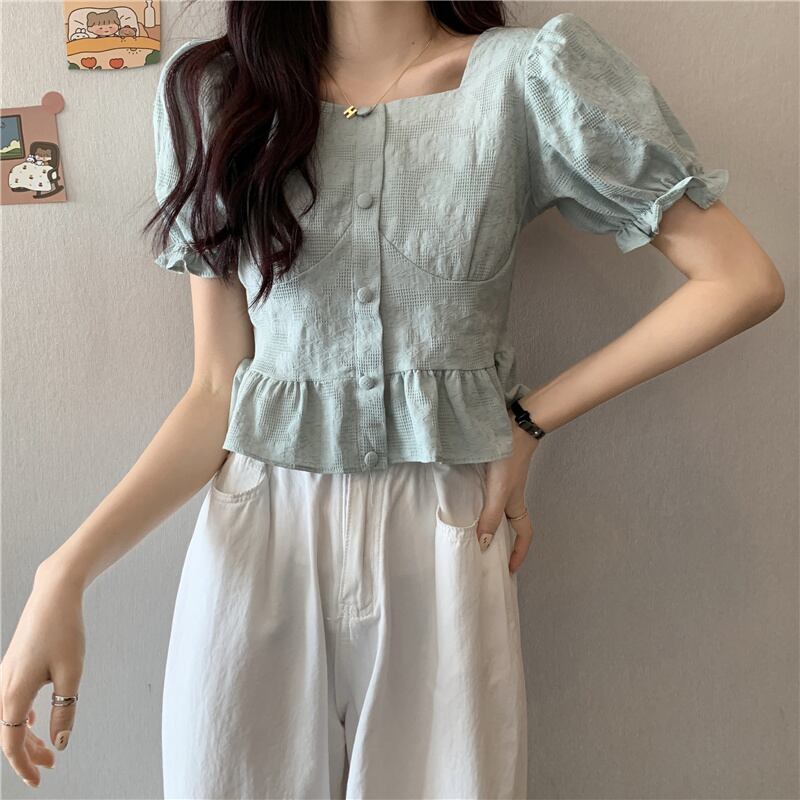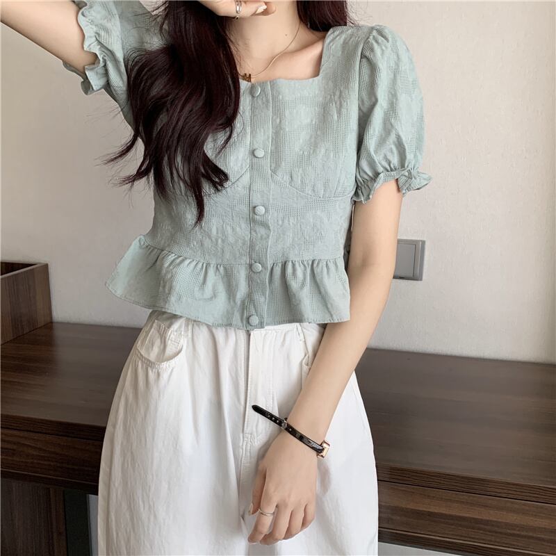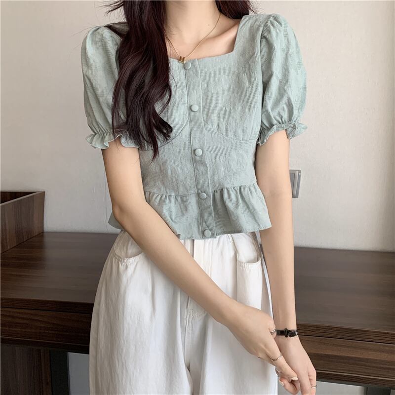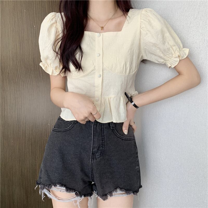 ホワイトフレンチスクエアネックショートシャツレディースサマーパフスリーブハイエンドスモールドールシャツシャツスモールシャツトップ 夏物 スクウェア 7460017783624611 | framboise21