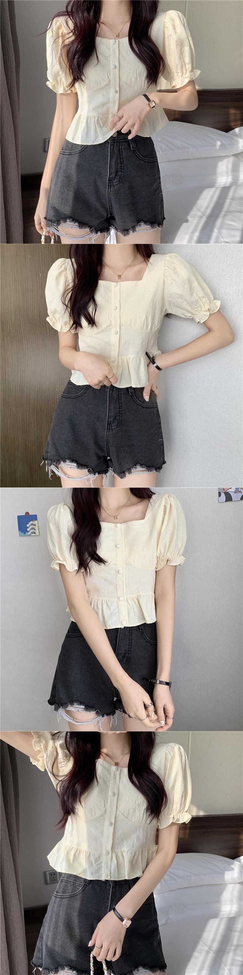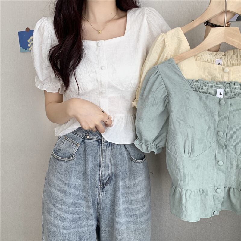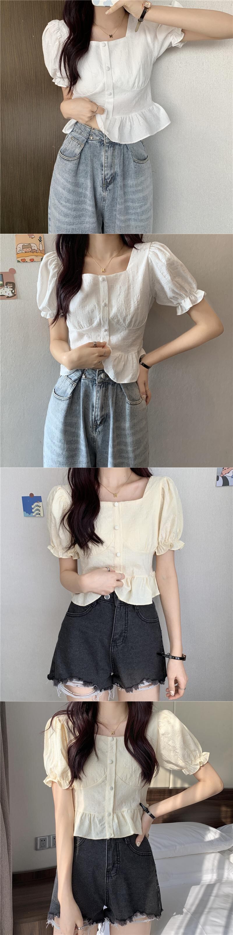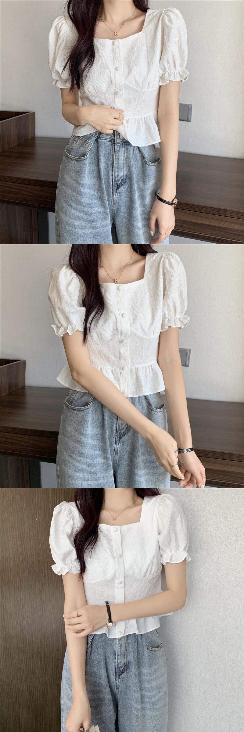 ホワイトフレンチスクエアネックショートシャツレディースサマーパフスリーブハイエンドスモールドールシャツシャツスモールシャツトップ 夏物 スクウェア 7460017783624611 | framboise21