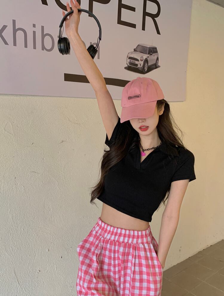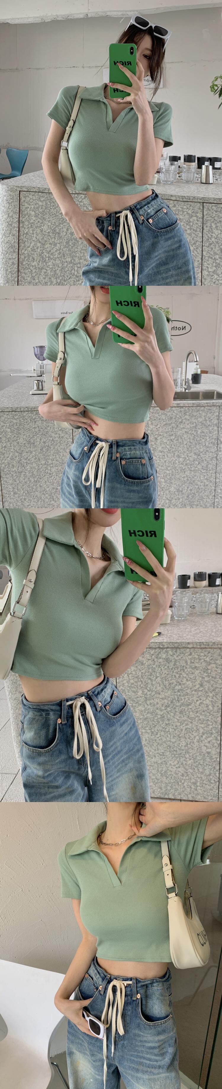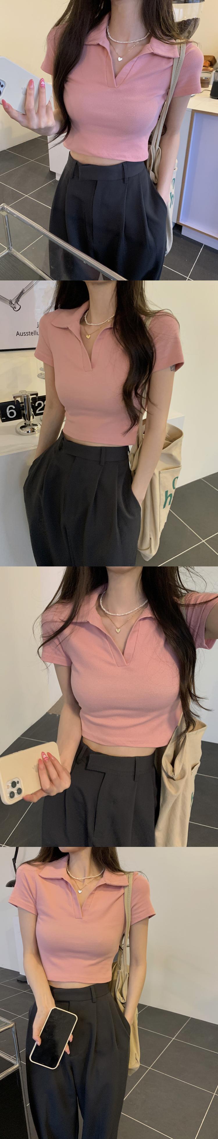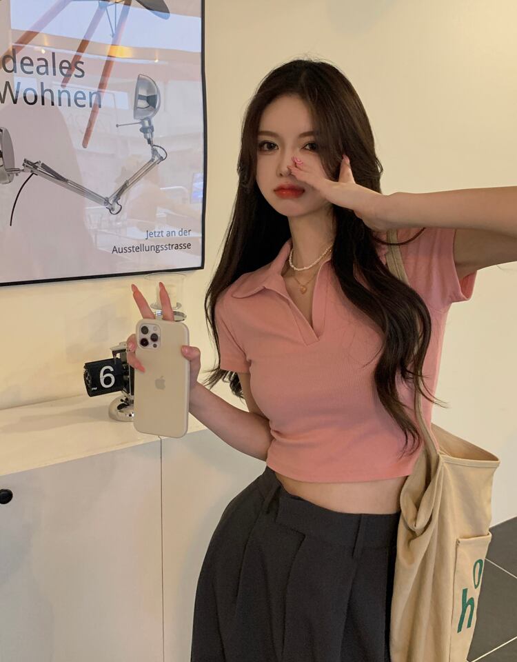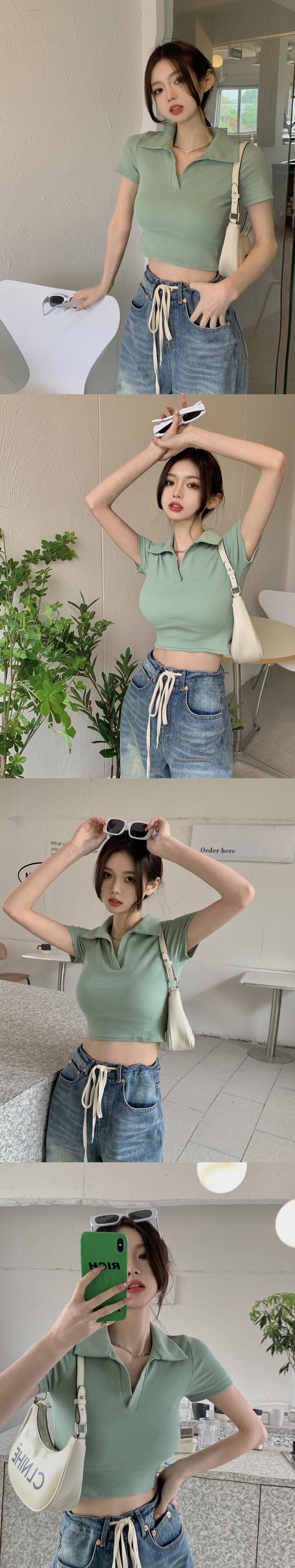 ホットホワイトウエストとおへそポロカラーTシャツレディースデザインセンスフロントショルダー半袖ハイウエストショートbmスタイルトップサマー ハイウェスト ハーフスリーブ 夏物 746006622127166 | framboise21