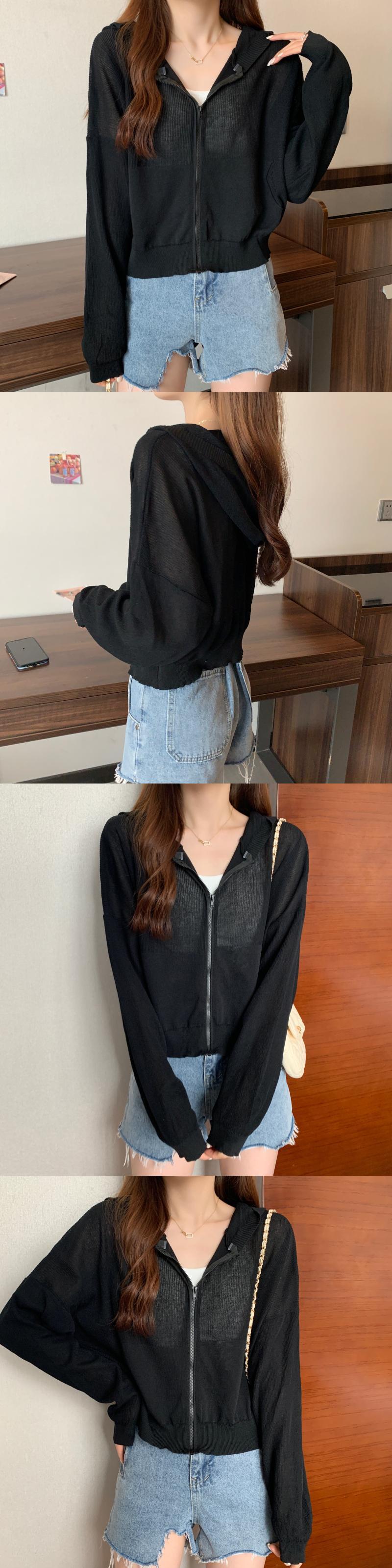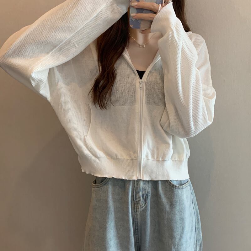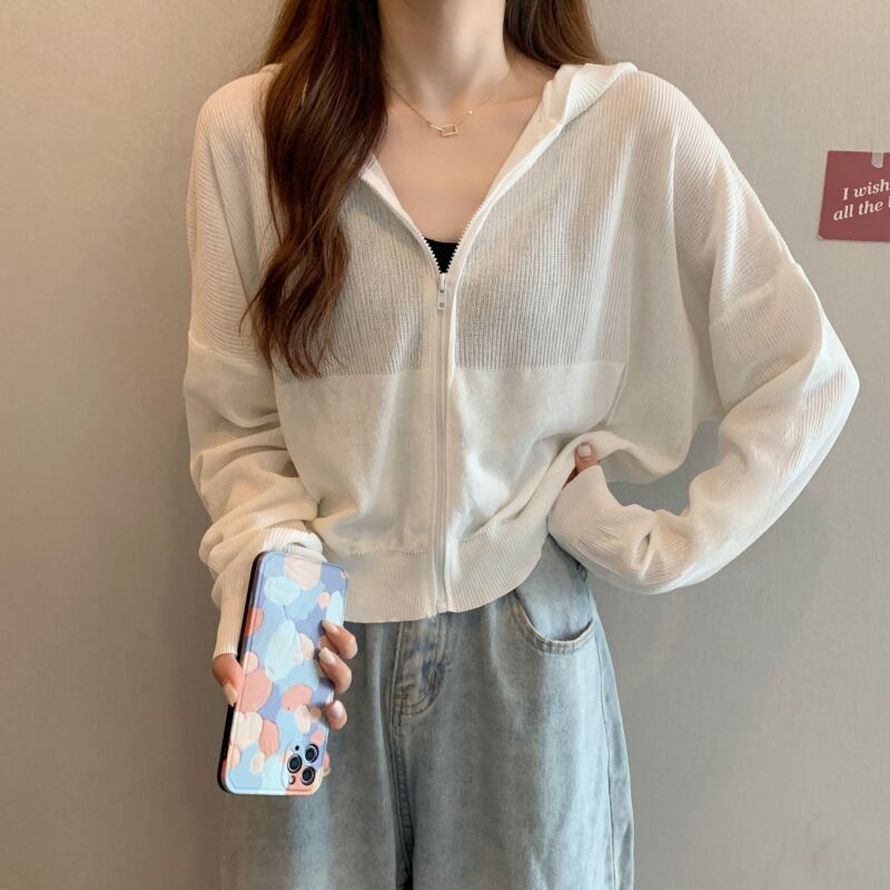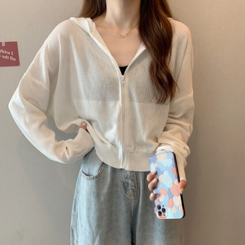 夏のホワイトアイスシルク日焼け止め薄手のニットカーディガン女性のフード付き気質エアコンシャツ長袖ブラウストップコート ロング サマー 夏物 7460040982463855 | framboise21