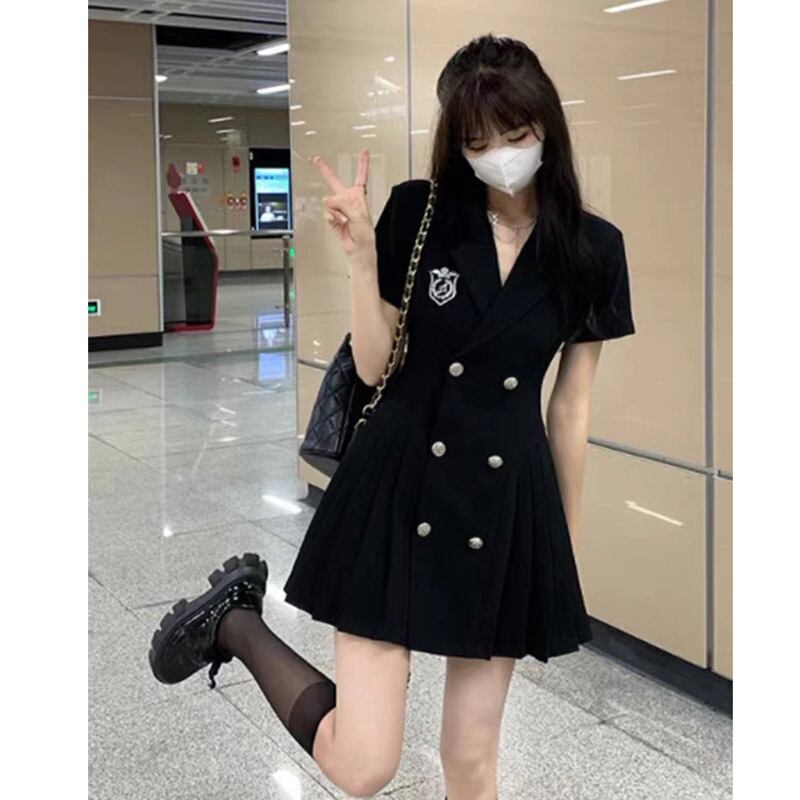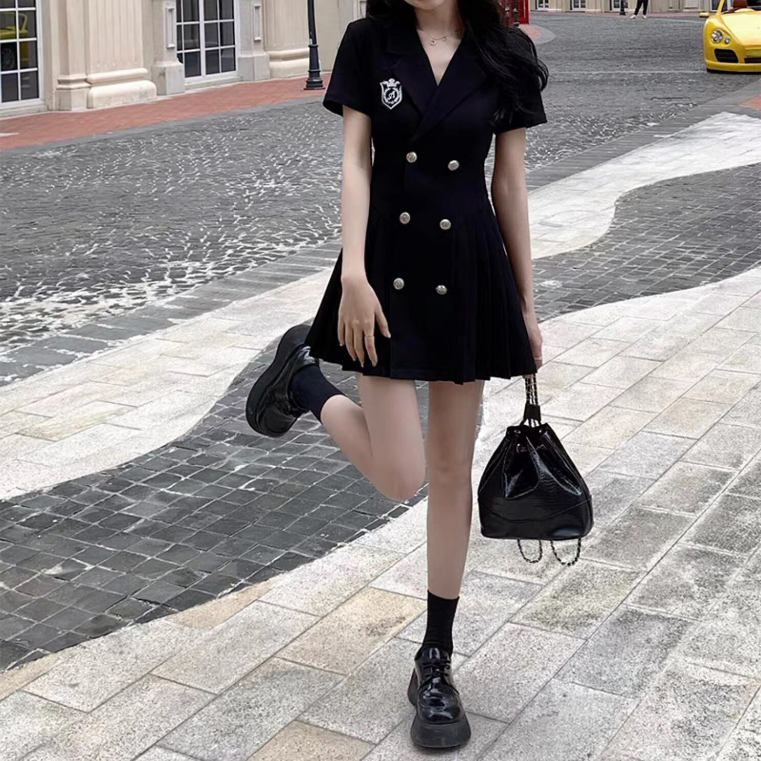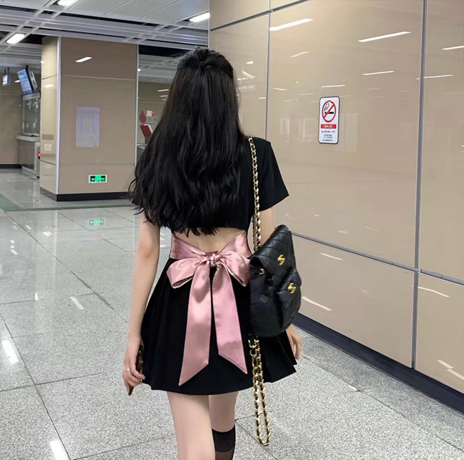 2022年の新しいデザインセンスニッチボウカレッジスタイルの甘くてスパイシーな黒のスーツドレス女性の夏 ブラック リボン 大人ガーリー スウィート キュート カジュアル サマー 夏物 7460084137713974 | framboise21