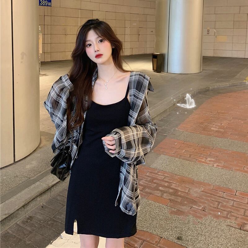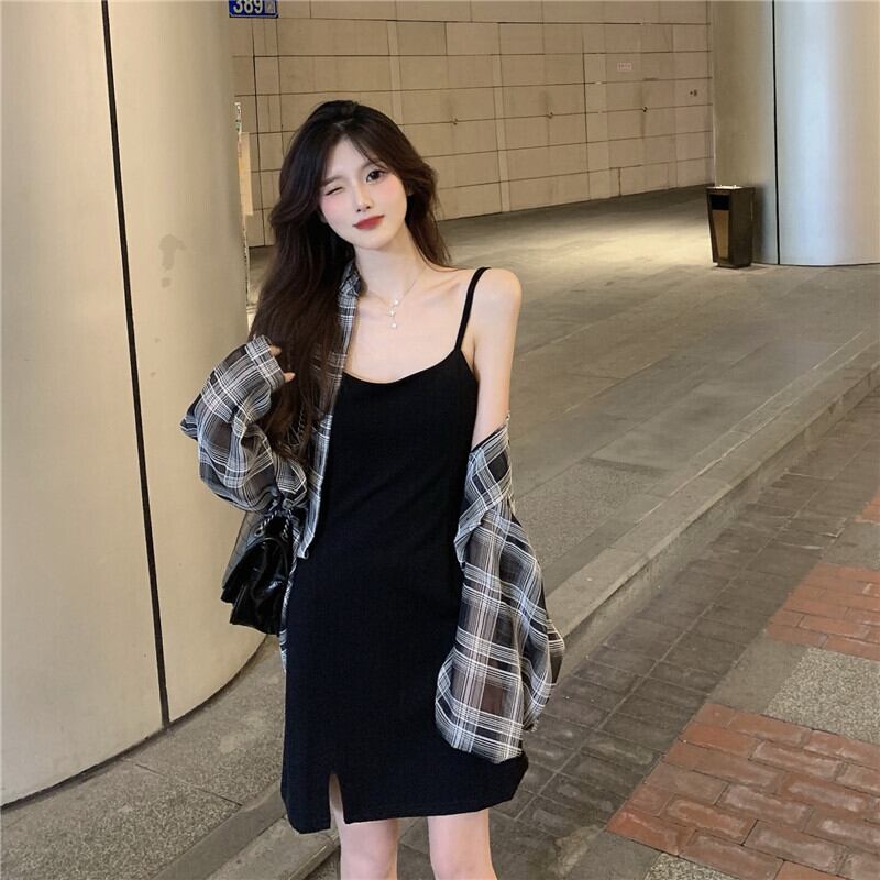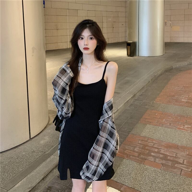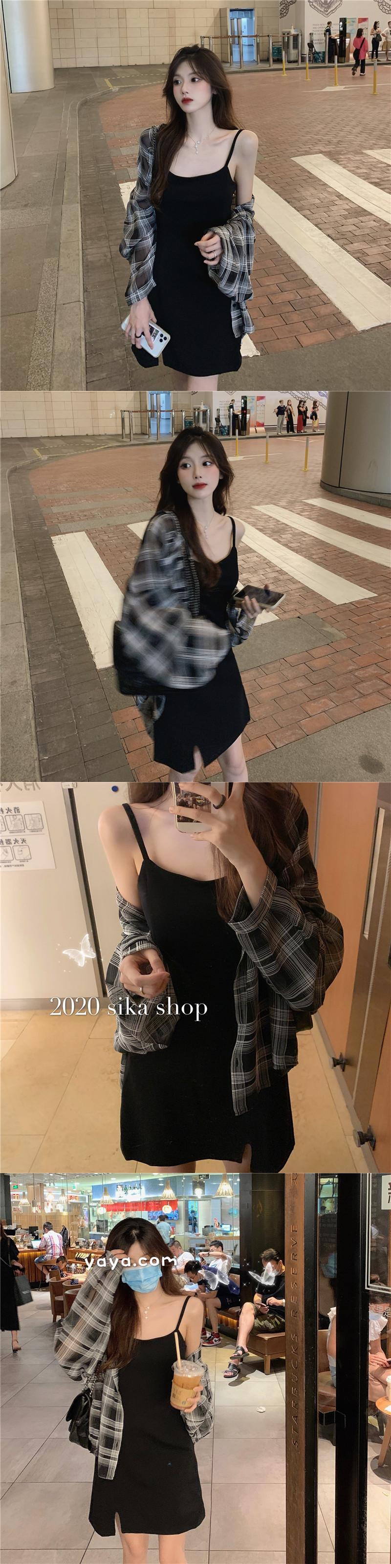 2022年新しい黒のサスペンダースカート気質パッケージヒップ自己栽培ヘップバーンスタイルのドレス小さな黒のスカート女性のボトミング夏 ブラック サマー 夏物 7460034060837627 | framboise21
