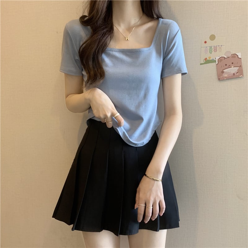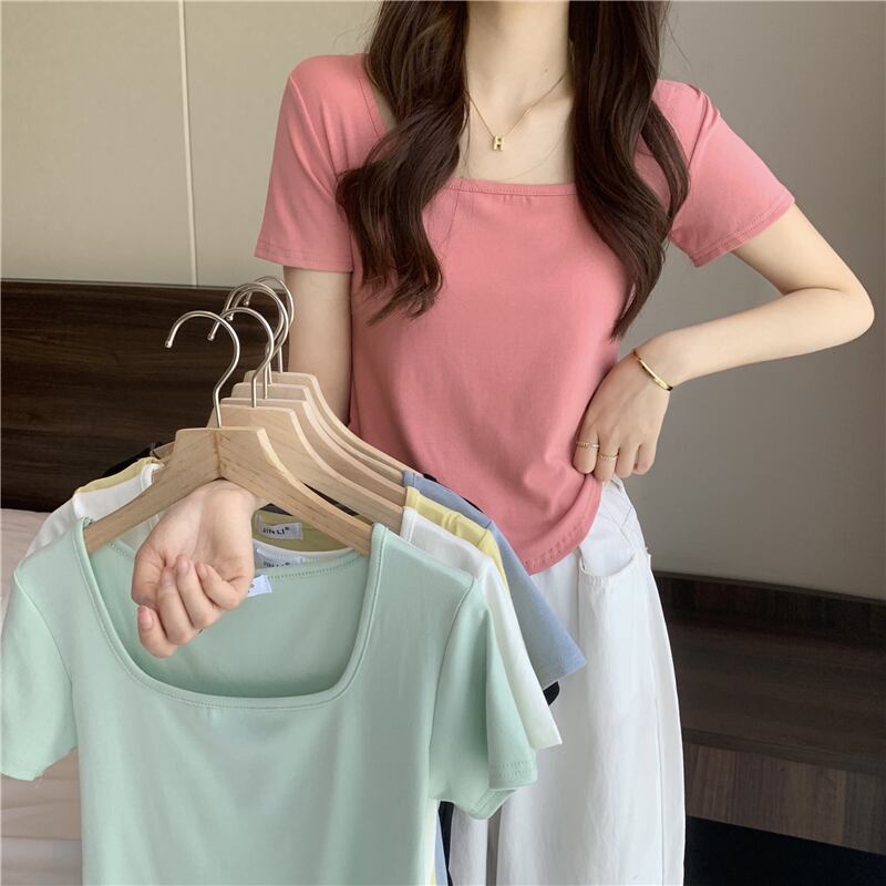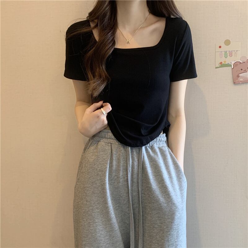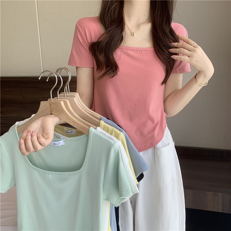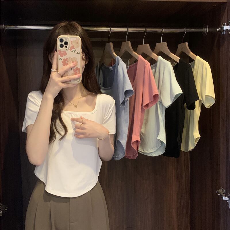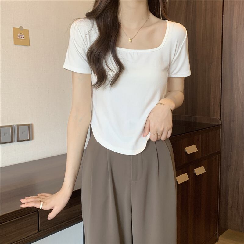 夏のアメリカンホワイト半袖Tシャツレディースデザインセンスニッチボトミングシャツハイエンドセンスフロントショルダータイトトップ サマー 夏物 7460076543272729 | framboise21