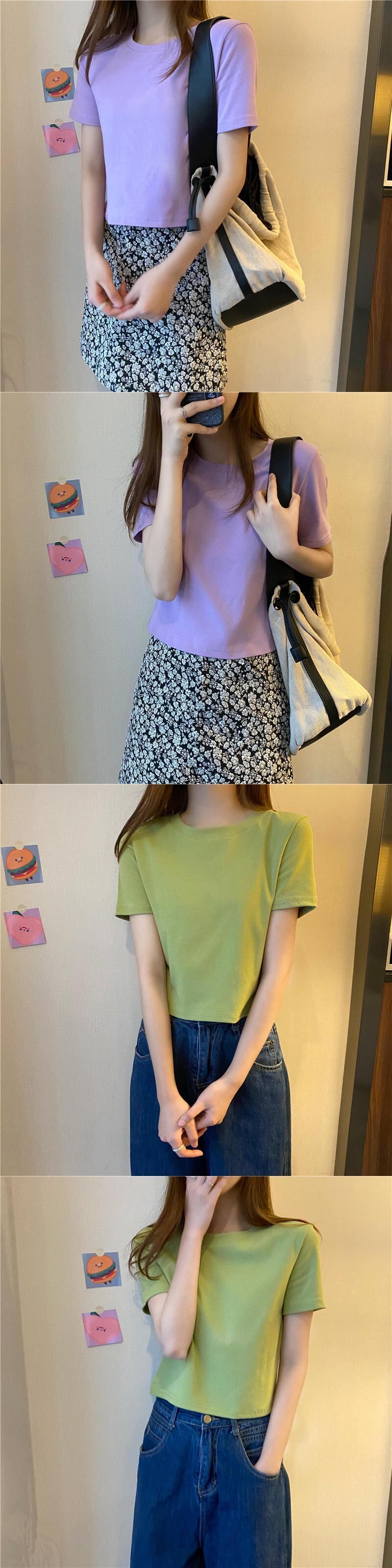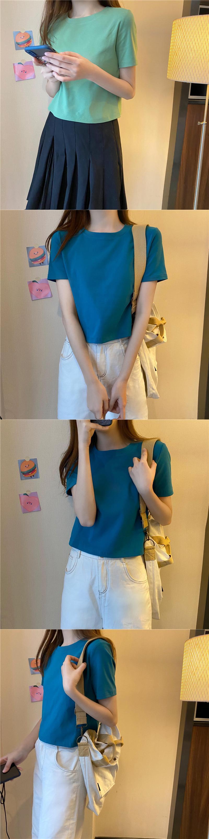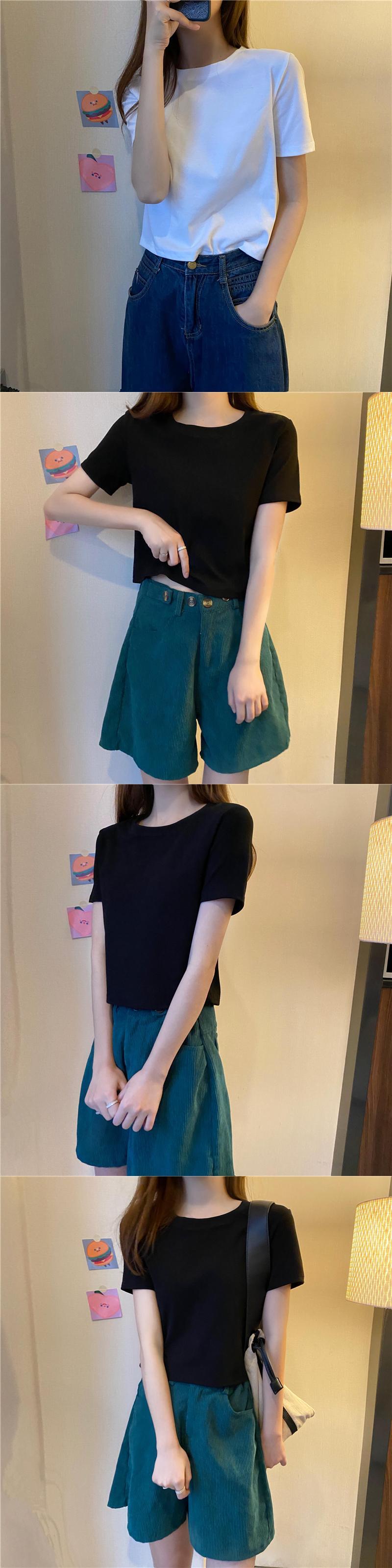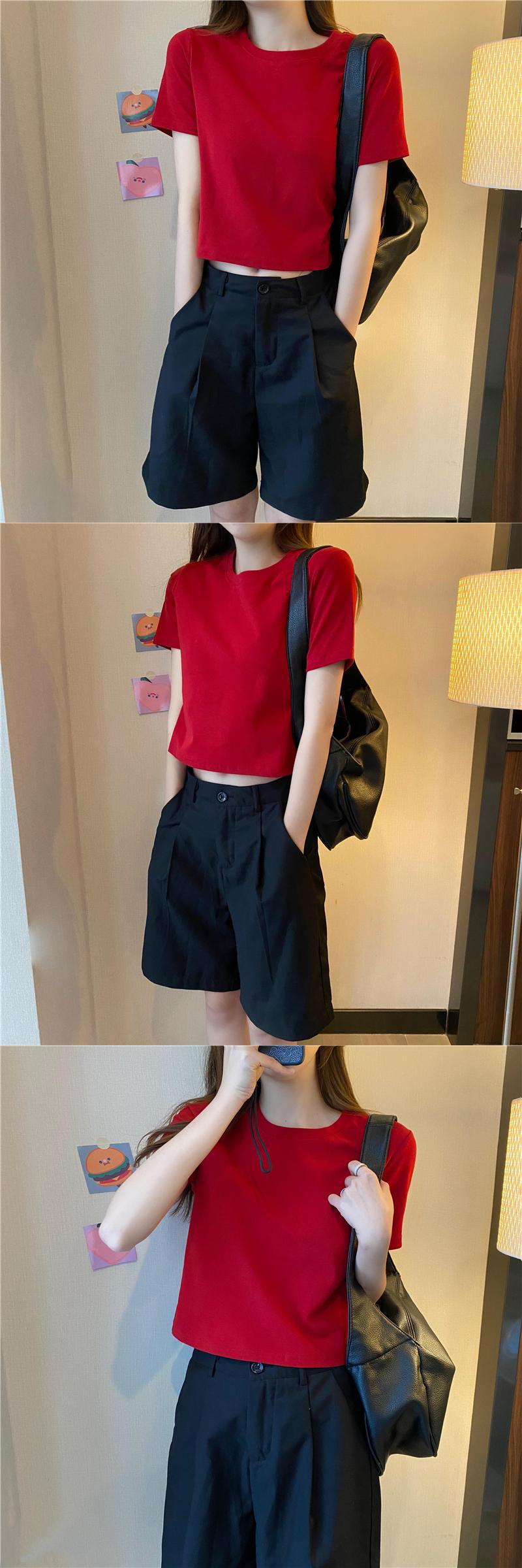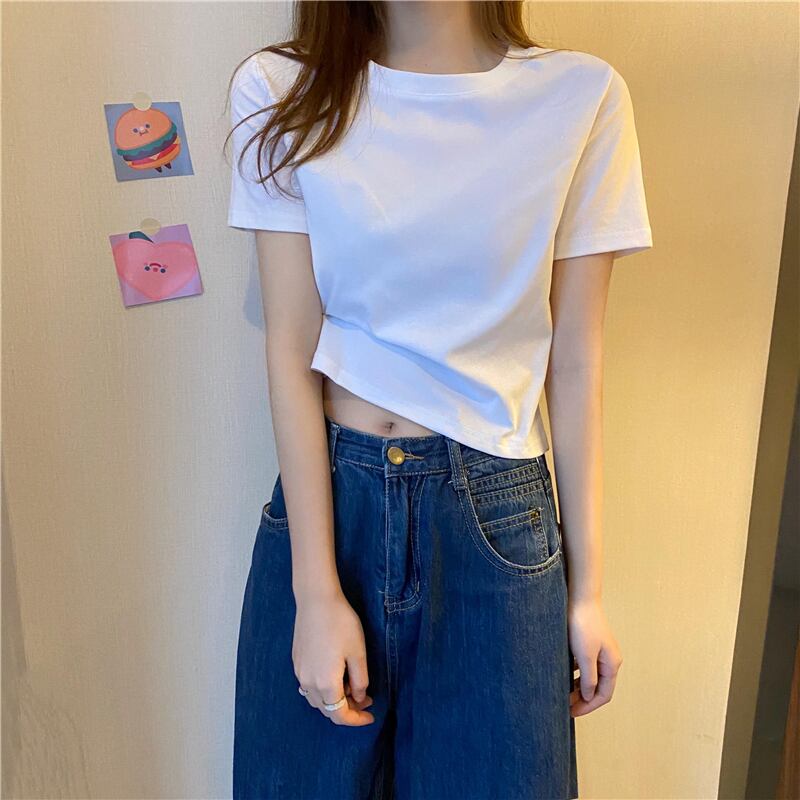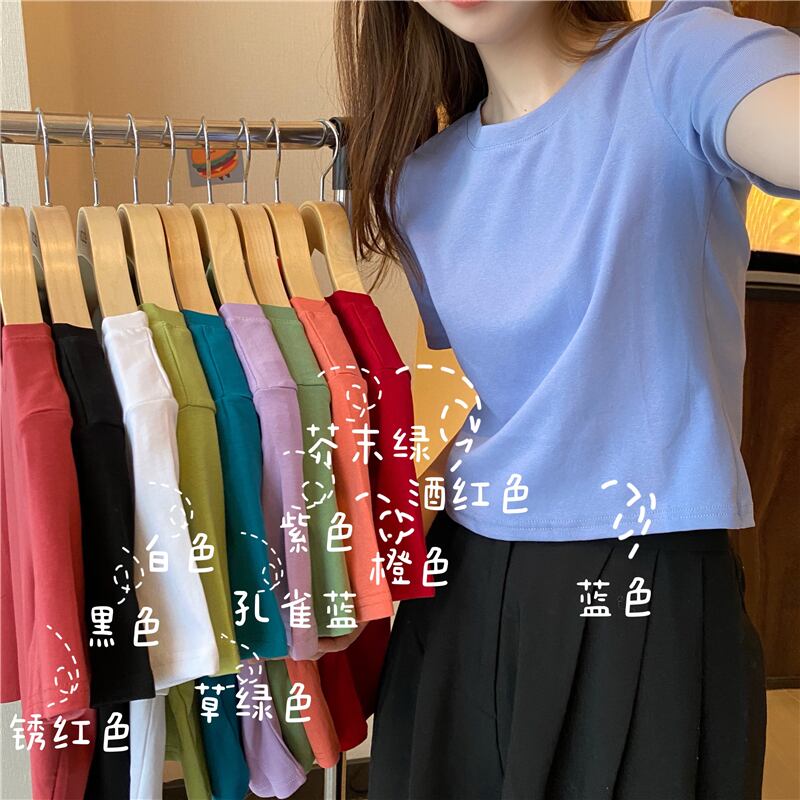 ベーシックなオールマッチ無地Tシャツレディース2022年新作スモールボディスリミングハイウエストおへそショルダー半袖トップス ソリッドカラー 7460075435059975 | framboise21