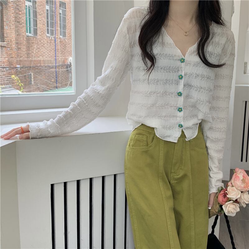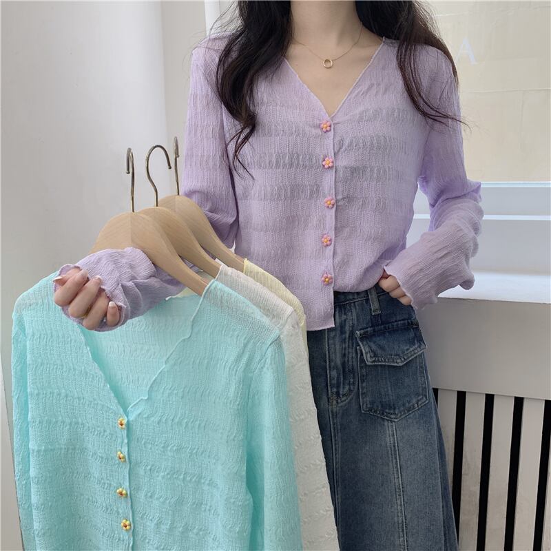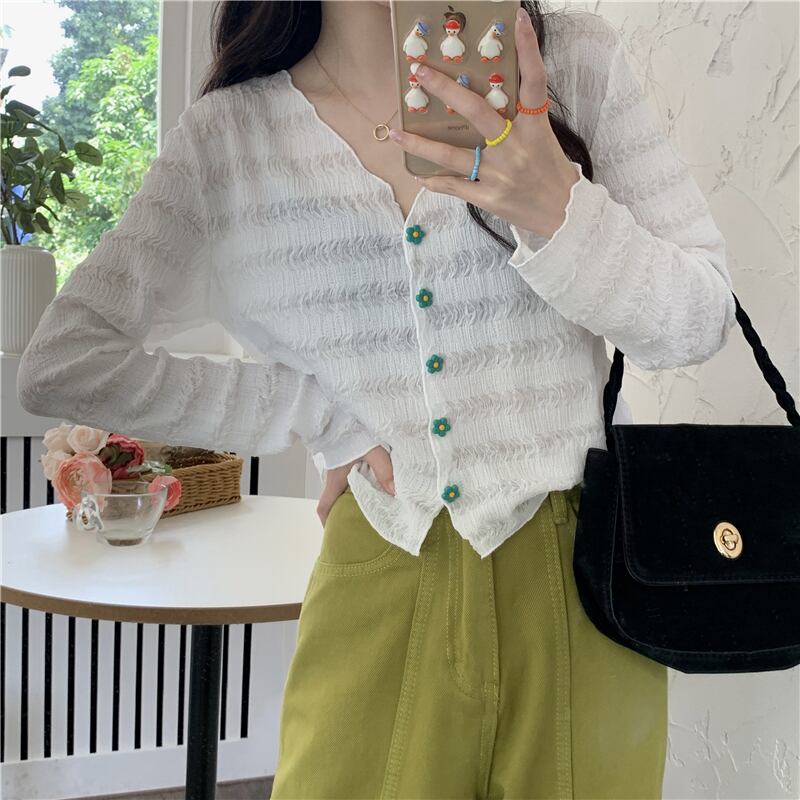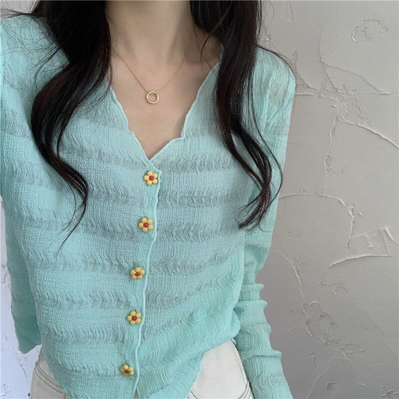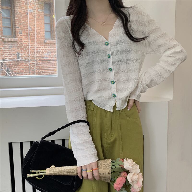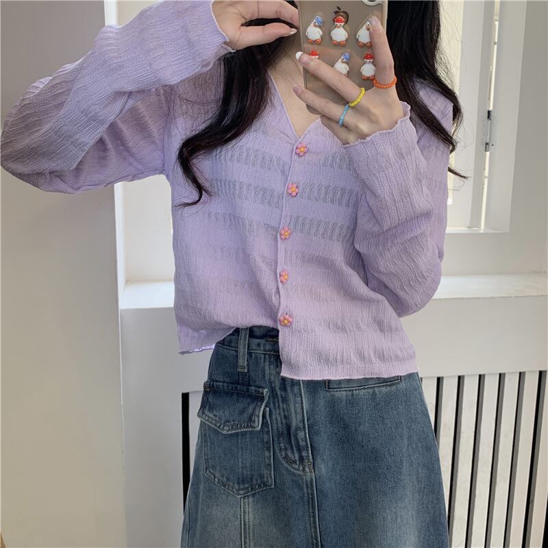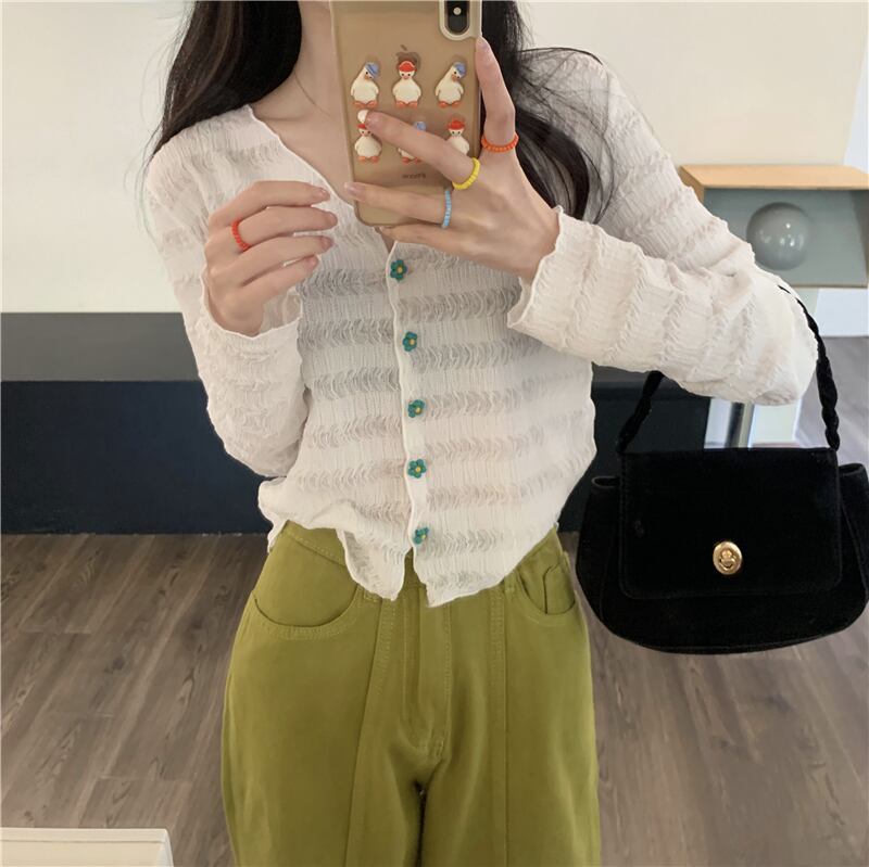 Vネックサンスクリーンカーディガンサマーシンコート通気性ショート長袖アイスシルクニットトップレディースアウターエアコンシャツ ロング 夏物 7460029220136410 | framboise21
