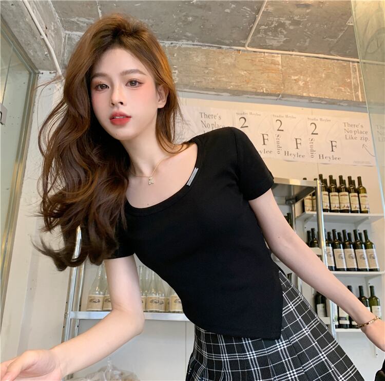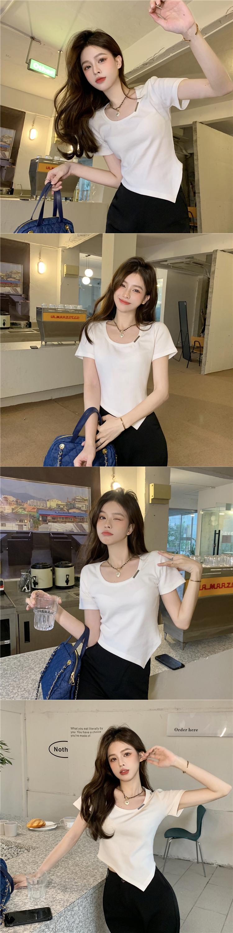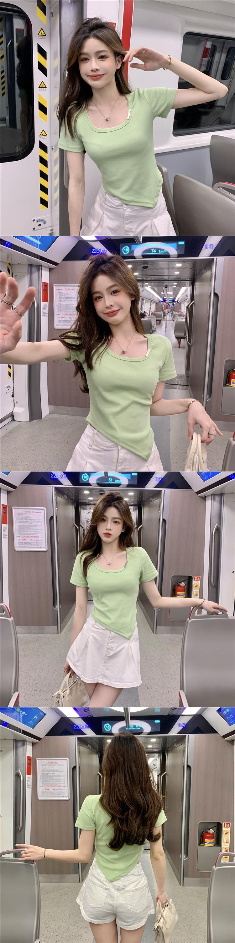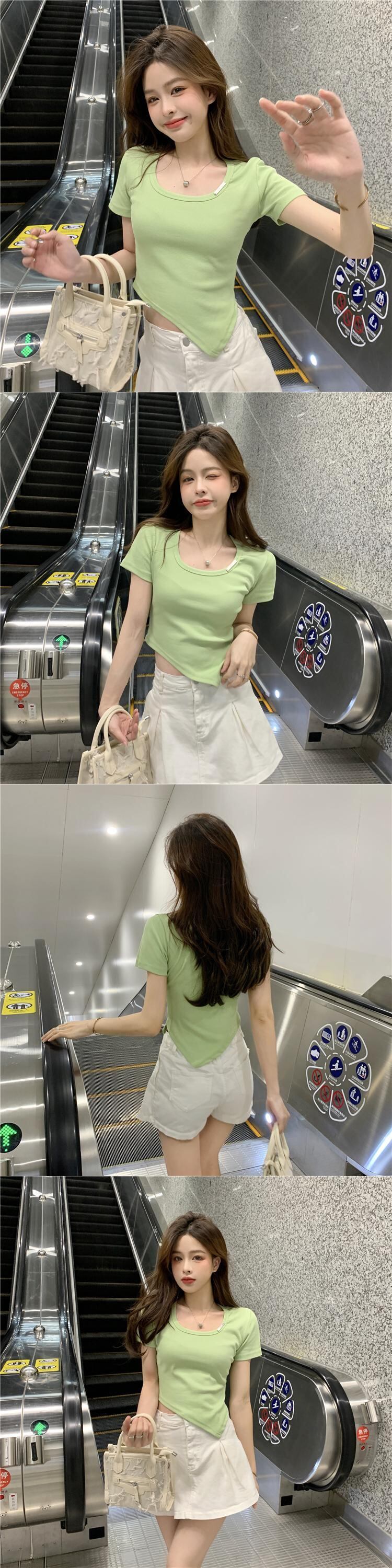 無地の半袖アイスシルクTシャツレディースショートセクションは薄くて不規則なデザインセンス夏の甘くてスパイシーなスタイルのシックなトップインタイド 大人ガーリー スウィート キュート カジュアル サマー 夏物 ソリッドカラー 7460059574244580 | framboise21