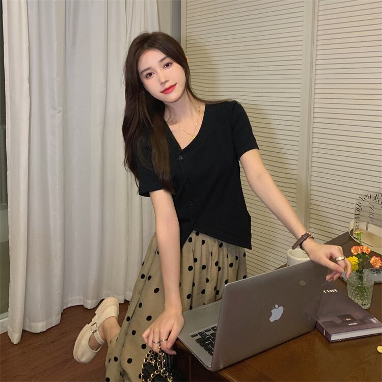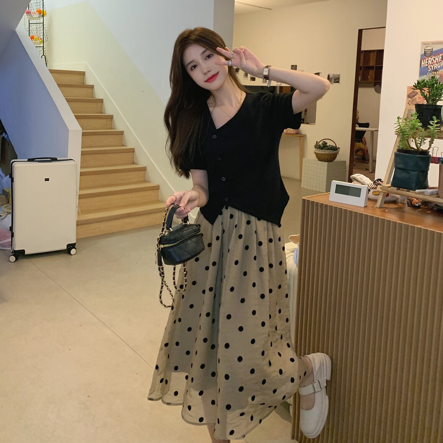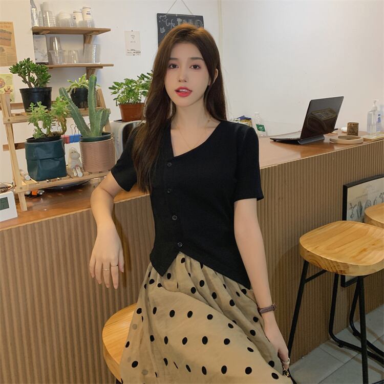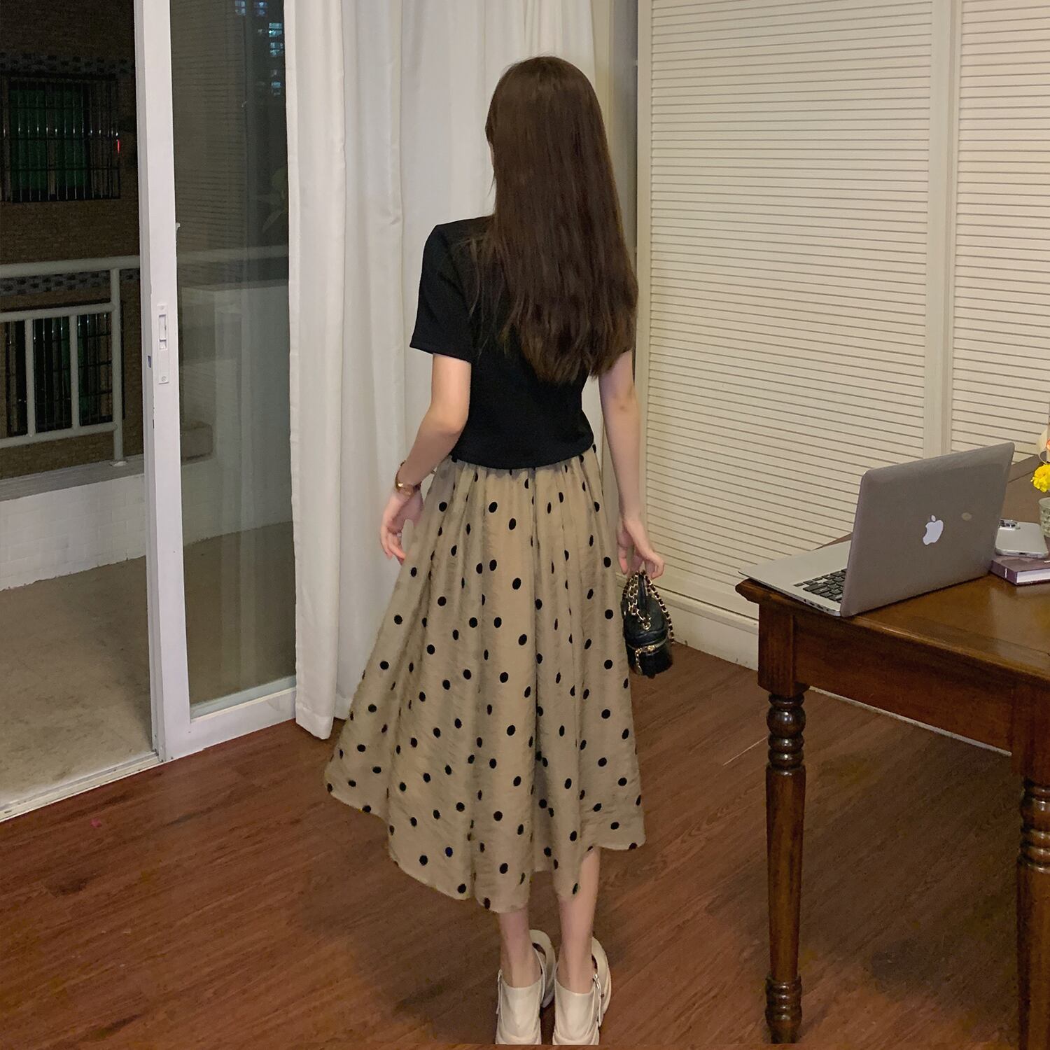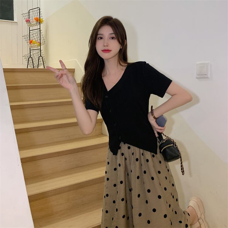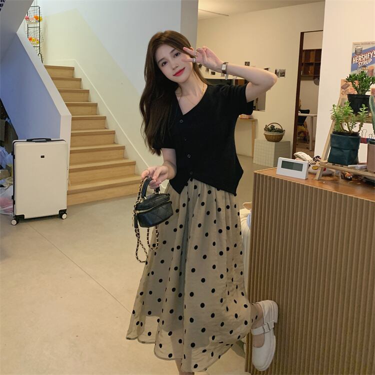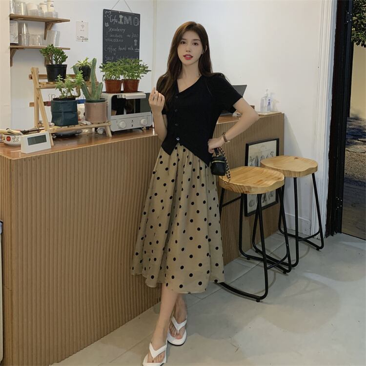 色:黒いTシャツ,水玉スカート
