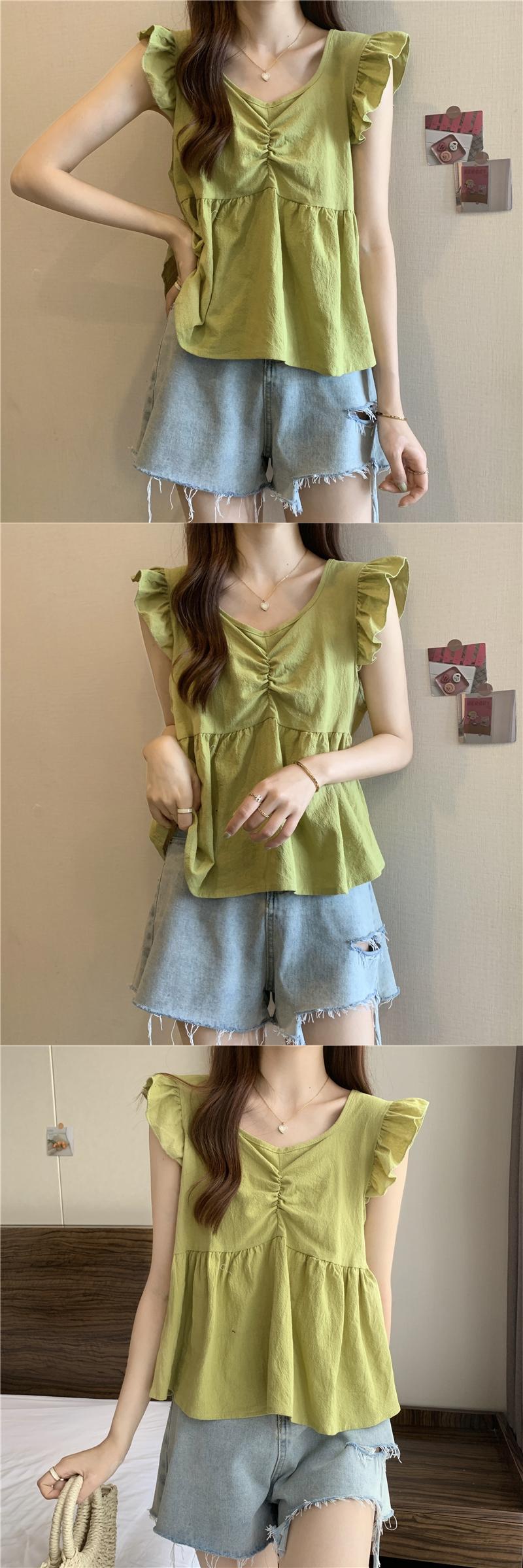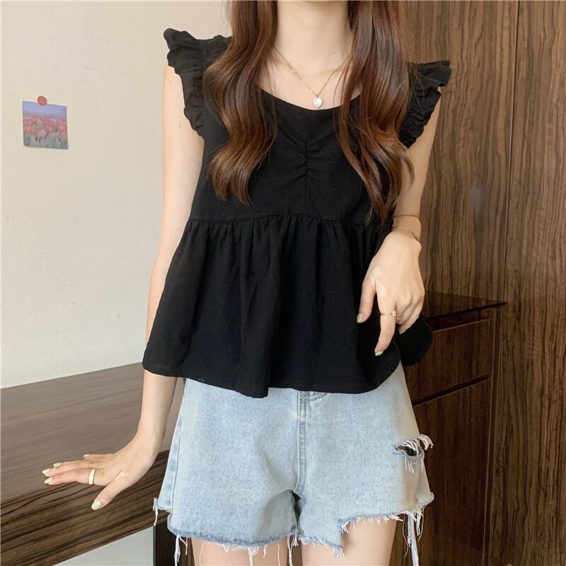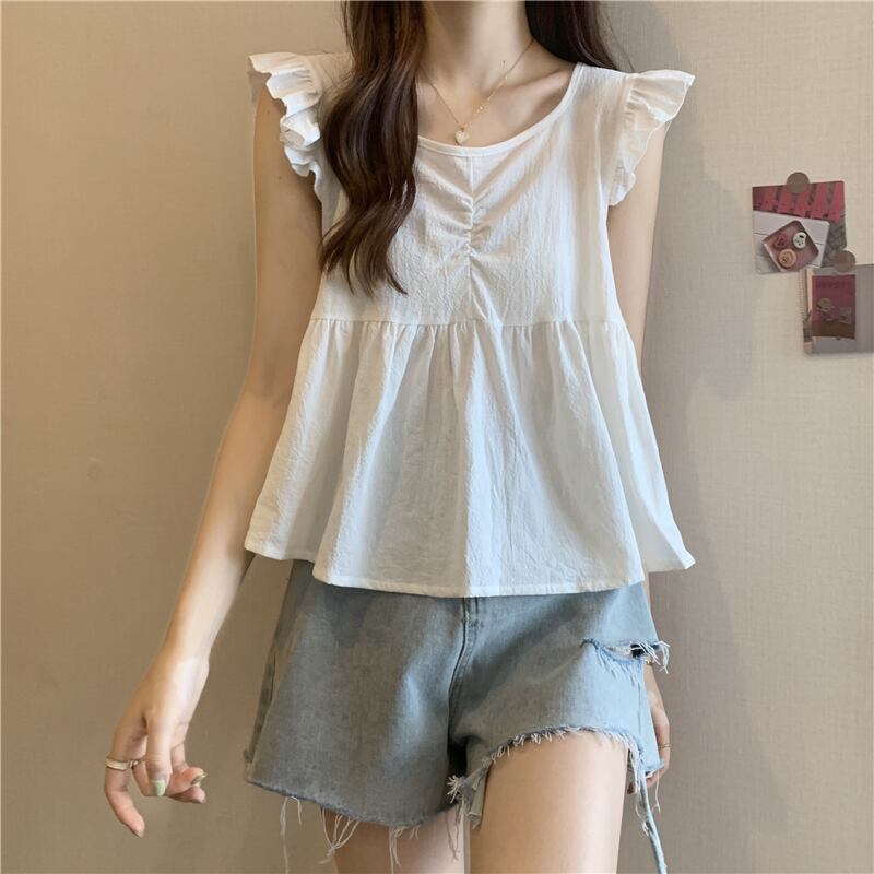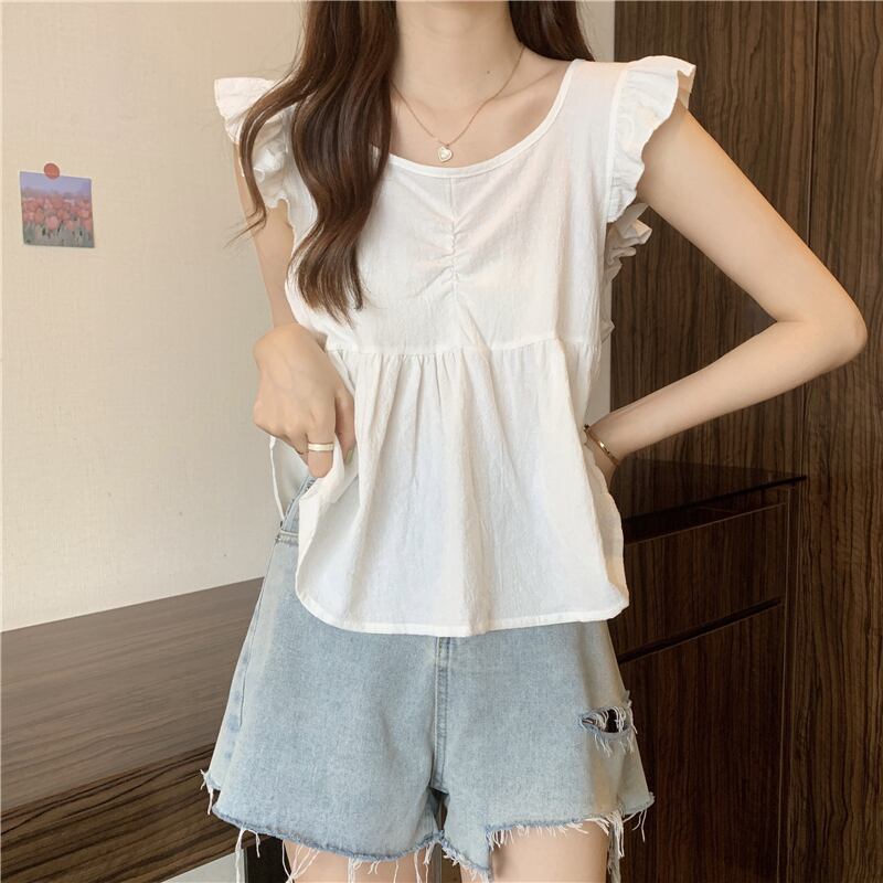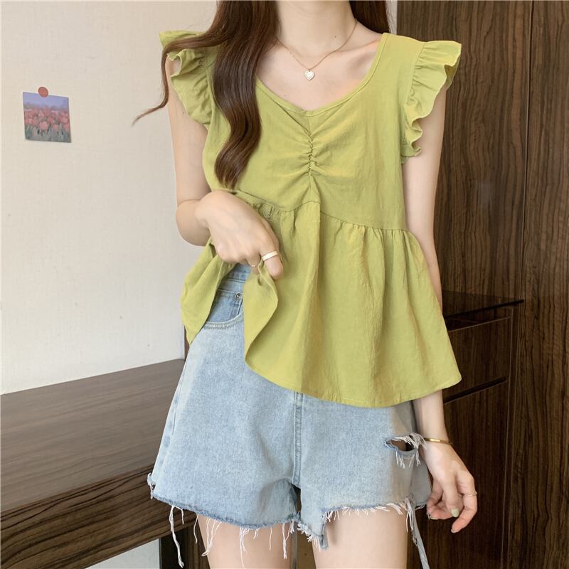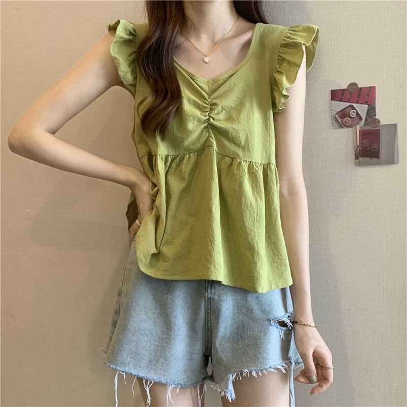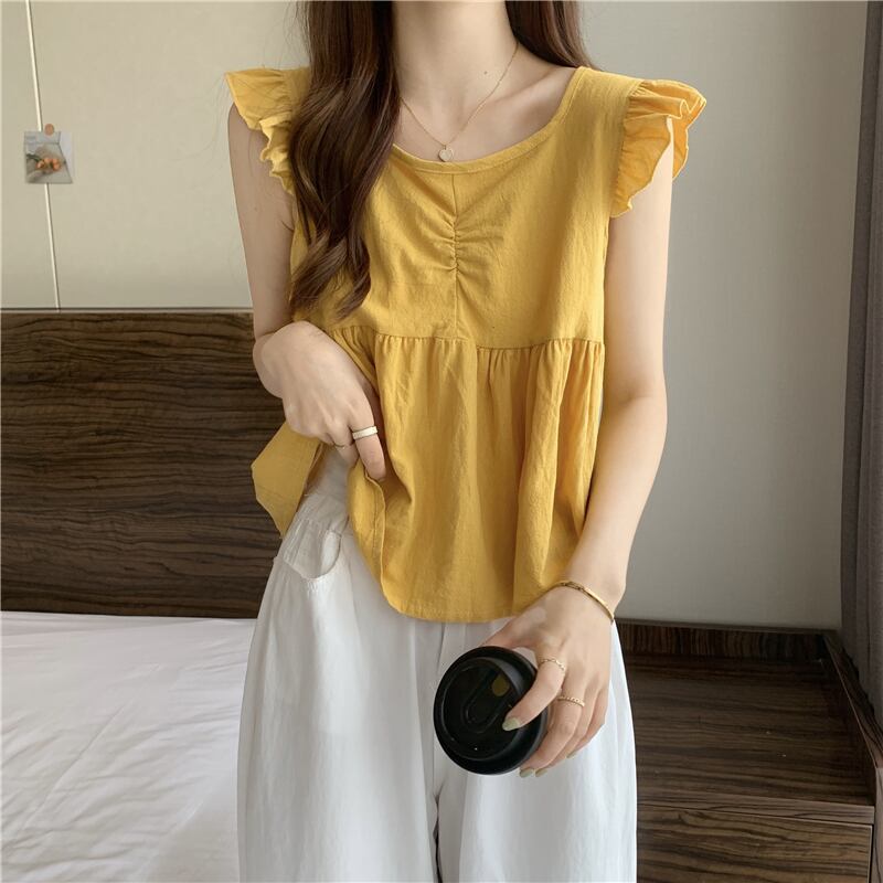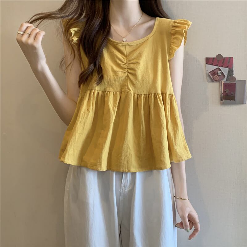 ベビーシャツノースリーブレディースサマーフレンチスクエアカラースモールフライングスリーブデザインセンスニッチな個性的なスペシャルスモールショートトップ 夏物 スクウェア 7460067370345169 | framboise21