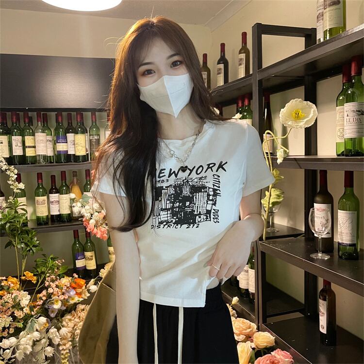 不規則な半袖Tシャツの女性の2022年夏の新しいスリムフィットとハイウエストワイドレッグパンツを備えた薄いショートシックトップ サマー 夏物 7460063621373687 | framboise21