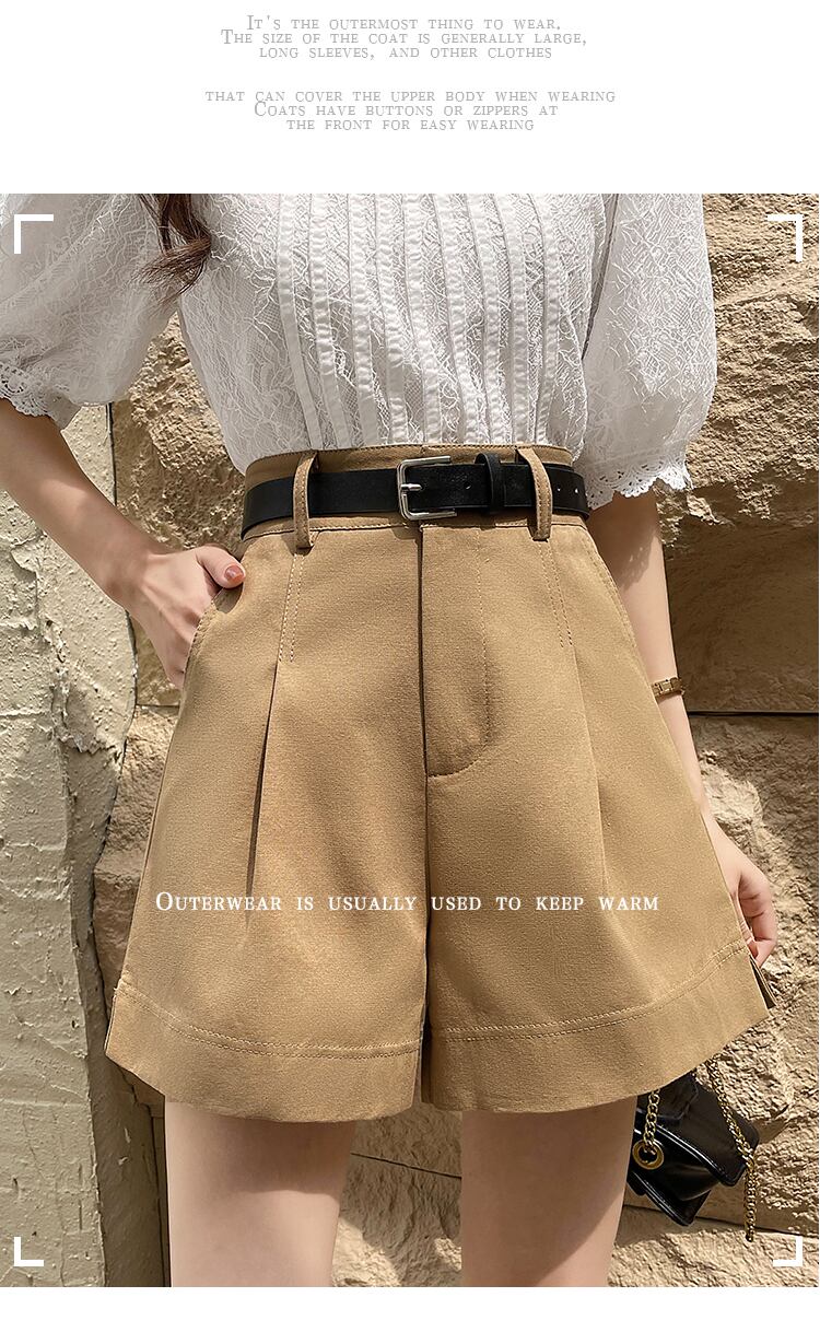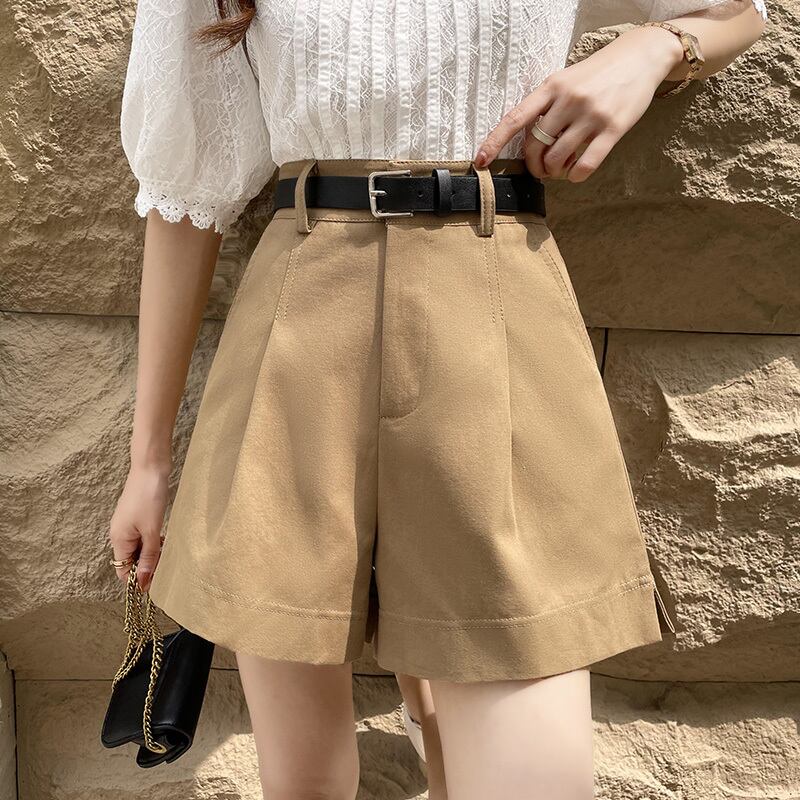 カーキツーリングデニムショーツレディースサマースモールトールウエストは細めのラインワイドレッグパンツカジュアルスーツパンツ 夏物 ブルマー Aライン 7460072870936538 | framboise21