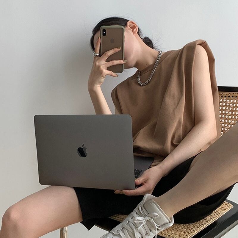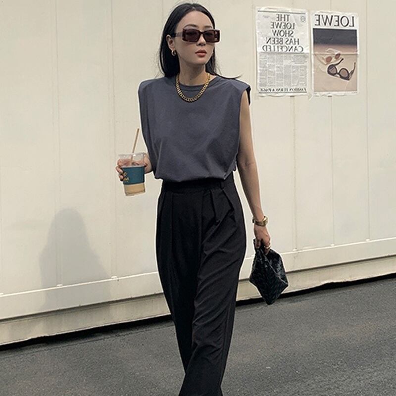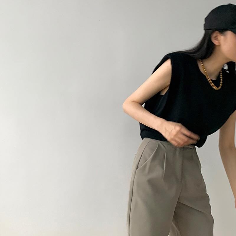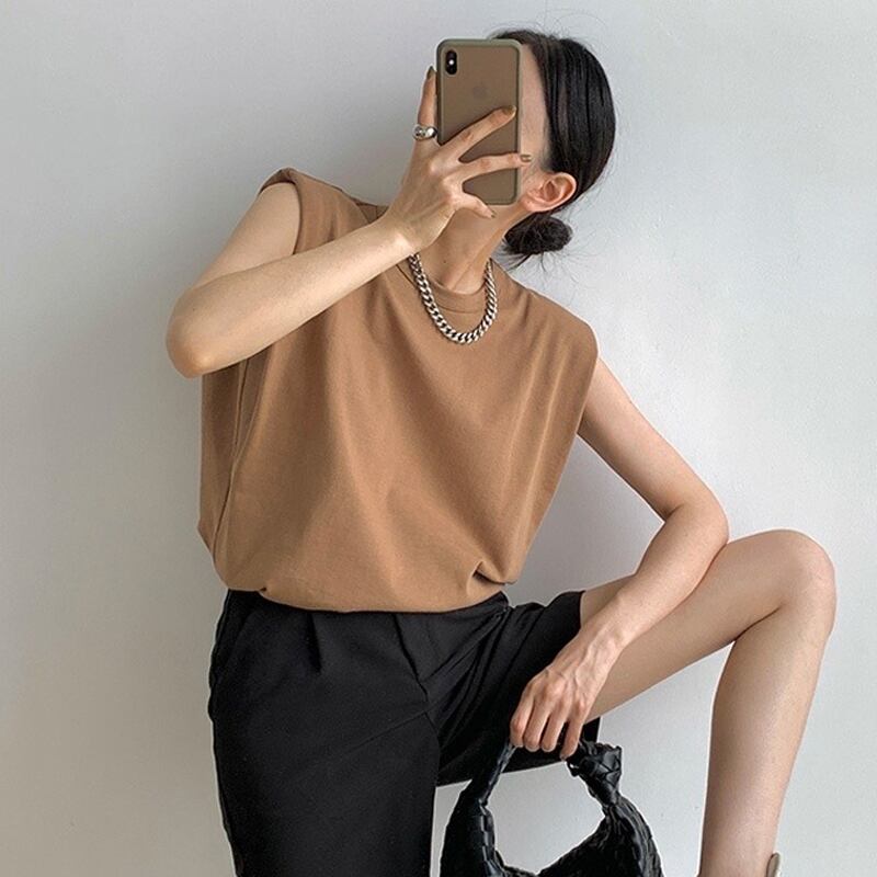 黒のノースリーブベスト女性の夏のアウターウェア薄いデザインのベストルーズTシャツ純粋な欲望スタイルのニッチシックなトップ ブラック サマー 夏物 ピュア 7460086495173165 | framboise21