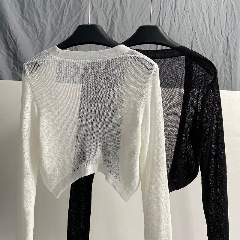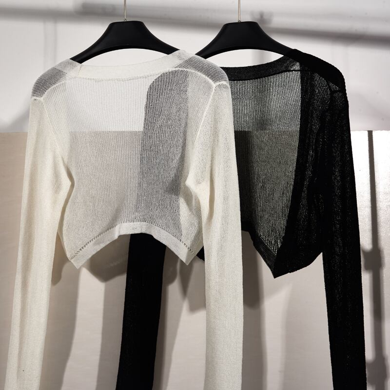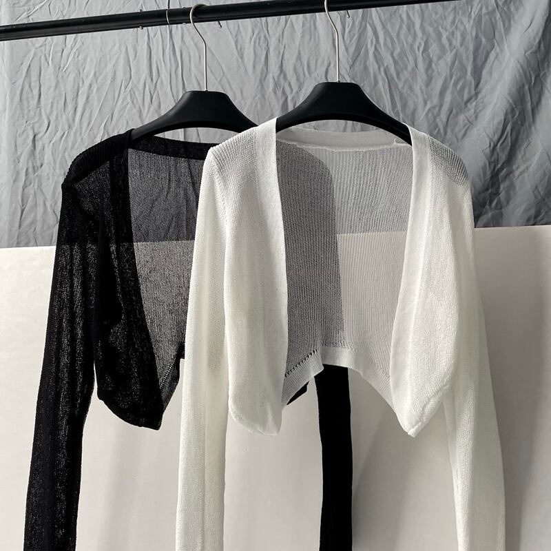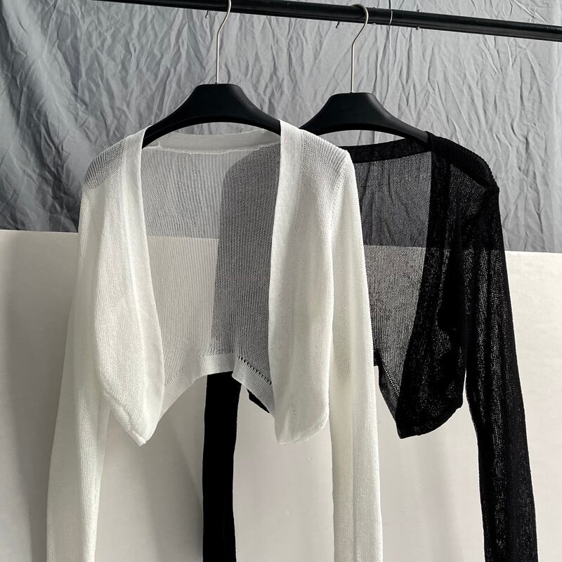 薄手のニットカーディガン、ブラウス、トレンディな白いショートセクション、日焼け止めショール、サマーブラックジャケット、アイスシルクトップ ホワイト 夏物 7460083726733103 | framboise21