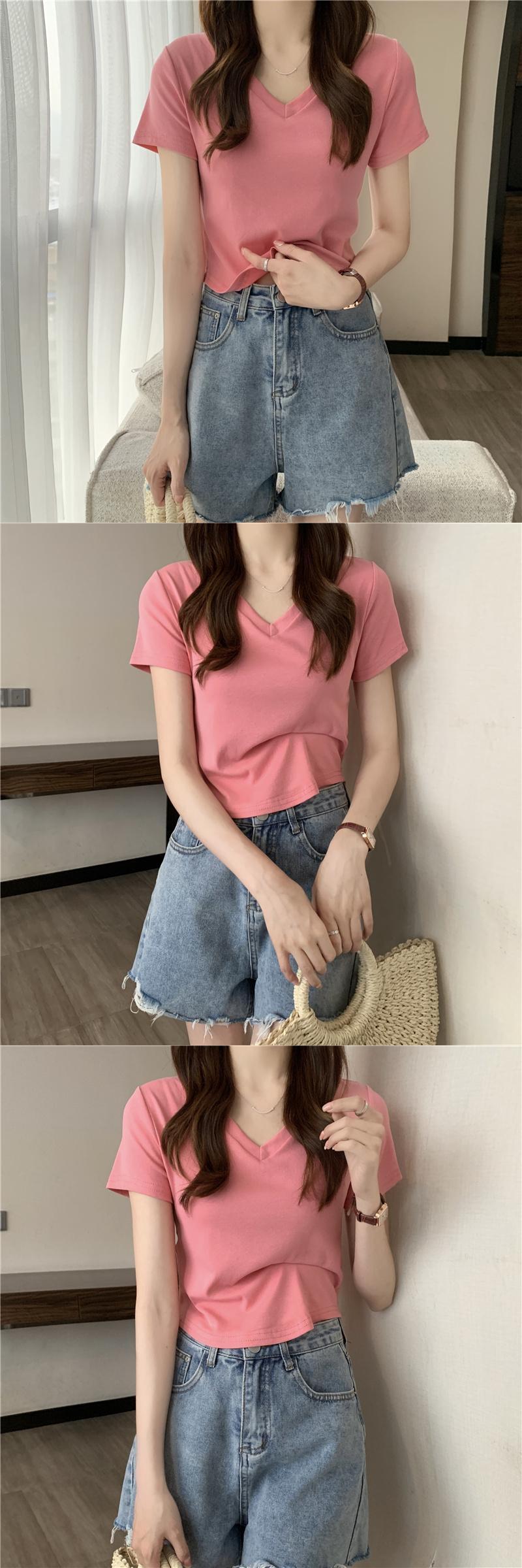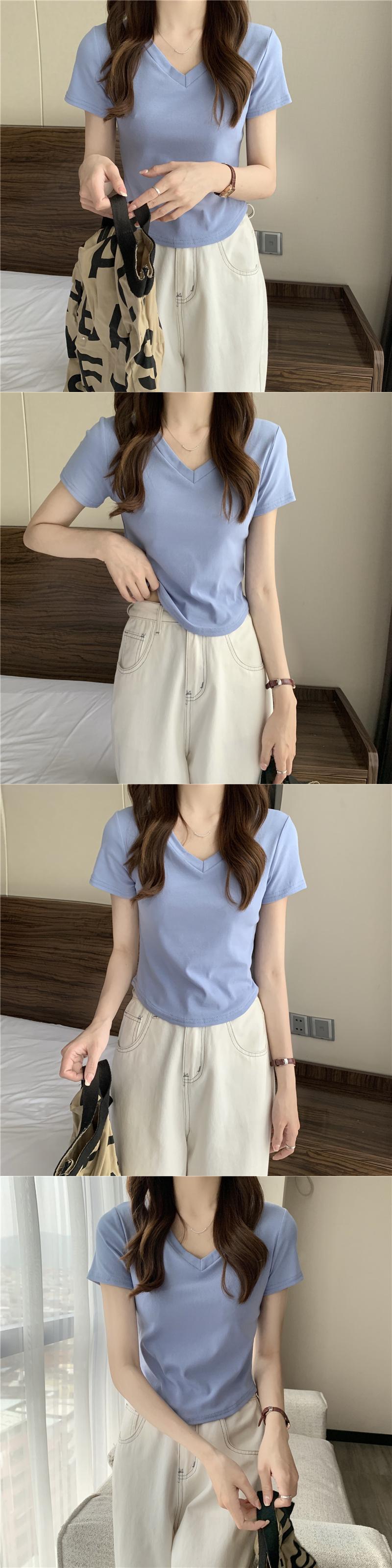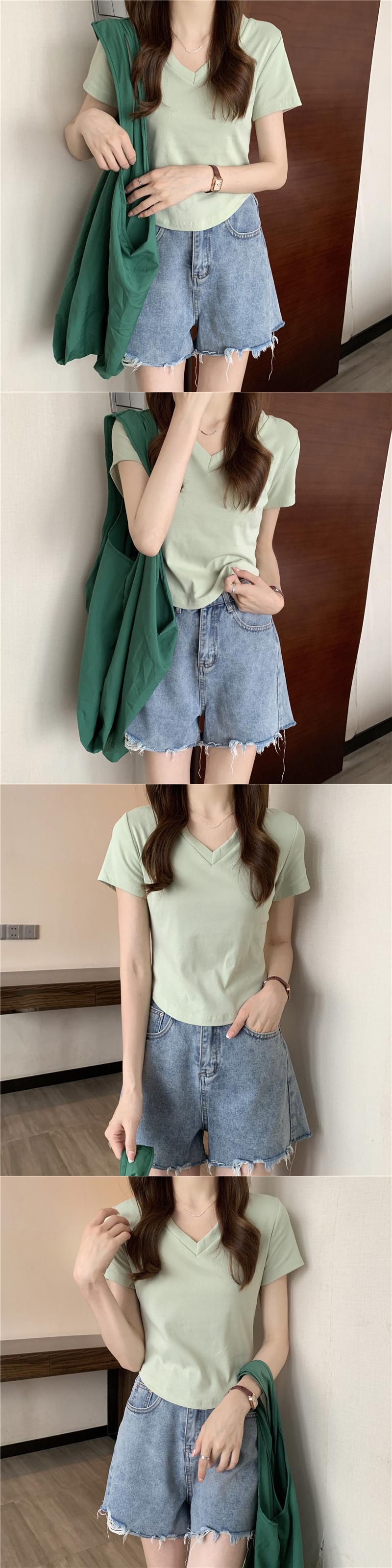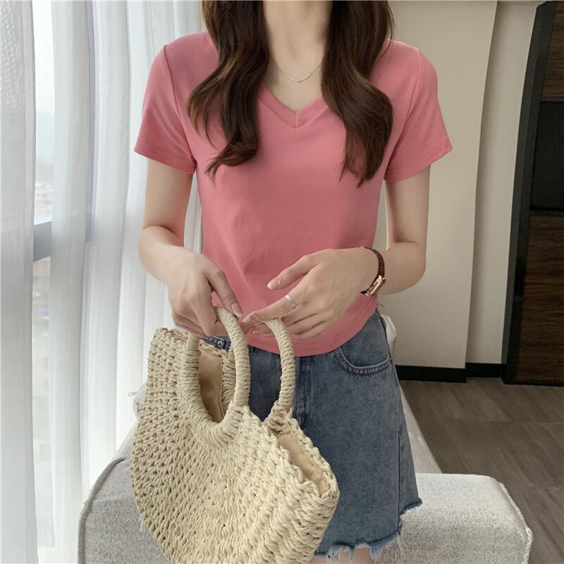 チキンハートVネックスリムフロントショルダー半袖Tシャツレディースサマーデザインニッチ裾アークショートスタイルピュアデザイーンウィンドトップ 夏物 7460012197835545 | framboise21