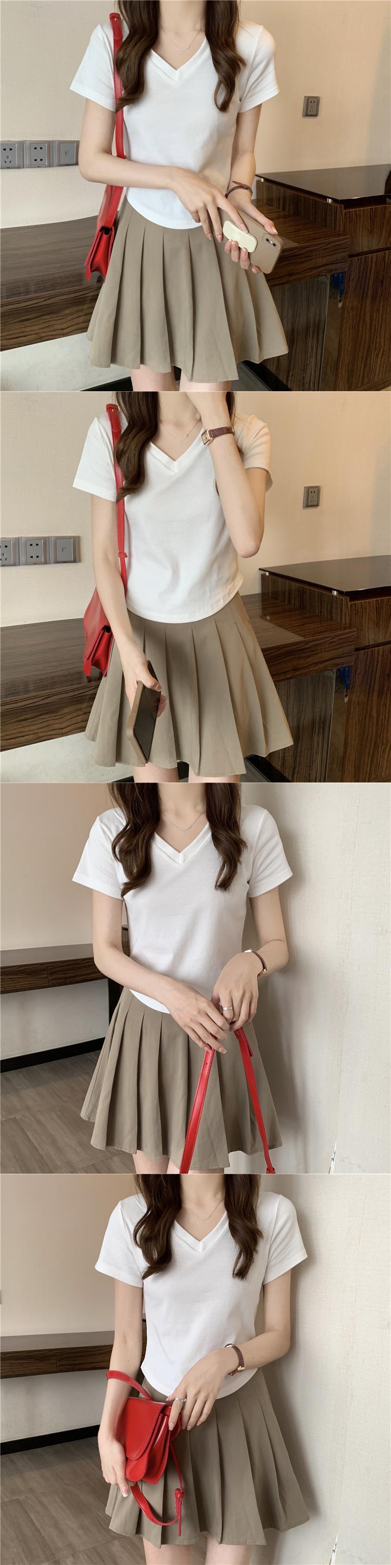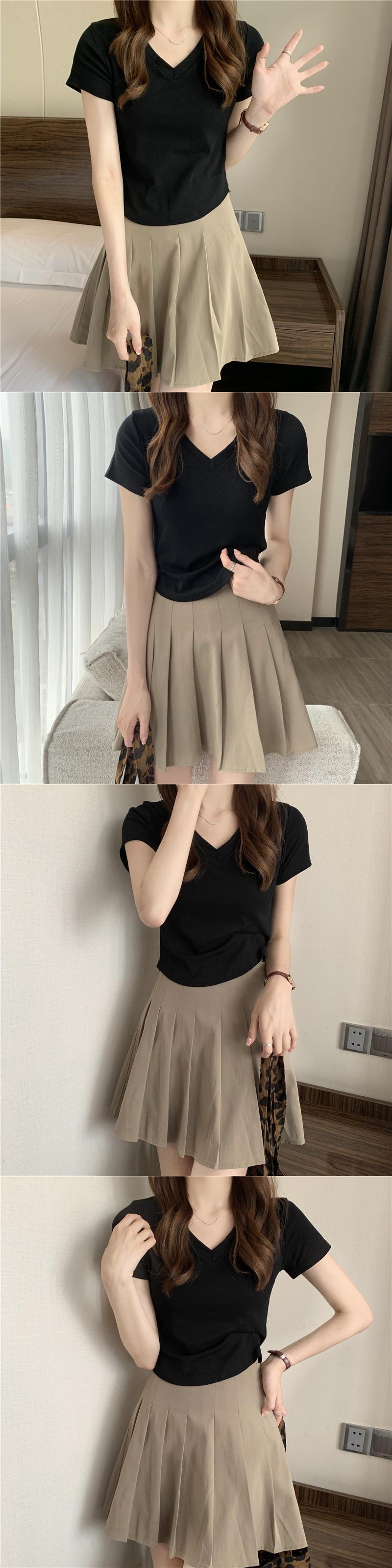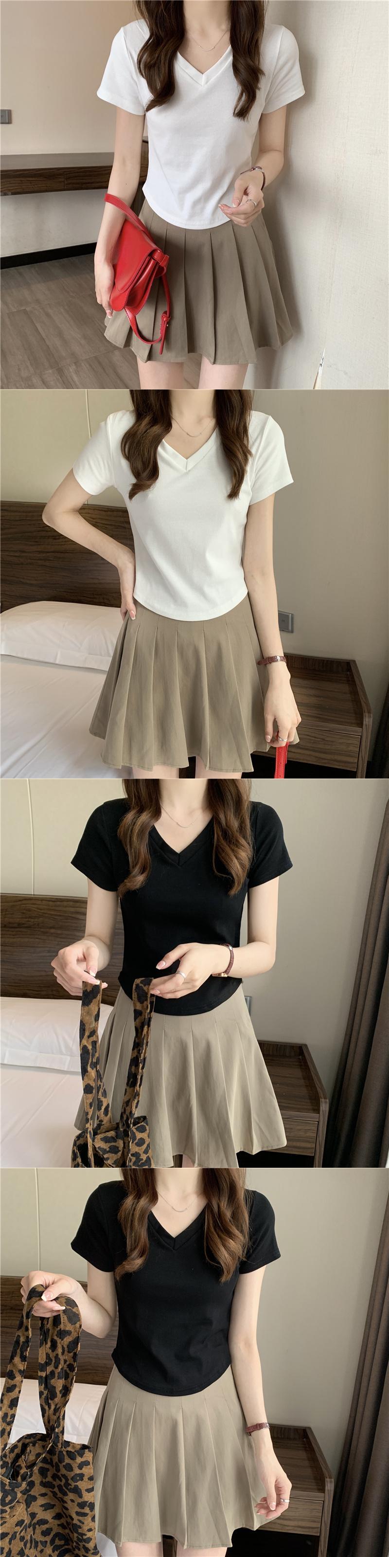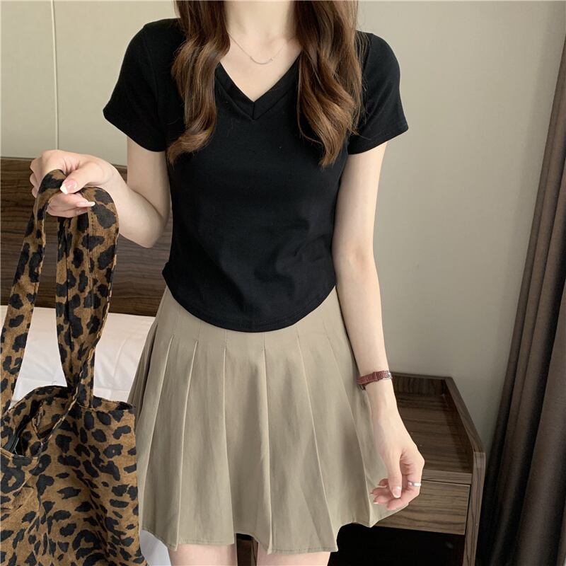 チキンハートVネックスリムフロントショルダー半袖Tシャツレディースサマーデザインニッチ裾アークショートスタイルピュアデザイーンウィンドトップ 夏物 7460012197835545 | framboise21