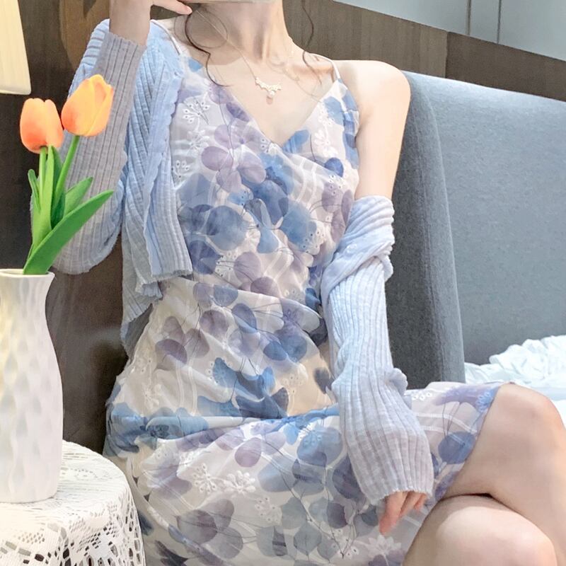 2022年新夏フレンチレトロブルースモールフレグランスハイエンドスウィートスーツスカートフローラルサスペンダードレス 大人ガーリー キュート カジュアル サマー 夏物 花柄 7460063832561346 | framboise21