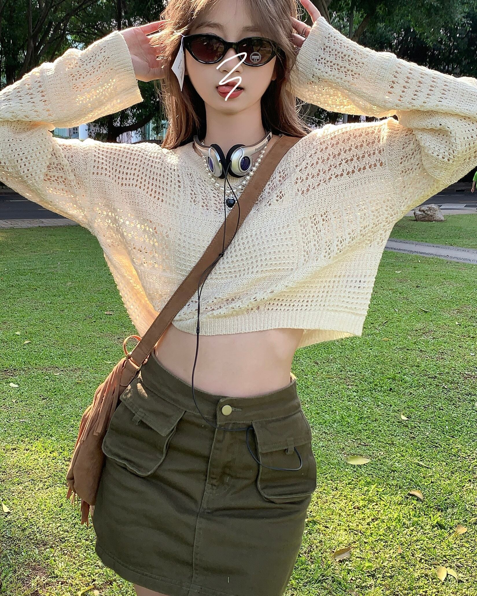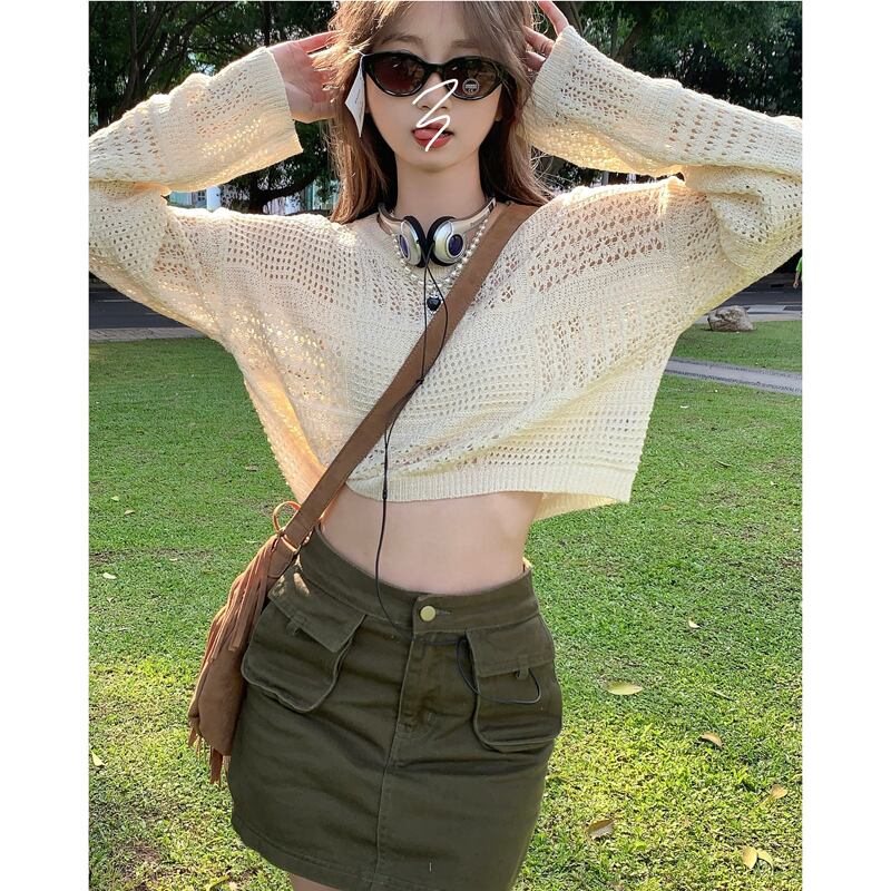 ニット日焼け止めブラウス女性の夏の薄い中空トップデザインセンスハイウエスト半袖Tシャツ ハイウェスト ショート ロング 長袖 サマー 夏物 7460072930028115 | framboise21