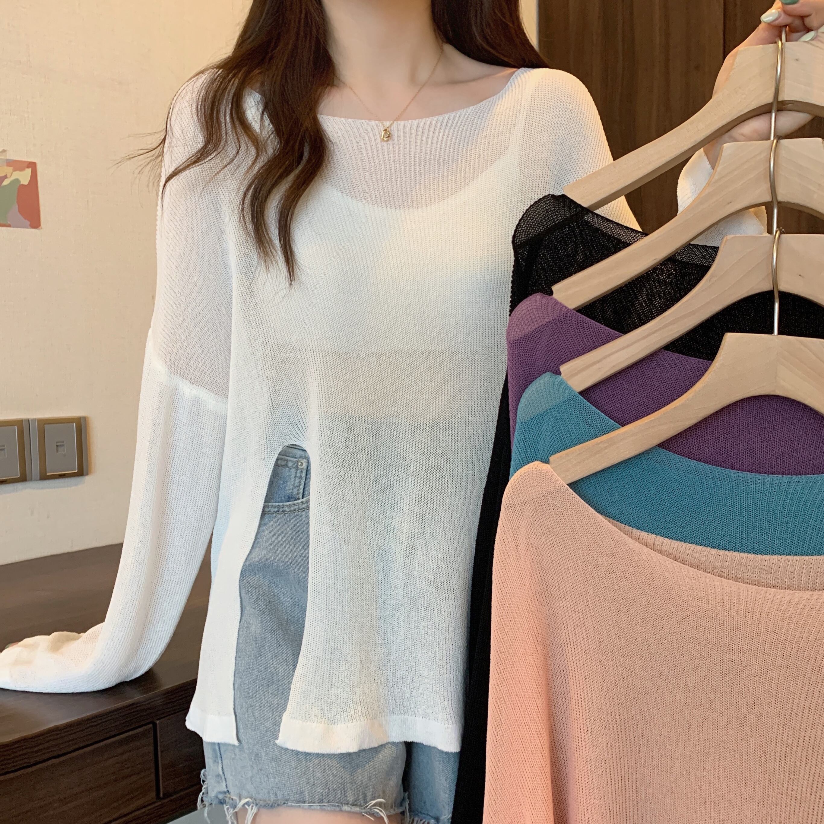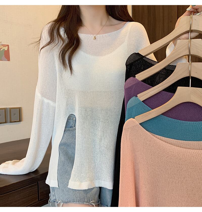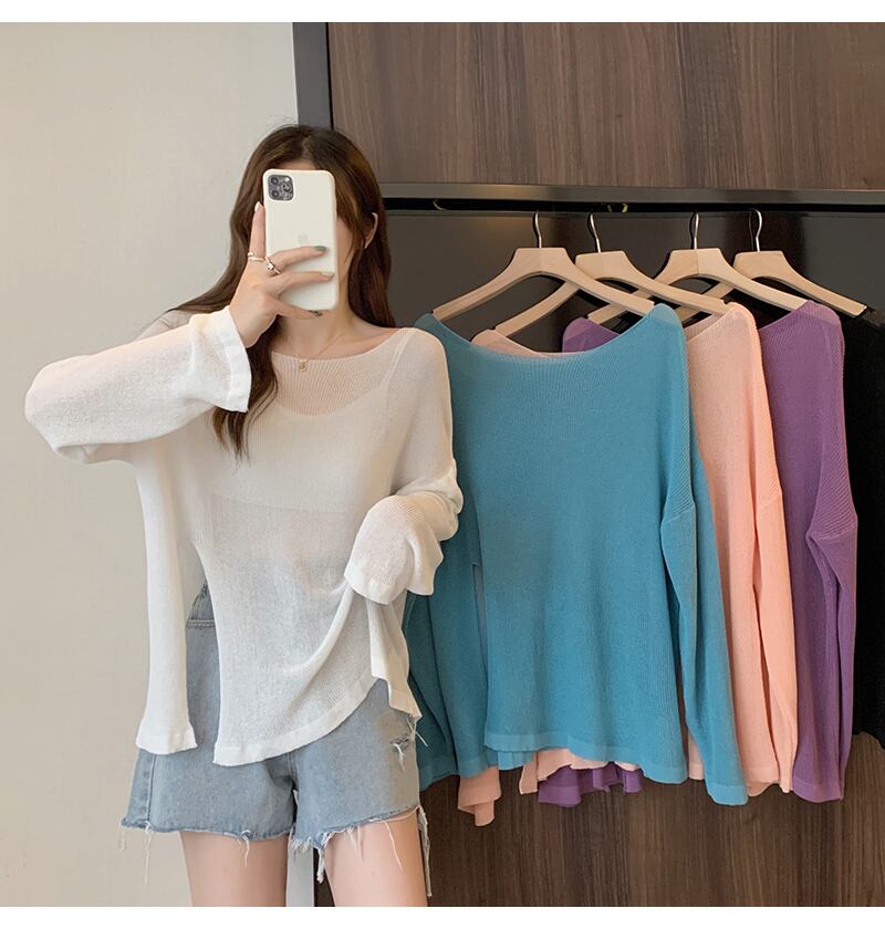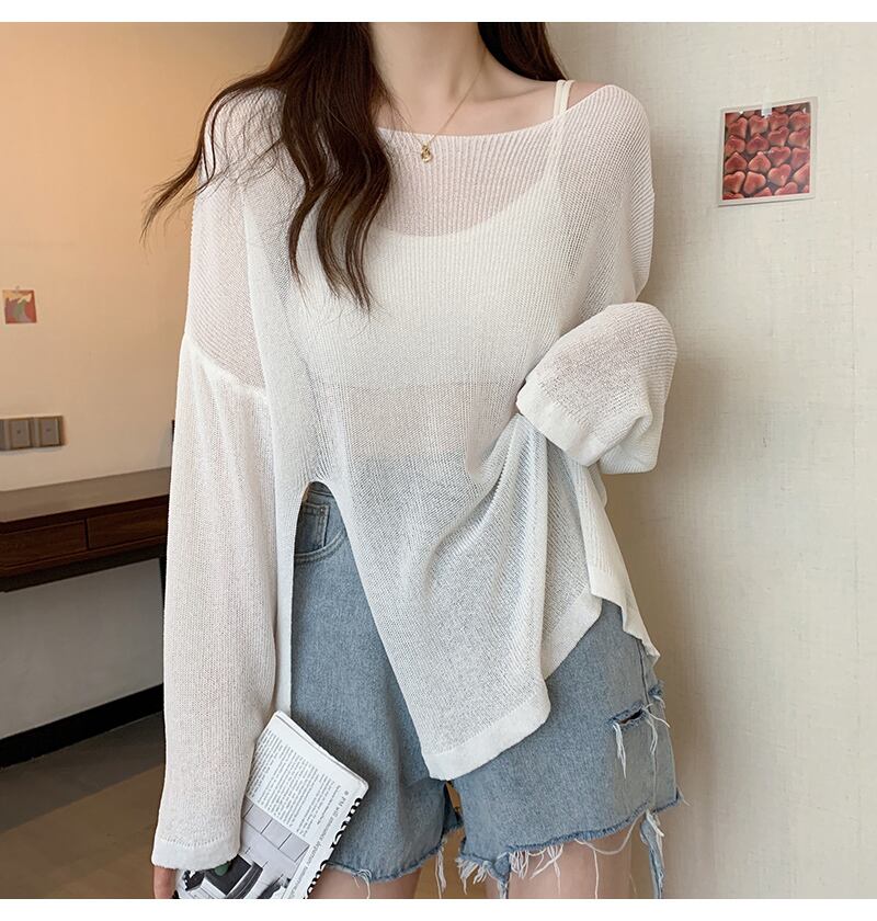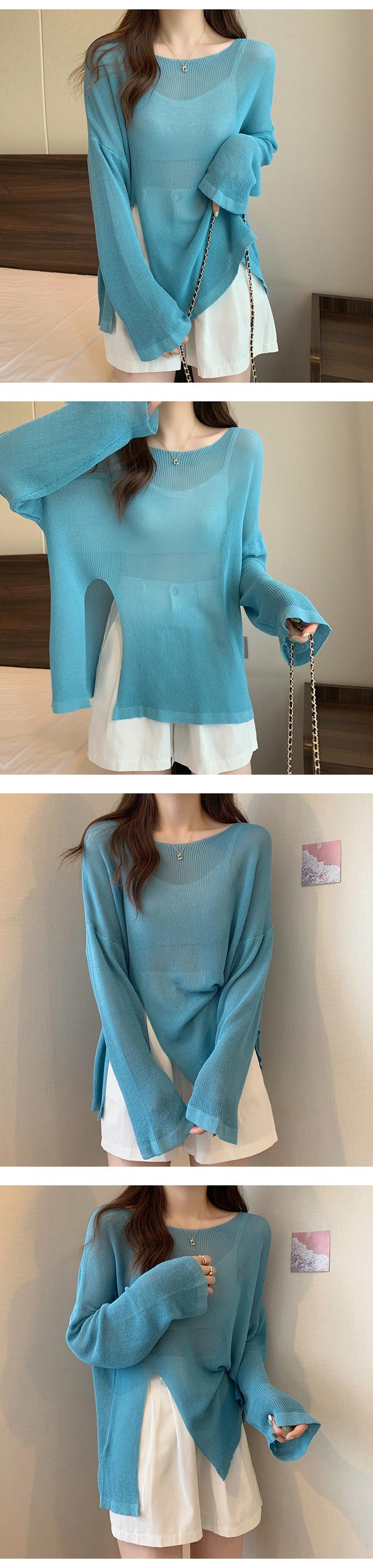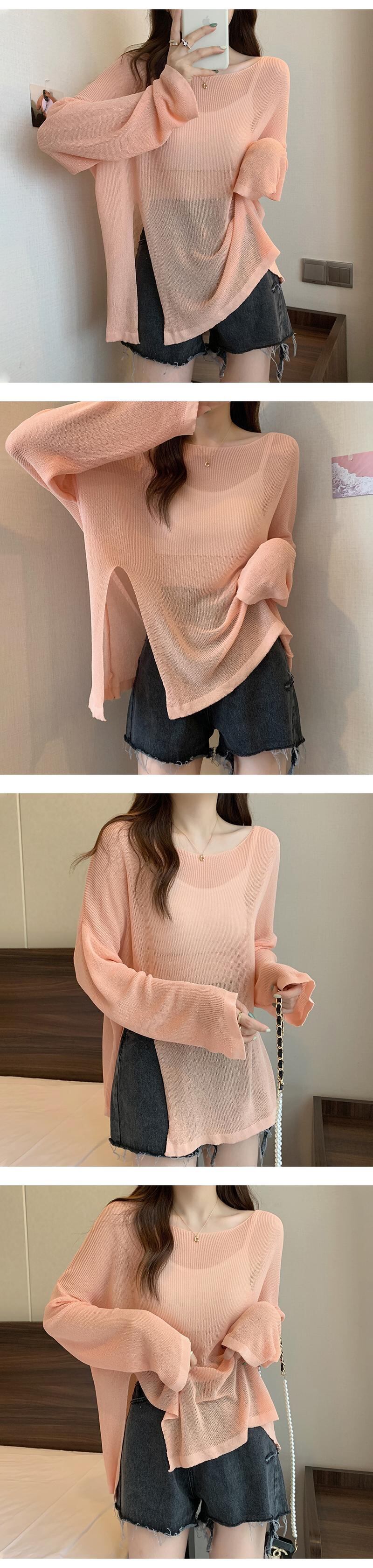 アイスシルクブラウスレディースサマーサンスクリーンセータースプリットルーズイレギュラープルオーバーシースルーロングトップシンロングスリーブ 長袖 夏物 7460051764926503 | framboise21