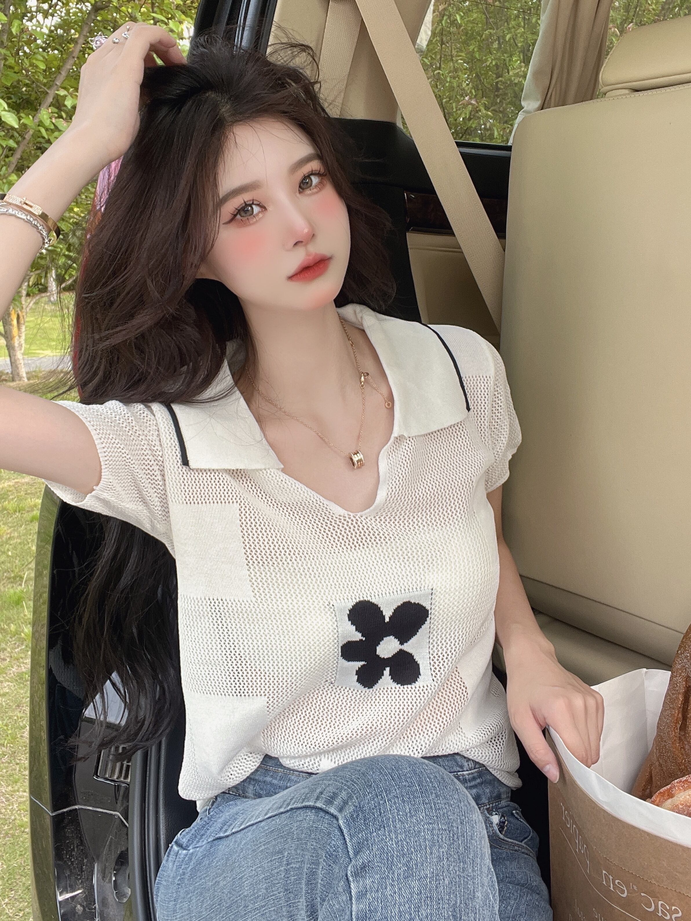 夏のシックなフレンチスタイルの小さな香りのアイスシルクニット半袖Tシャツ女性の純粋な欲望甘いショートポロシャツトップ 大人ガーリー スウィート キュート カジュアル サマー 夏物 ピュア 7460041685224630 | framboise21