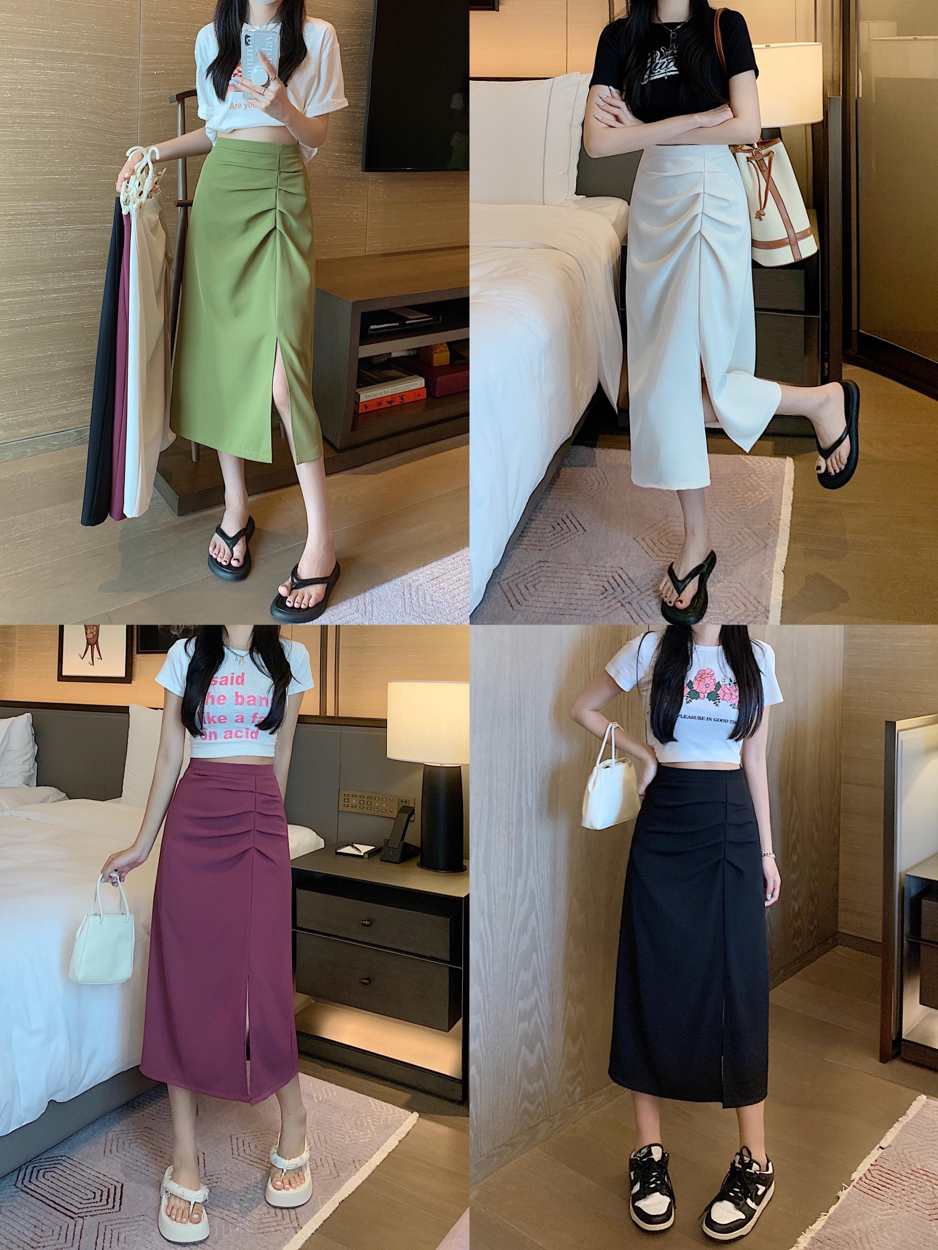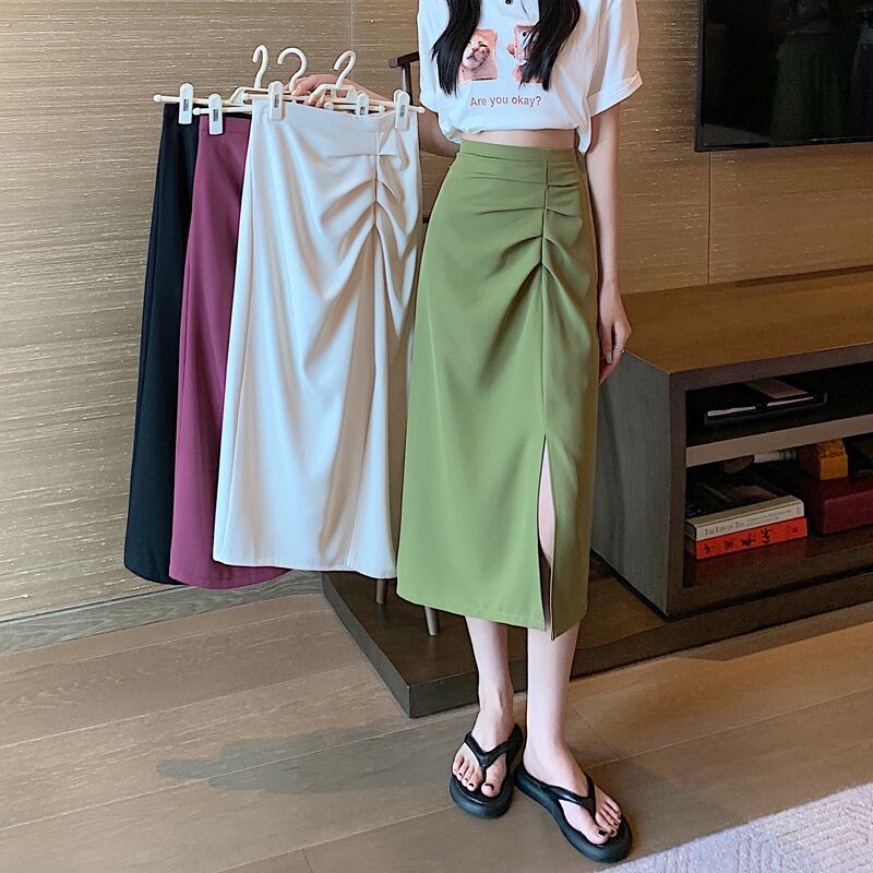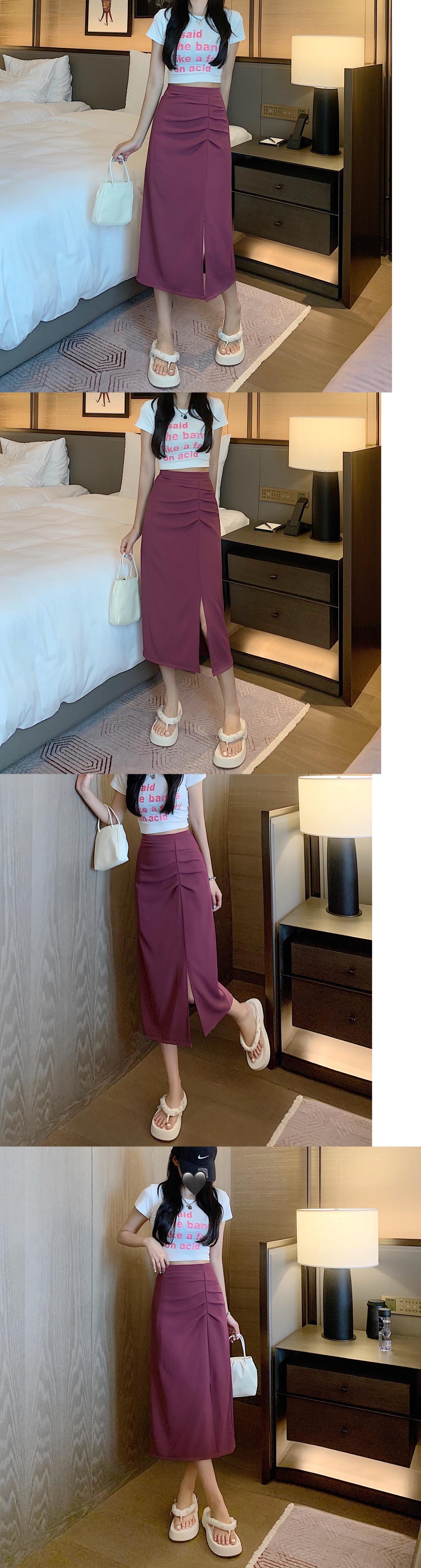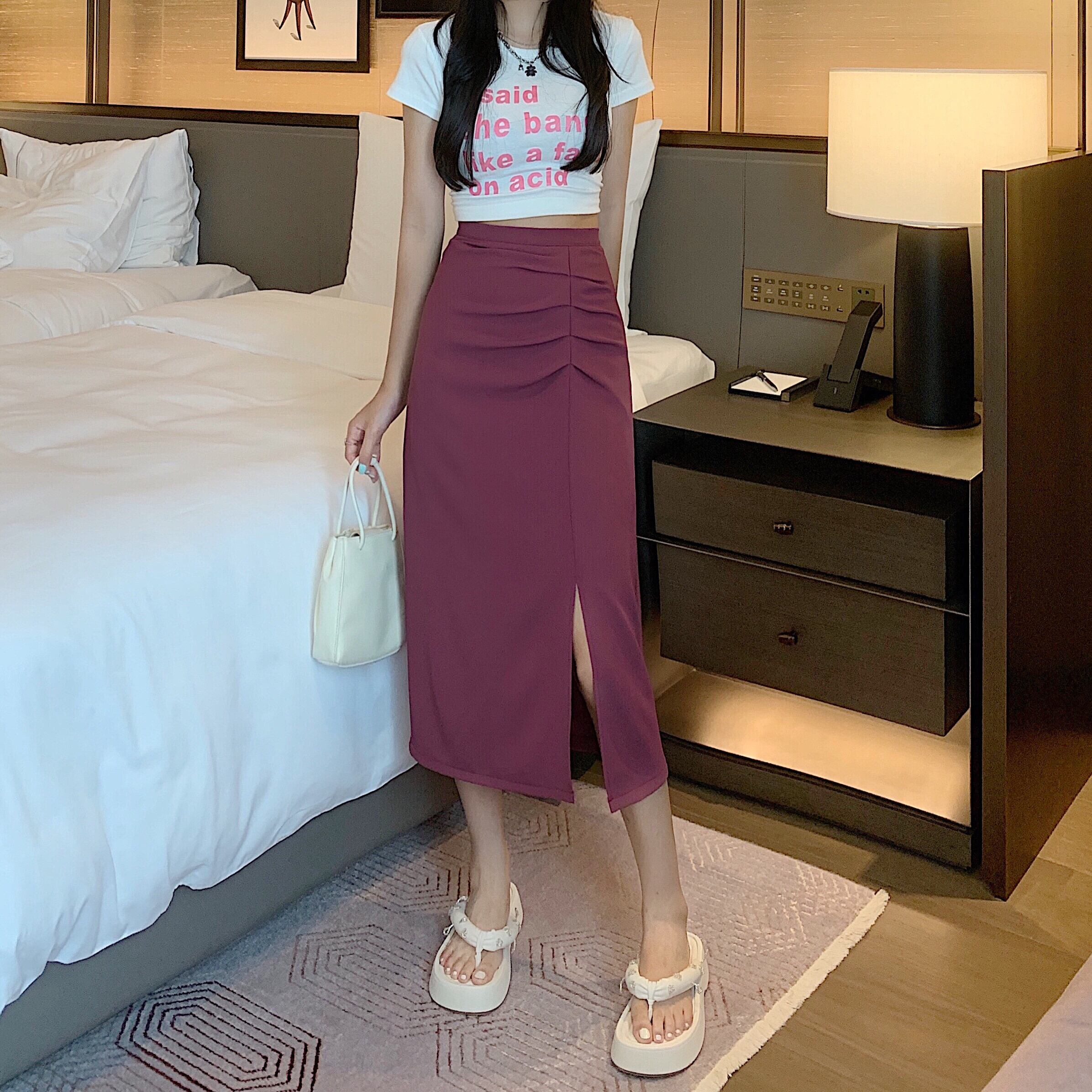 ラズベリーカラースプリットスカートレディースサマーハイウエストバッグヒップAラインロングスカートサマーシェイクスカートスモールサマー ハイウェスト 夏物 746006358144396 | framboise21